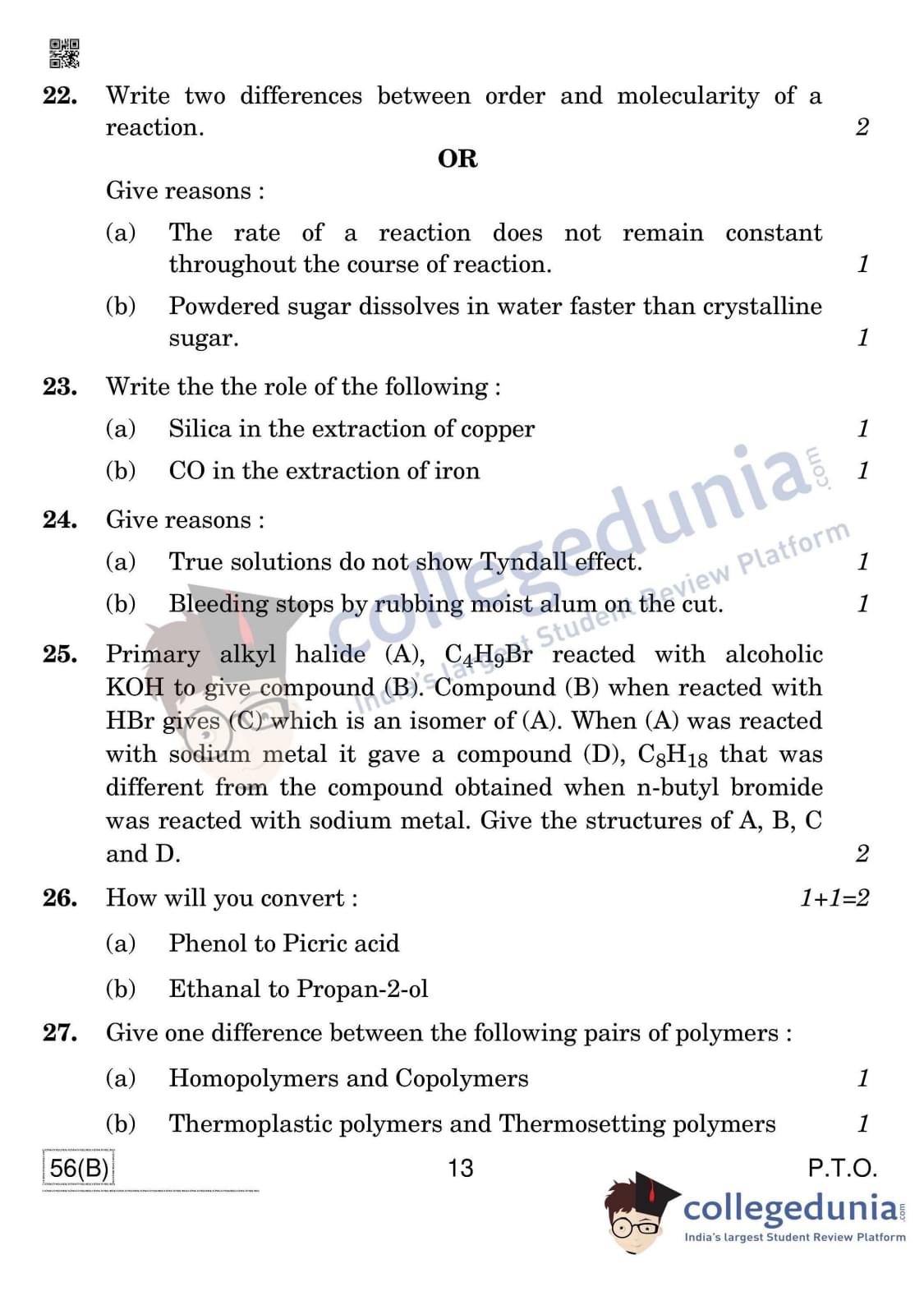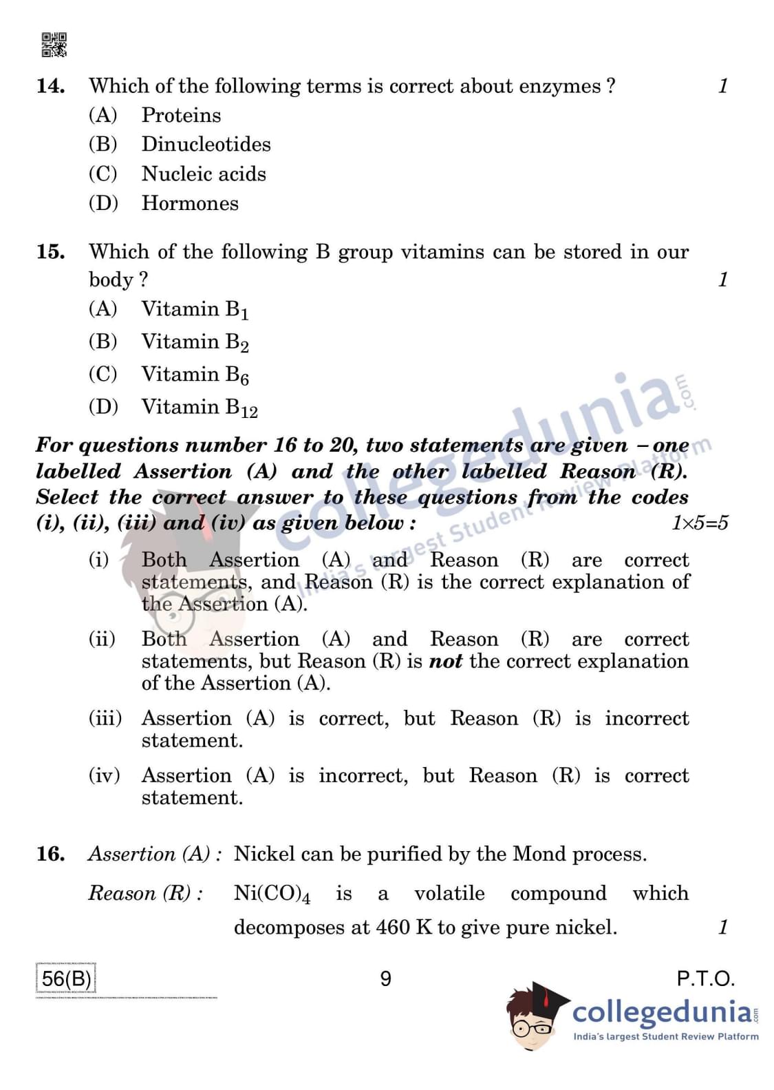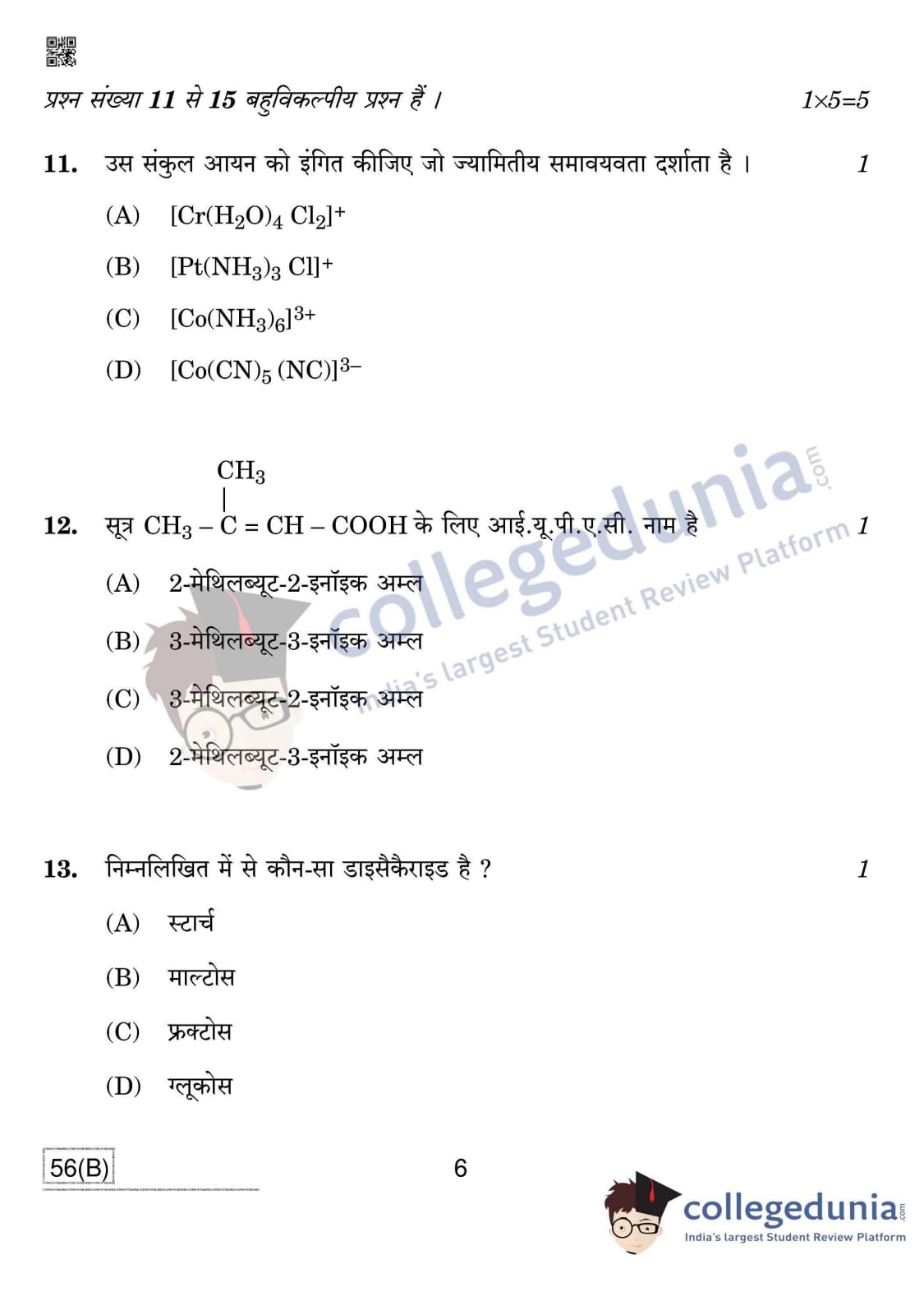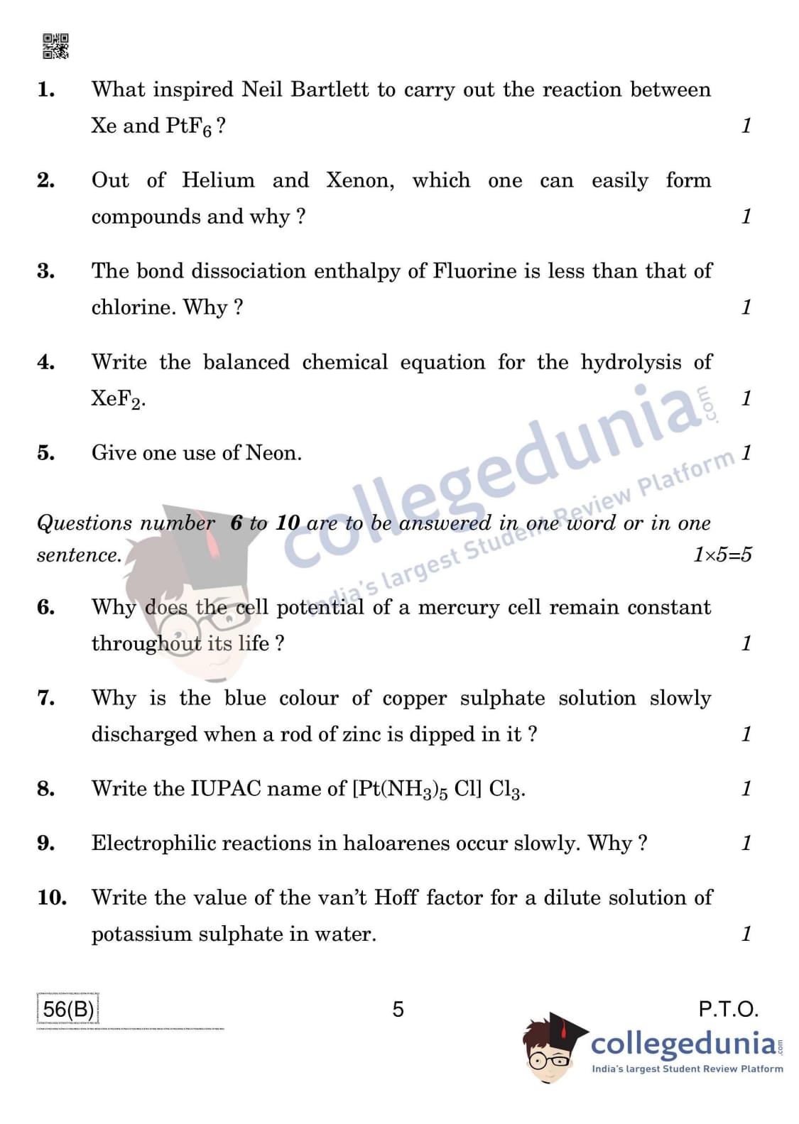 CBSE Class 12 Chemistry Question Paper 2020 with Answer Key (March 7)