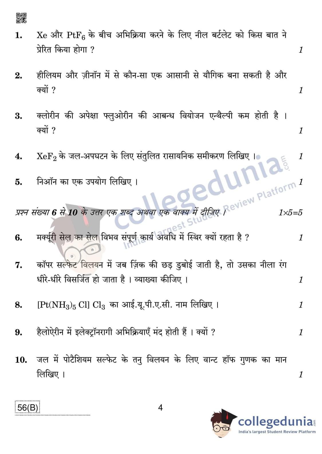 CBSE Class 12 Chemistry Question Paper 2020 with Answer Key Set 4 is available for download. The exam was conducted by the Central Board of Secondary Education on March 7, 2020 in the Morning Session 10:30 AM to 1:30 PM. The medium of paper was English & Hindi. In terms of difficulty level, CBSE Class 12 Chemistry paper was of Moderate level. The question paper comprised a total of 37 questions divided among 4 sections.