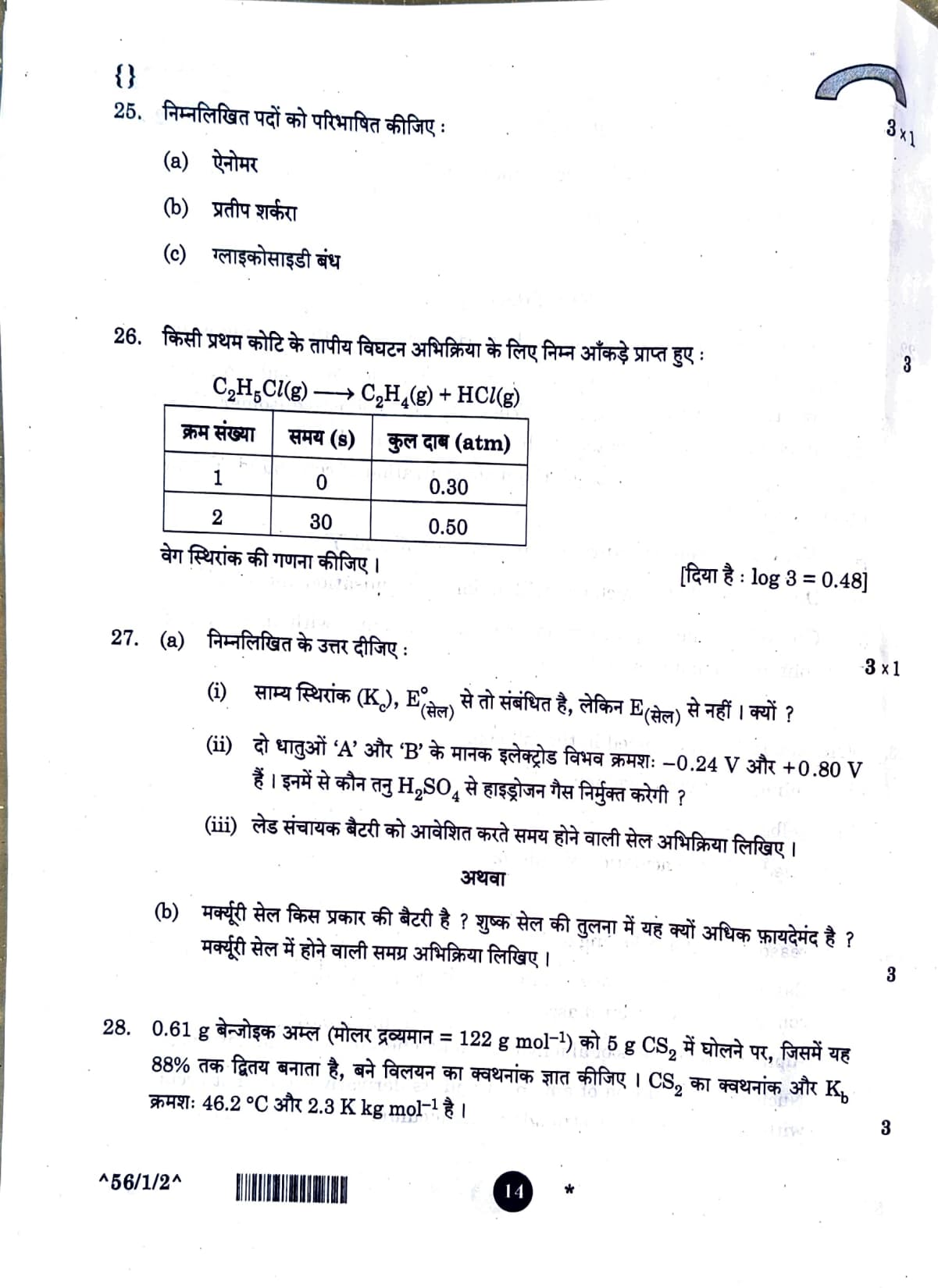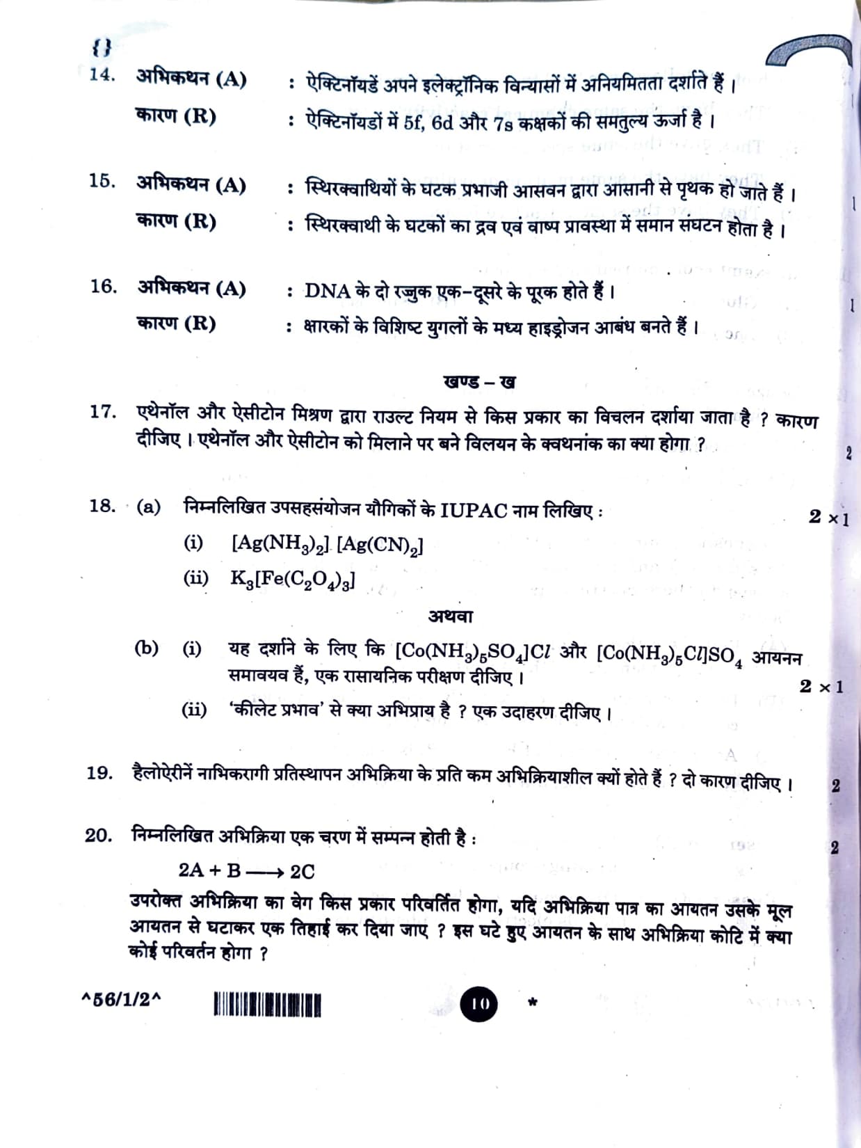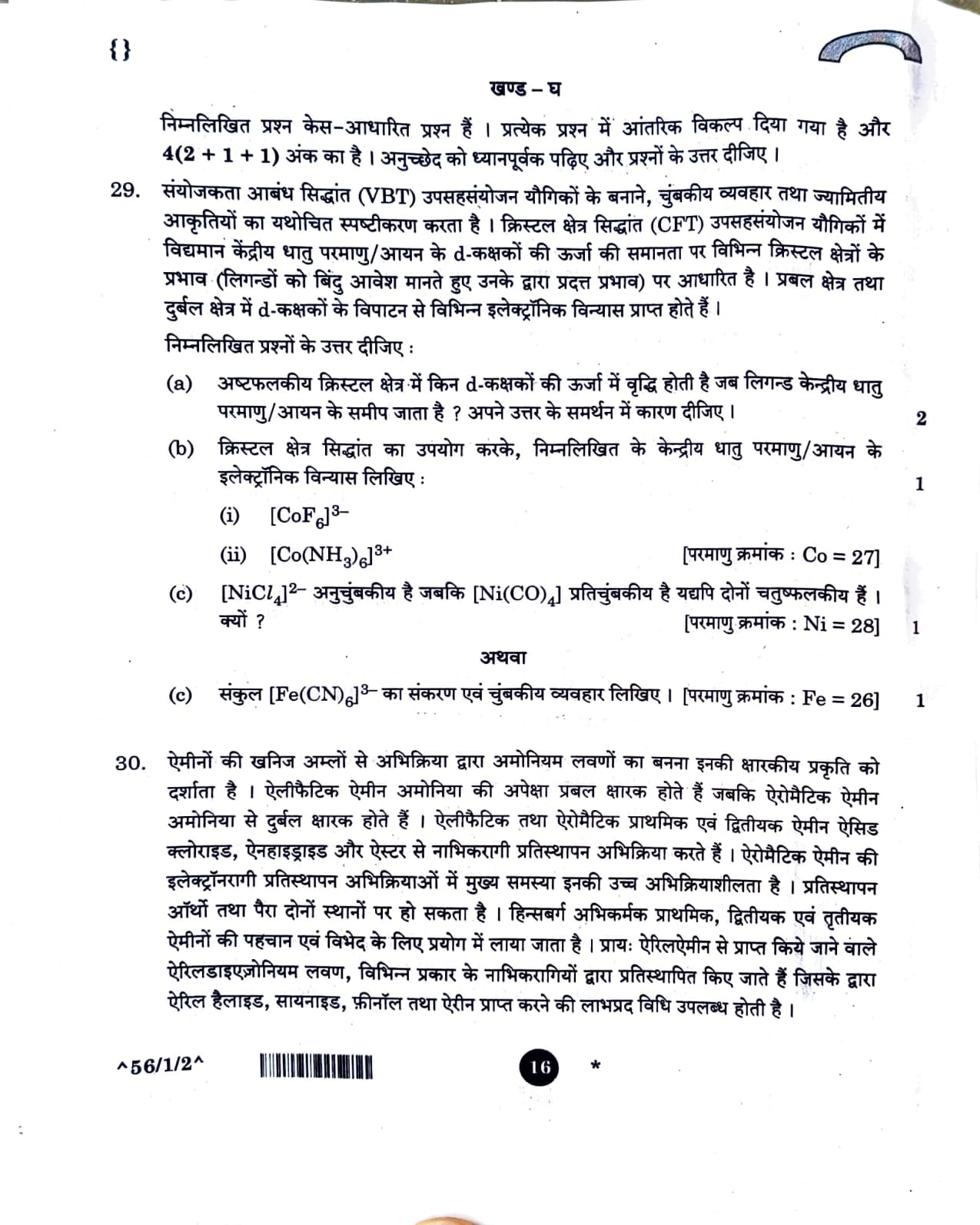 CBSE Class 12 Chemistry Question Paper 2026 Set-2 with Solution PDF