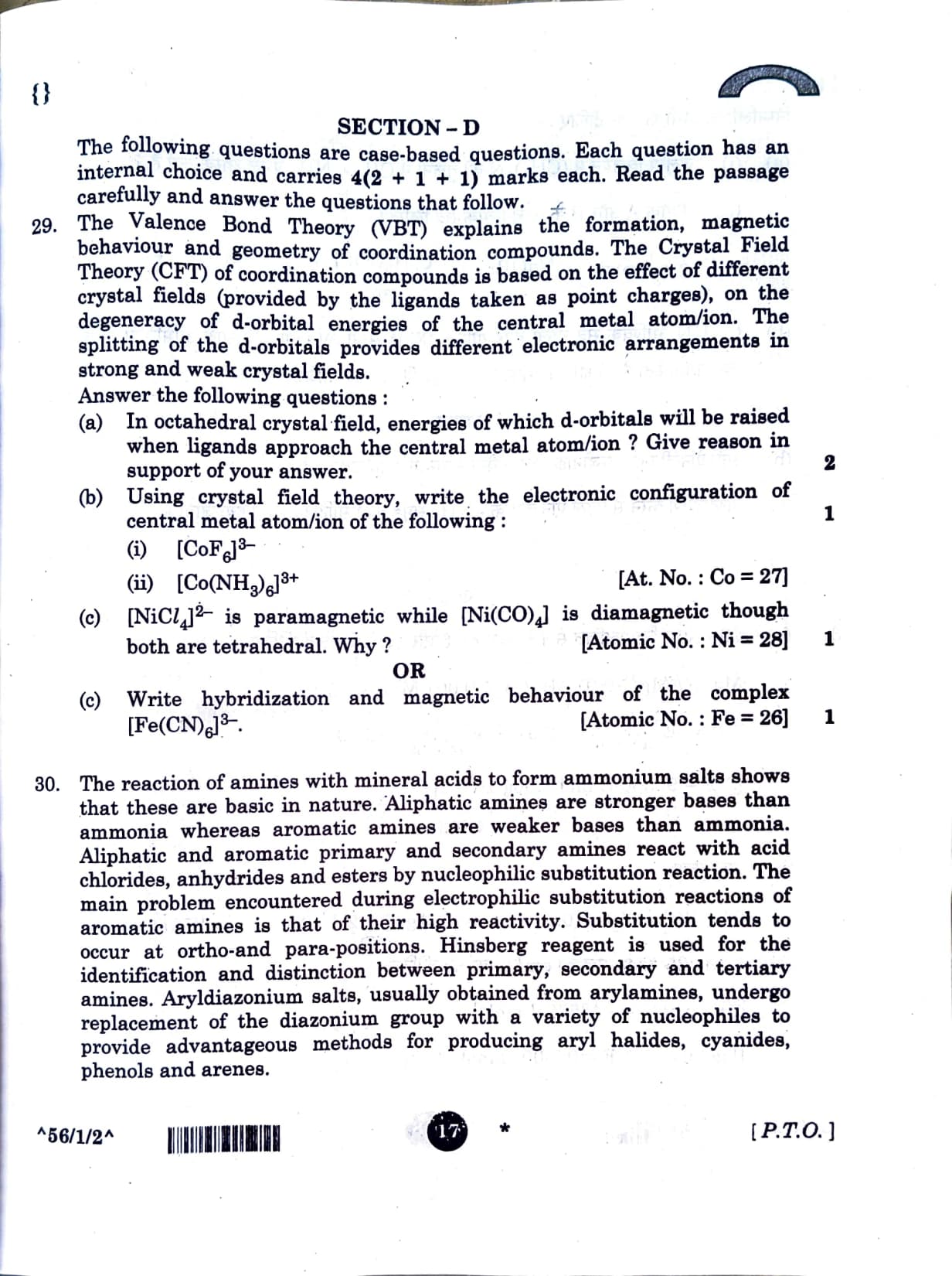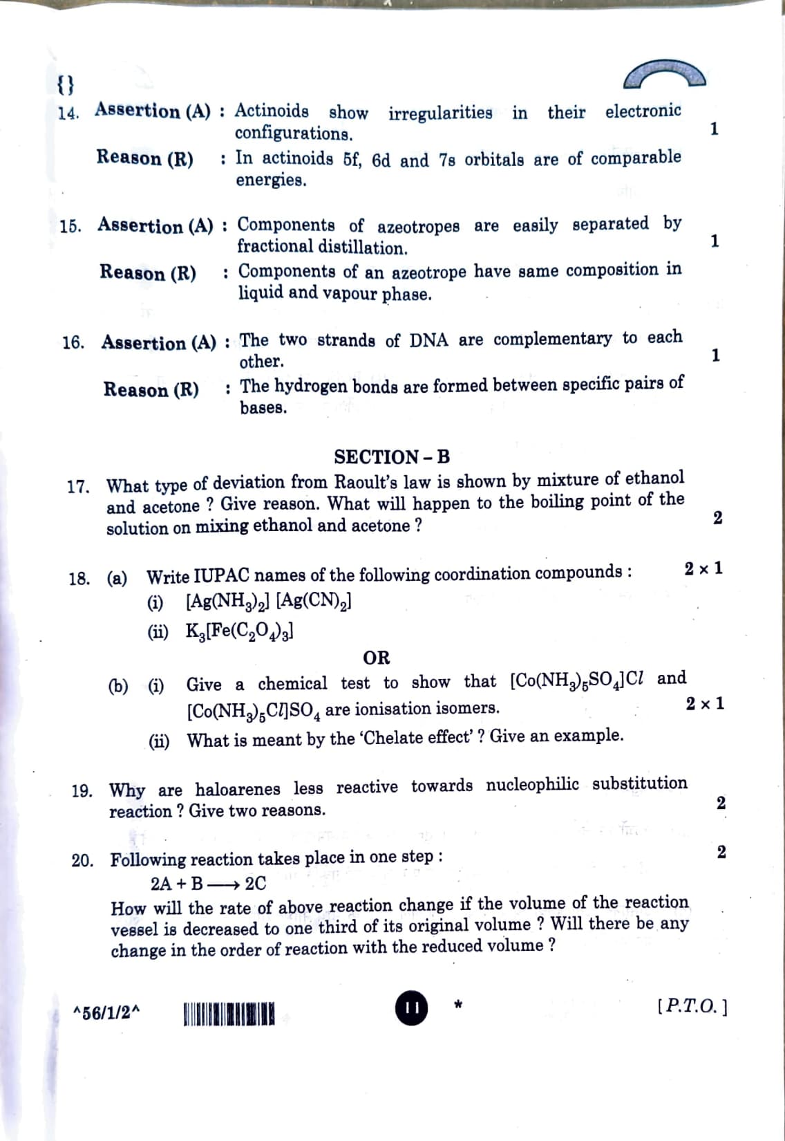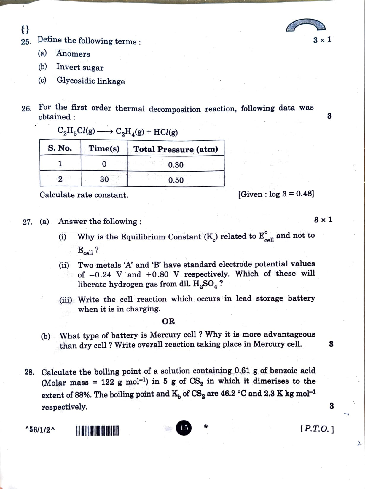 CBSE Class 12 Chemistry Question Paper 2026 Set-2 with Solution PDF