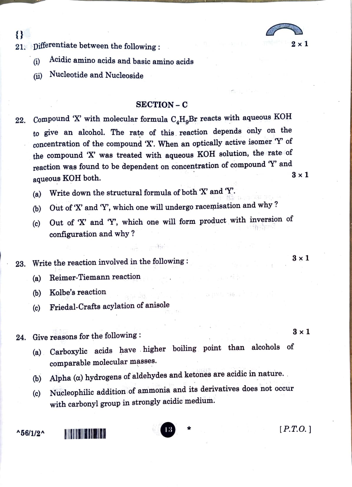 Compound ‘X’ with molecular formula \( C_4H_9Br \) reacts with aqueous KOH to give an alcohol. The rate of this reaction depends only on the concentration of compound ‘X’. When an optically active isomer ‘Y’ of the compound ‘X’ was treated with aqueous KOH solution, the rate of reaction was found to be dependent on concentration of compound ‘Y’ and aqueous KOH both.