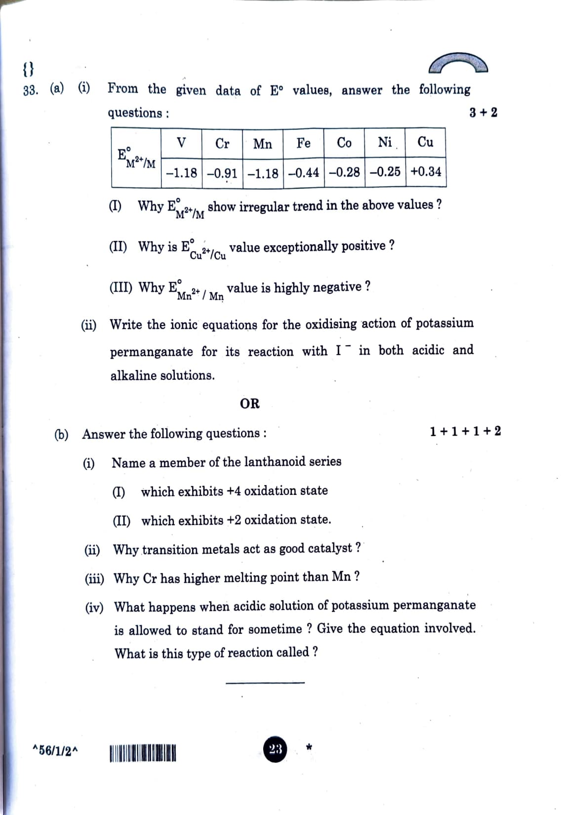 (I) Why \(E^{\circ}_{M^{2+}/M}\) show irregular trend in the above values ?