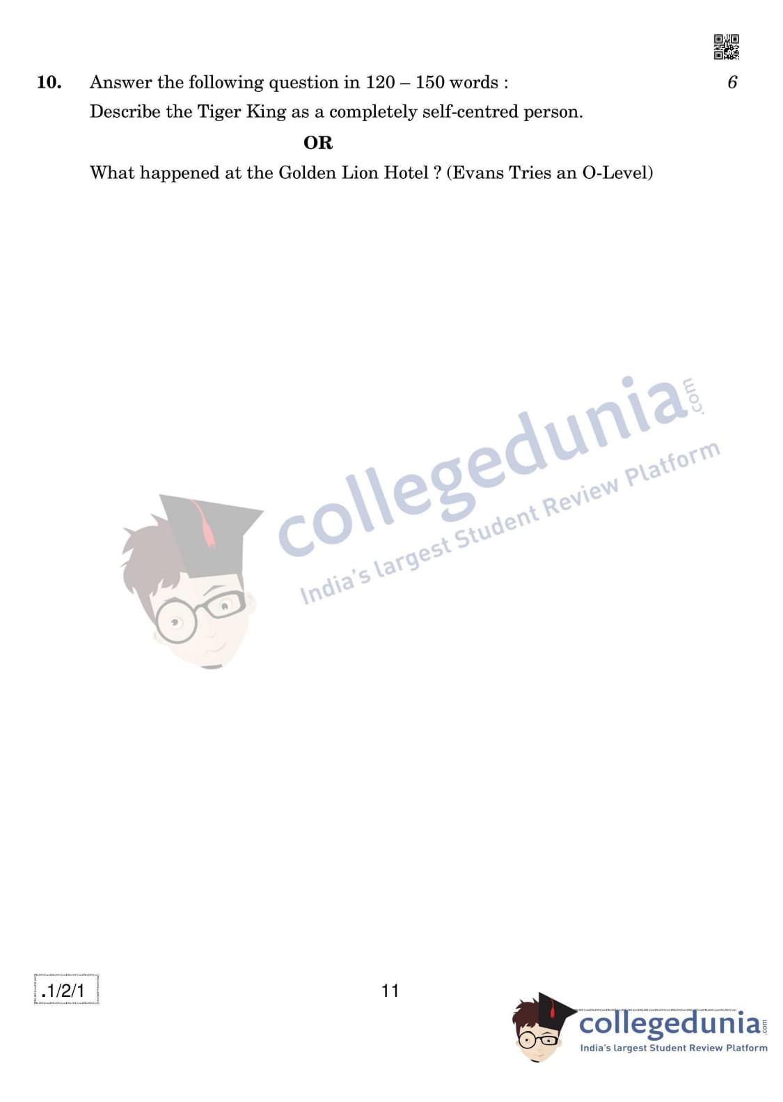 CBSE Class 12 English Core Question Paper 2020 with Answer Key Set 1 - 1/2/1 is available for download. The exam was conducted by the Central Board of Secondary Education on February 27, 2020 in the Morning Session 10:30 AM to 1:30 PM. The medium of paper was English. In terms of difficulty level, CBSE Class 12 English Core paper was of Easy to Moderate level. The question paper comprised a total of 10 questions divided among 3 sections.