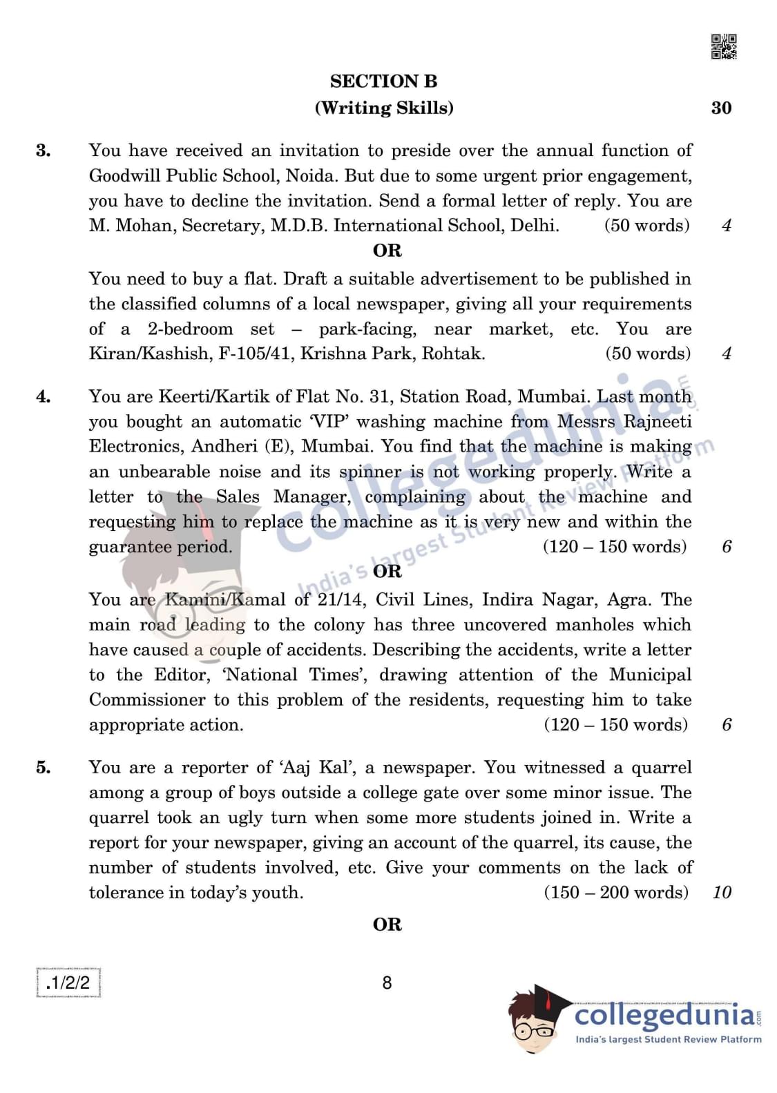 CBSE Class 12 English Core Question Paper 2020 with Answer Key Set 2 - 1/2/2 is available for download. The exam was conducted by the Central Board of Secondary Education on February 27, 2020 in the Morning Session 10:30 AM to 1:30 PM. The medium of paper was English. In terms of difficulty level, CBSE Class 12 English Core paper was of Easy to Moderate level. The question paper comprised a total of 10 questions divided among 3 sections.