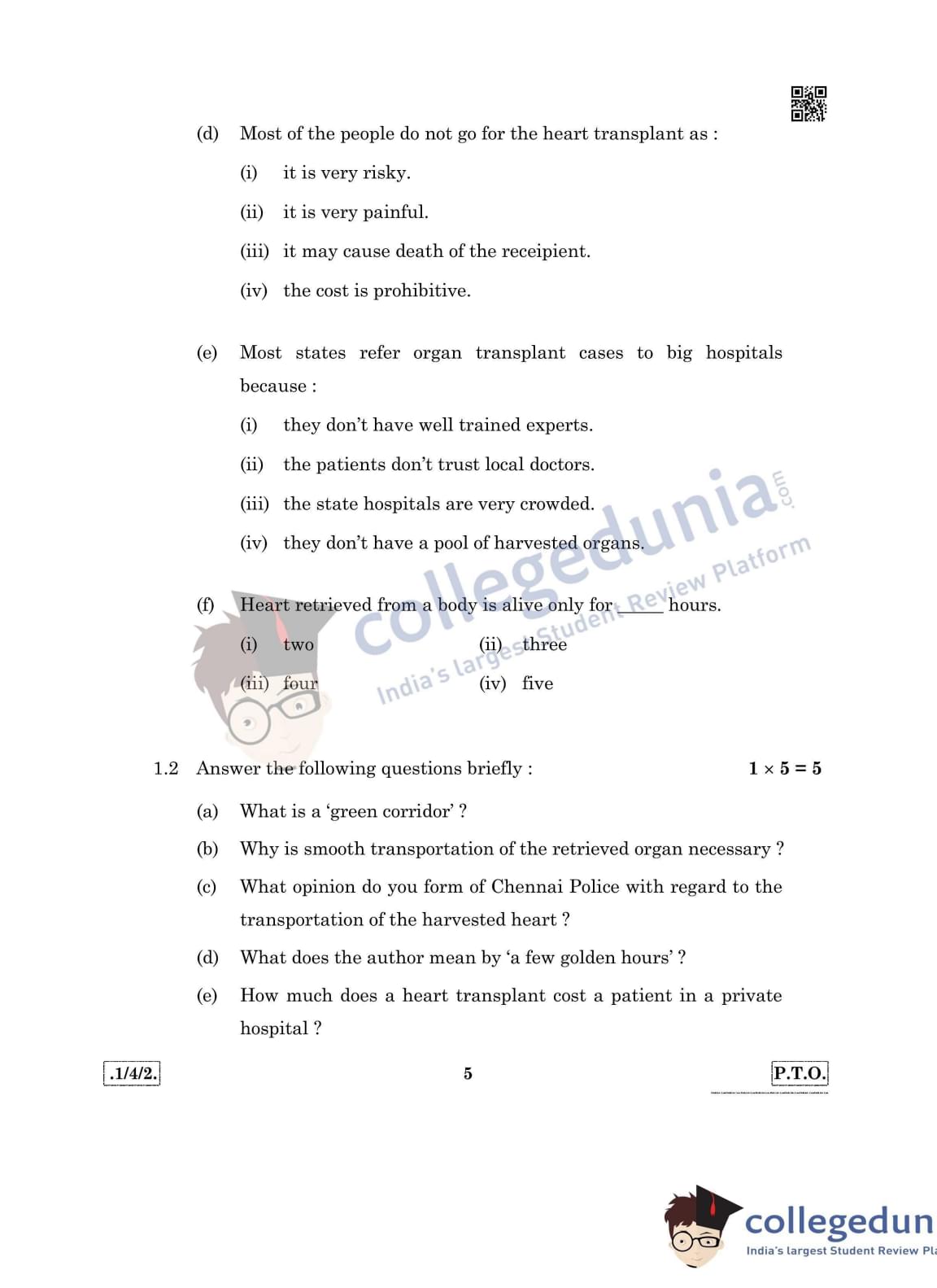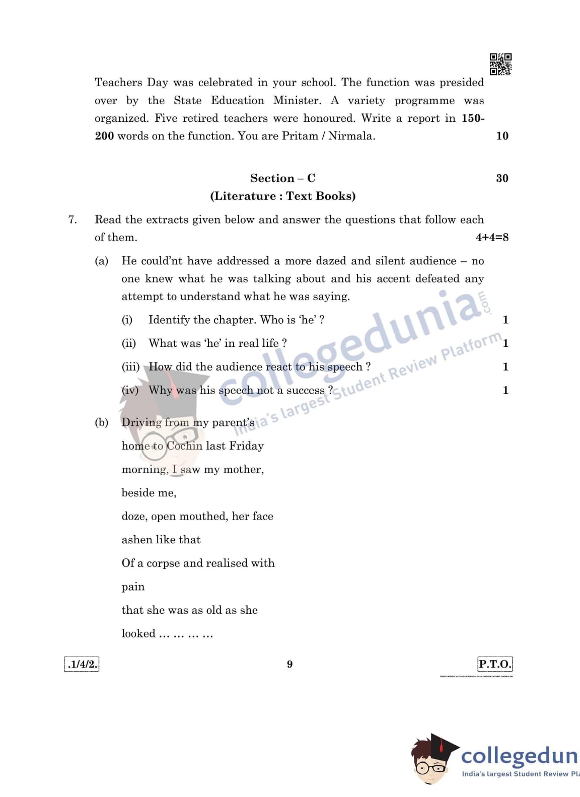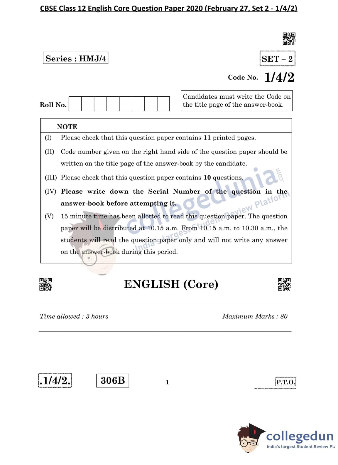 CBSE Class 12 English Core Set 2 - 1/4/2 Question Paper 2020 with Answer Key (February 27)
