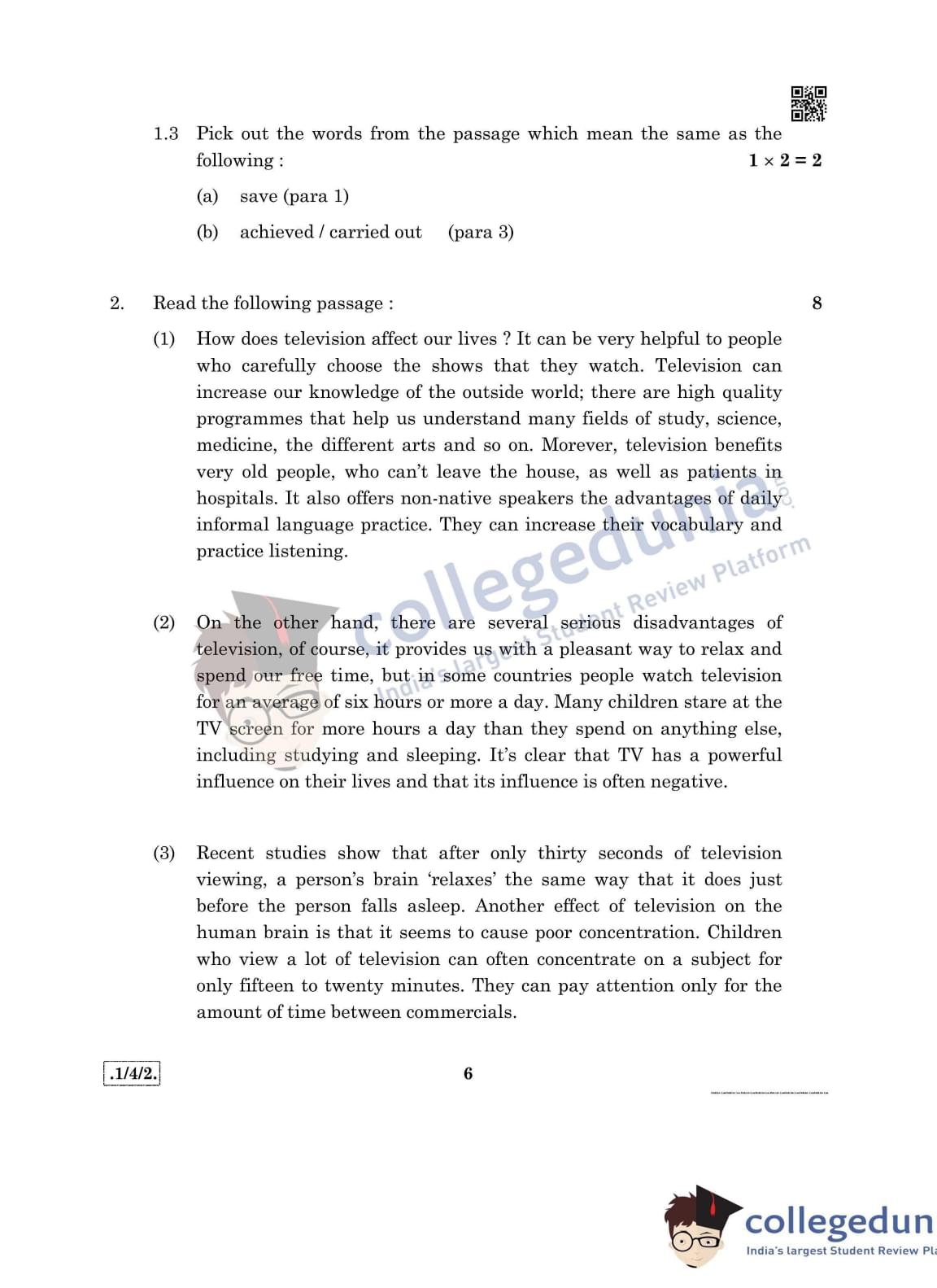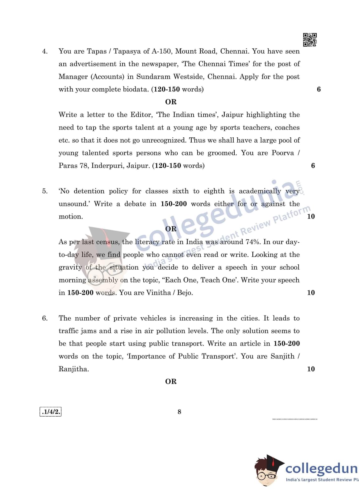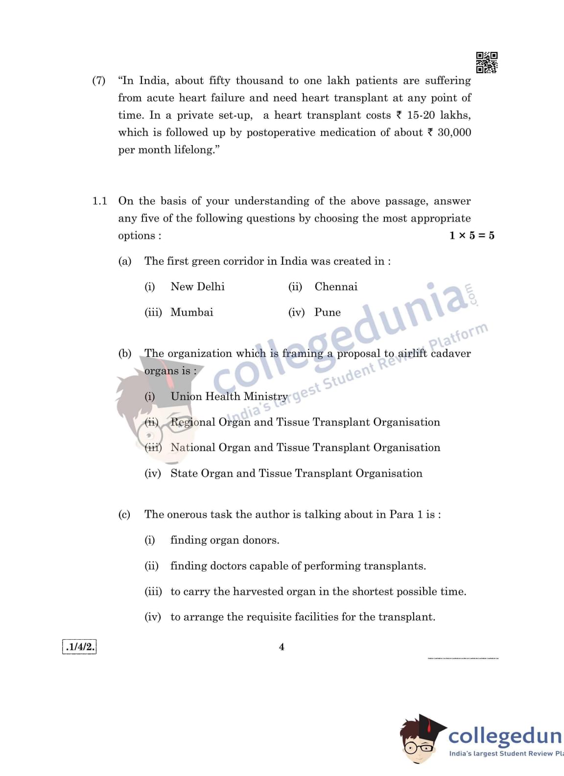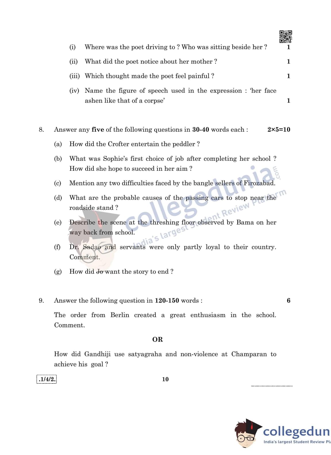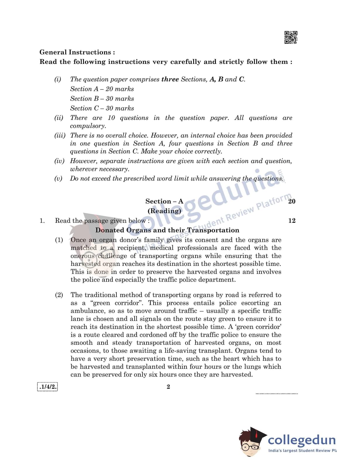 CBSE Class 12 English Core Question Paper 2020 with Answer Key Set 2 - 1/4/2 is available for download. The exam was conducted by the Central Board of Secondary Education on February 27, 2020 in the Morning Session 10:30 AM to 1:30 PM. The medium of paper was English. In terms of difficulty level, CBSE Class 12 English Core paper was of Easy to Moderate level. The question paper comprised a total of 10 questions divided among 3 sections.