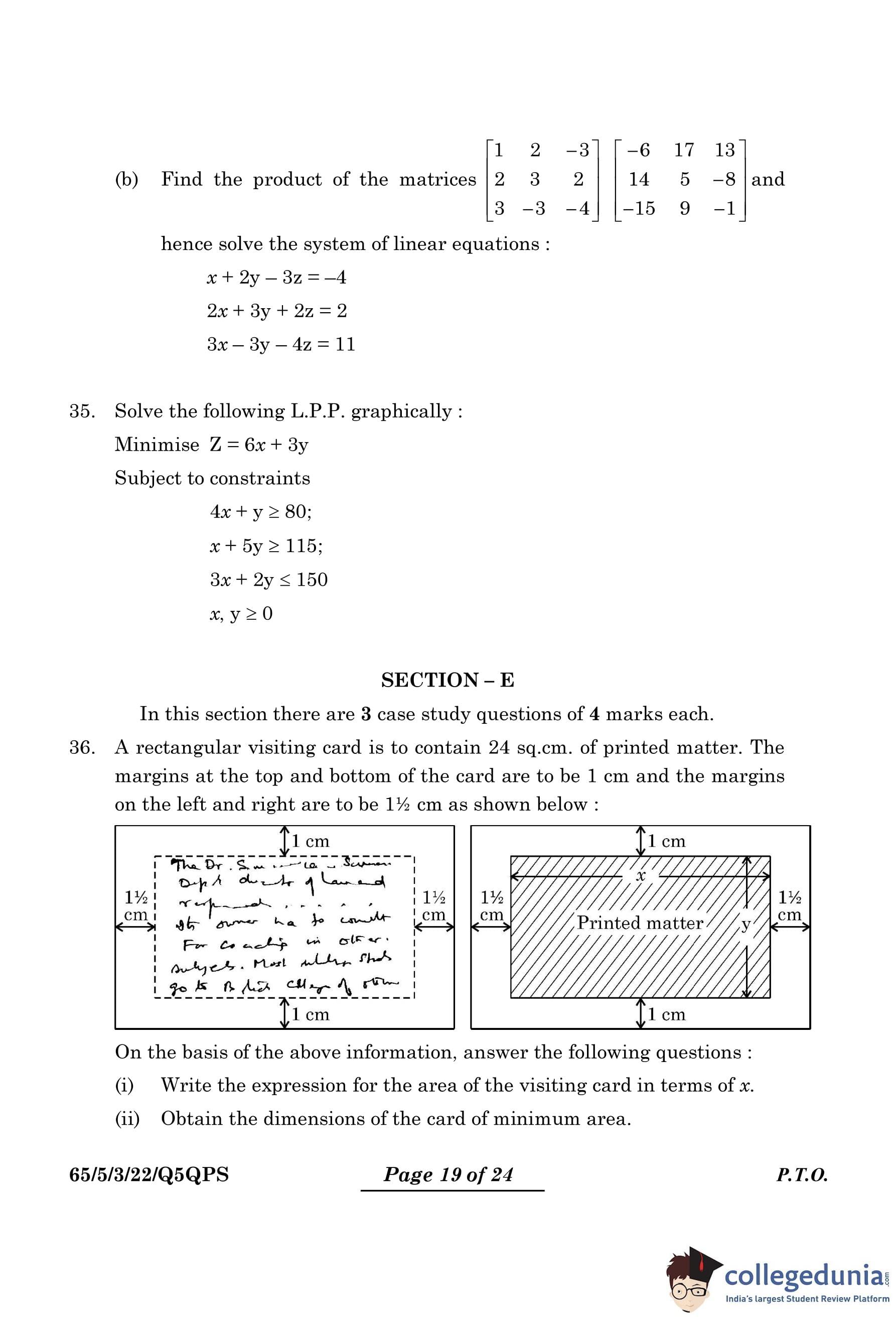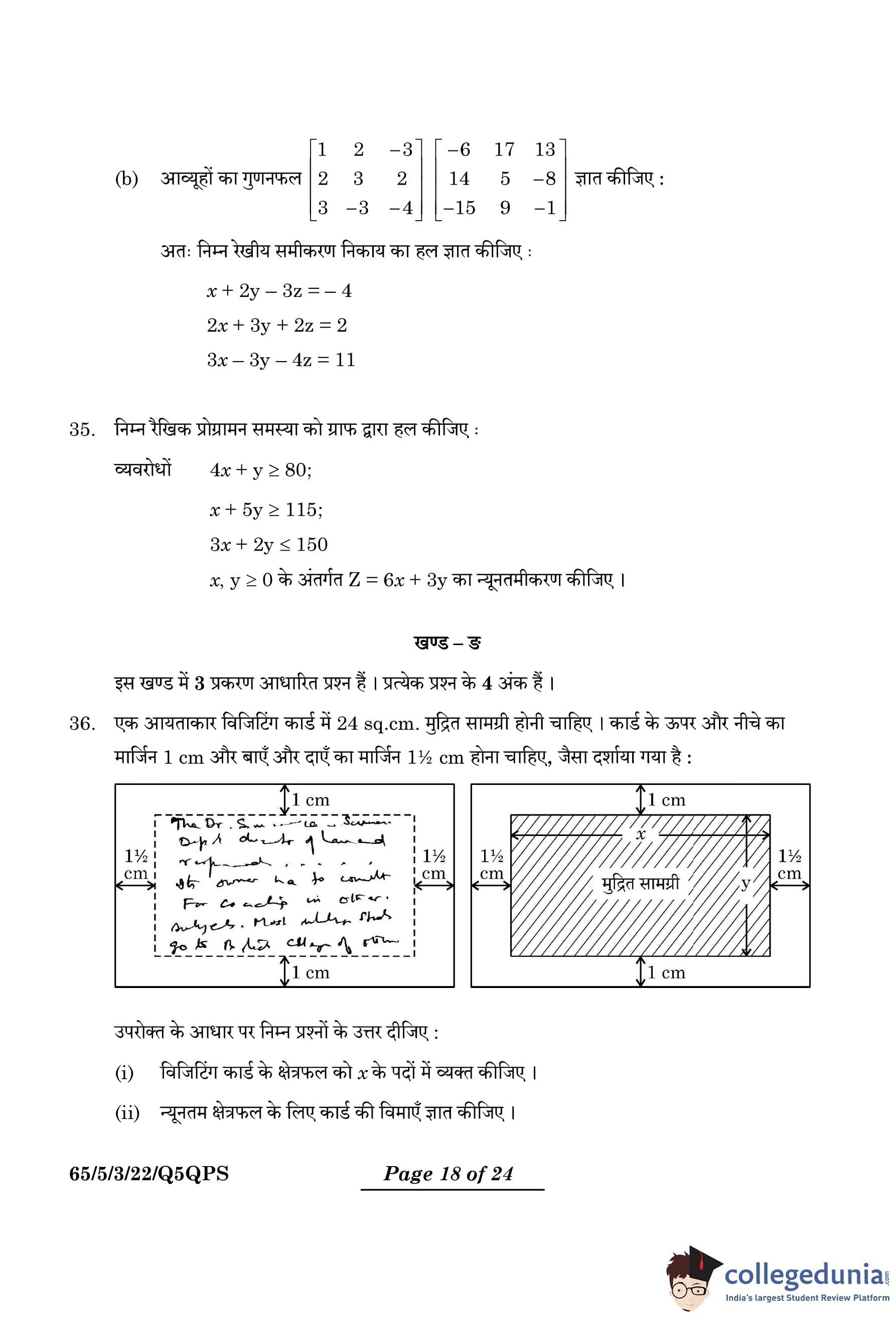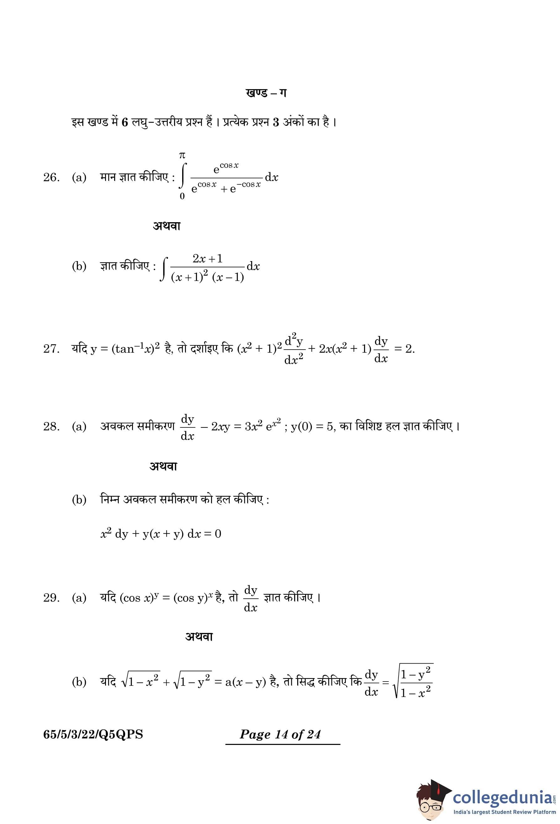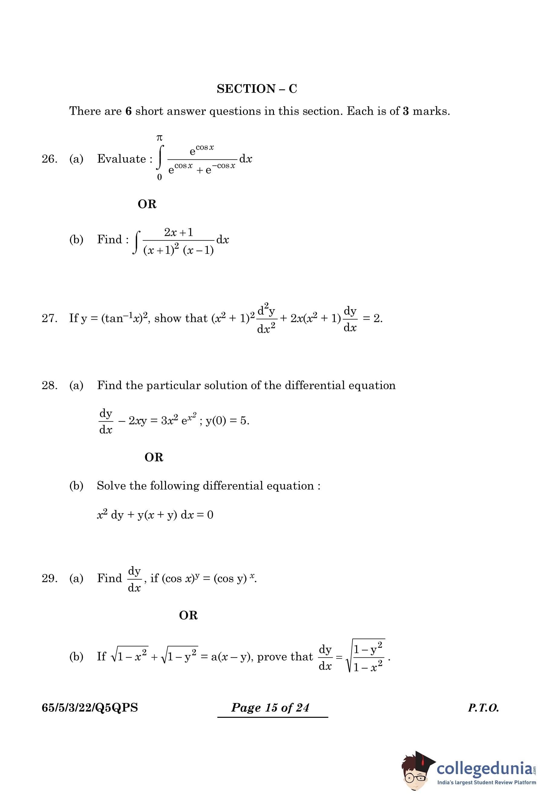 | CBSE Class 12 2024 Mathematics Question Paper with Answer Key | Check Solution |