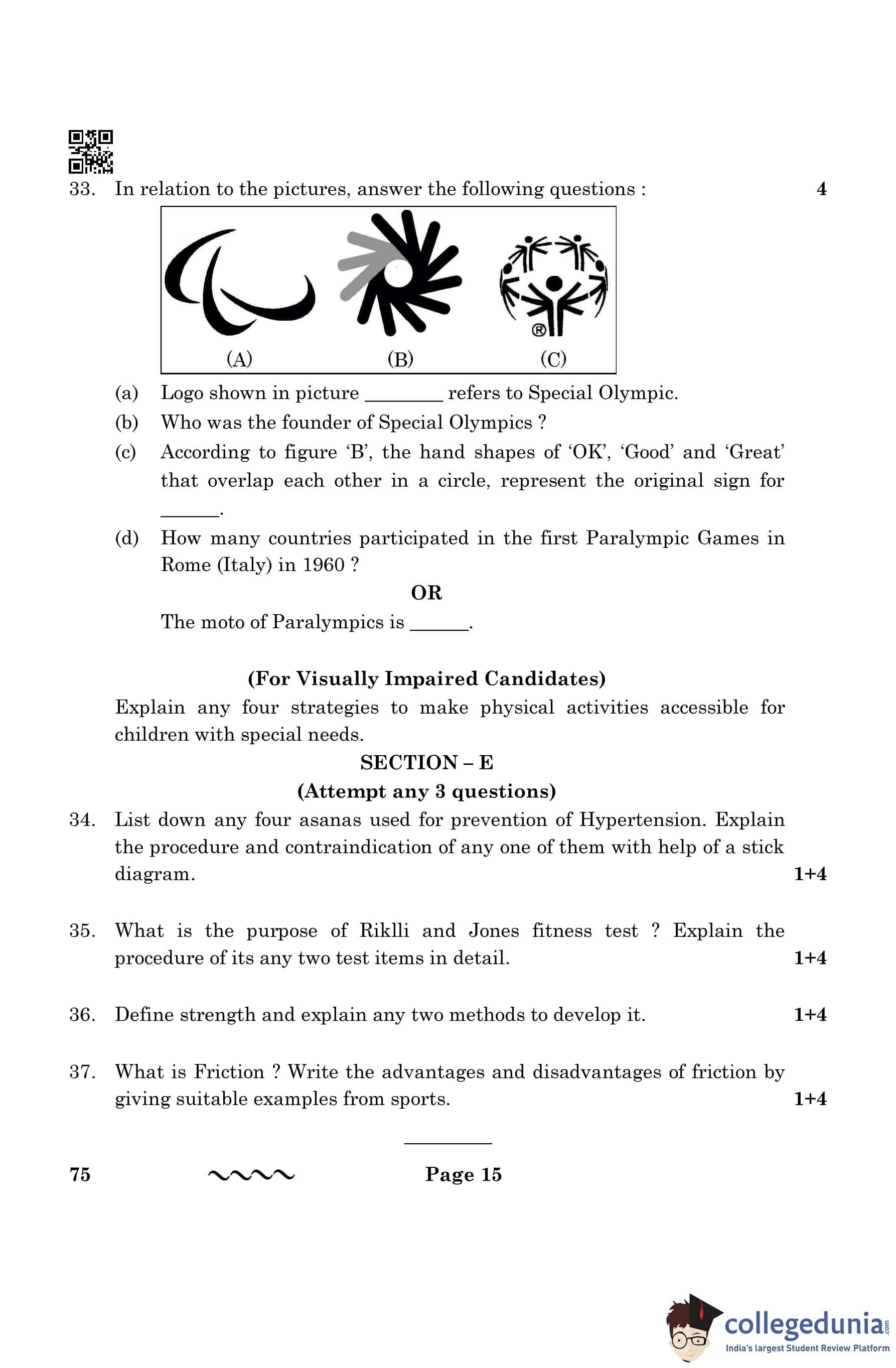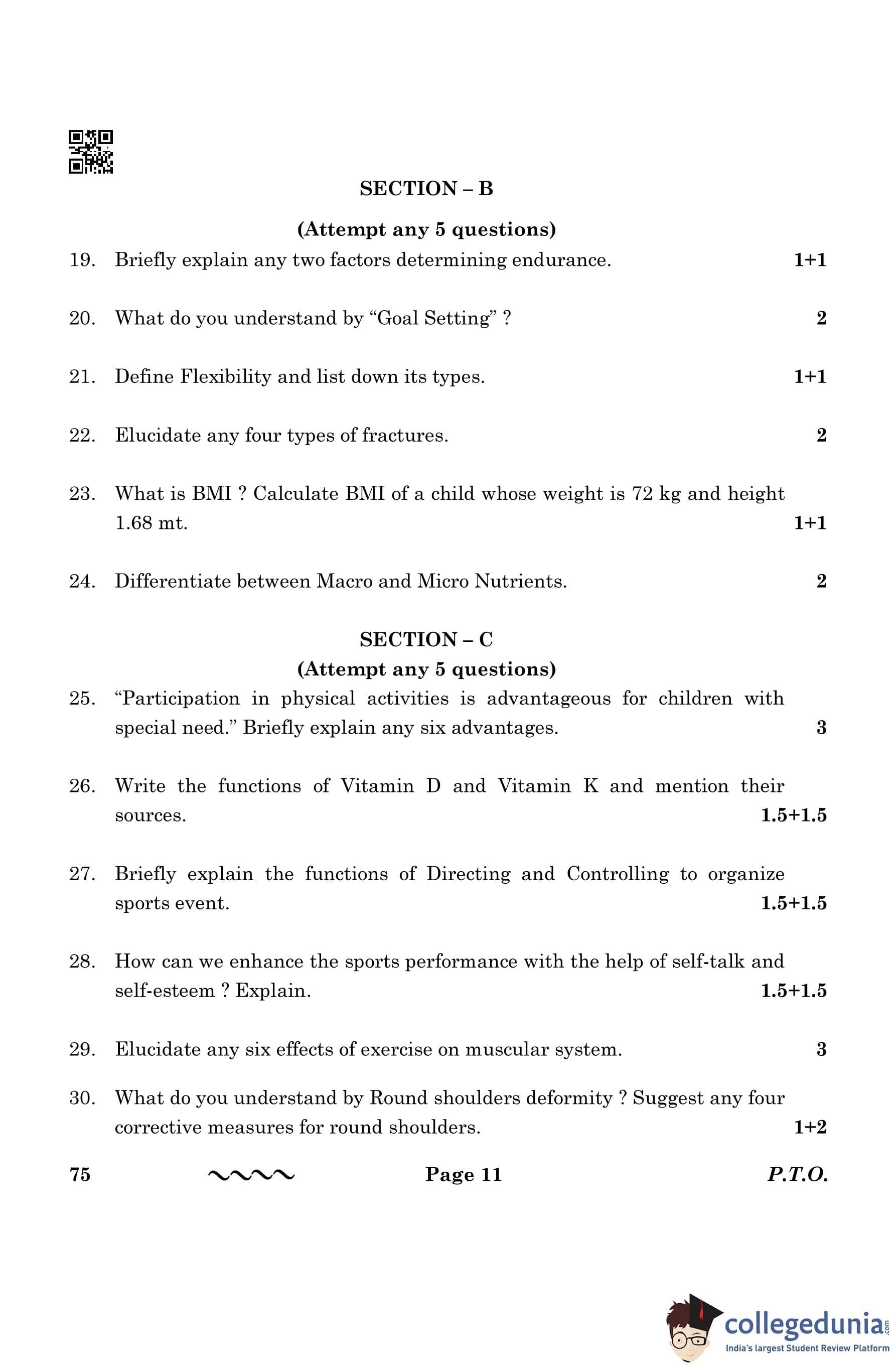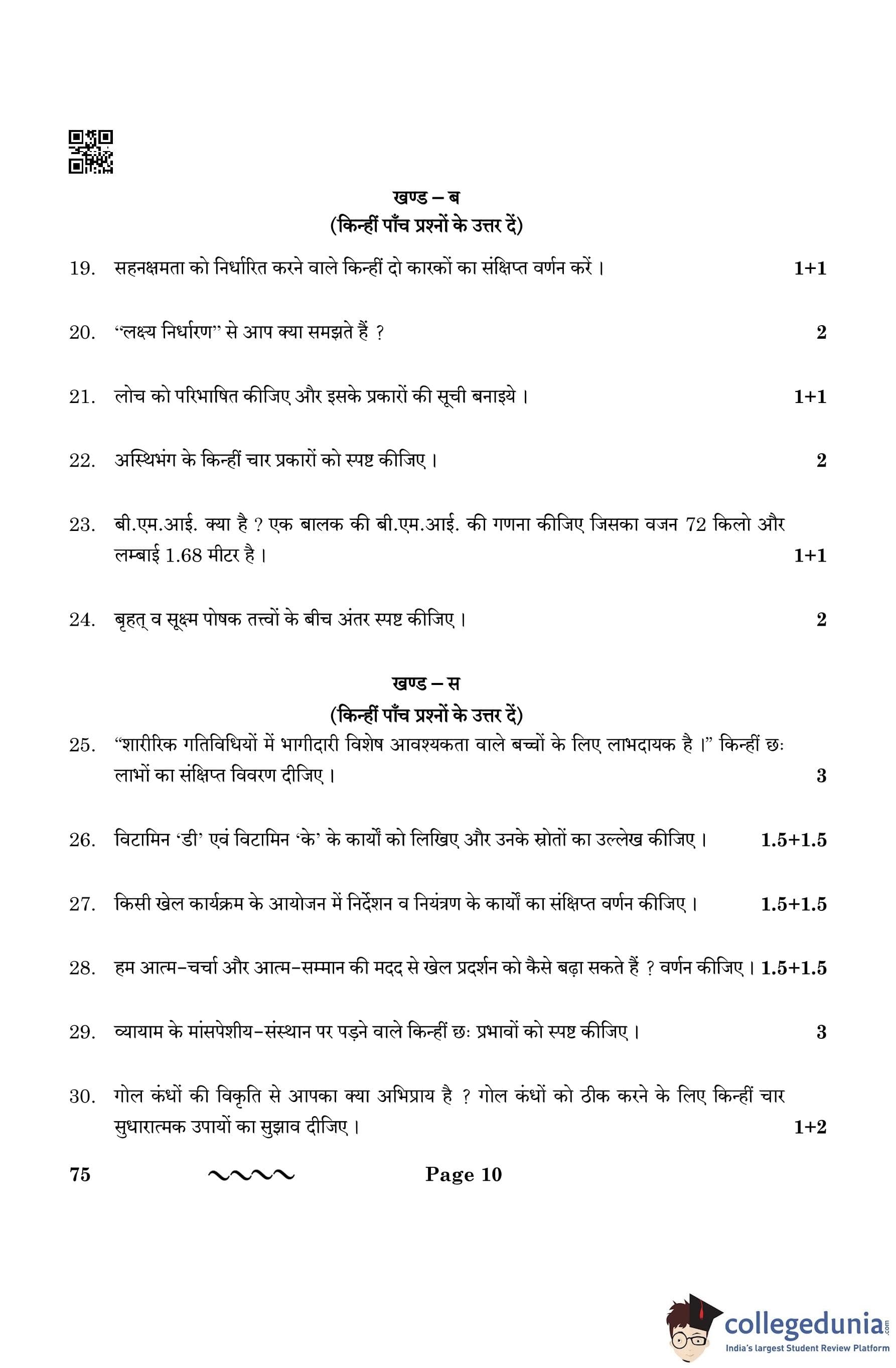CBSE Class 12 Physical Education Question Paper 2023 with Answer Key is available for download here. The exam was conducted by the Central Board of Secondary Education on March 13, 2023 in the Morning Session 10:30 AM to 1:30 PM. The medium of paper was English & Hindi. According to initial student reaction, the CBSE Class 12 Physical Education Paper was rated as easy in difficulty level. The question paper comprised a total of 37 questions divided among 5 sections.