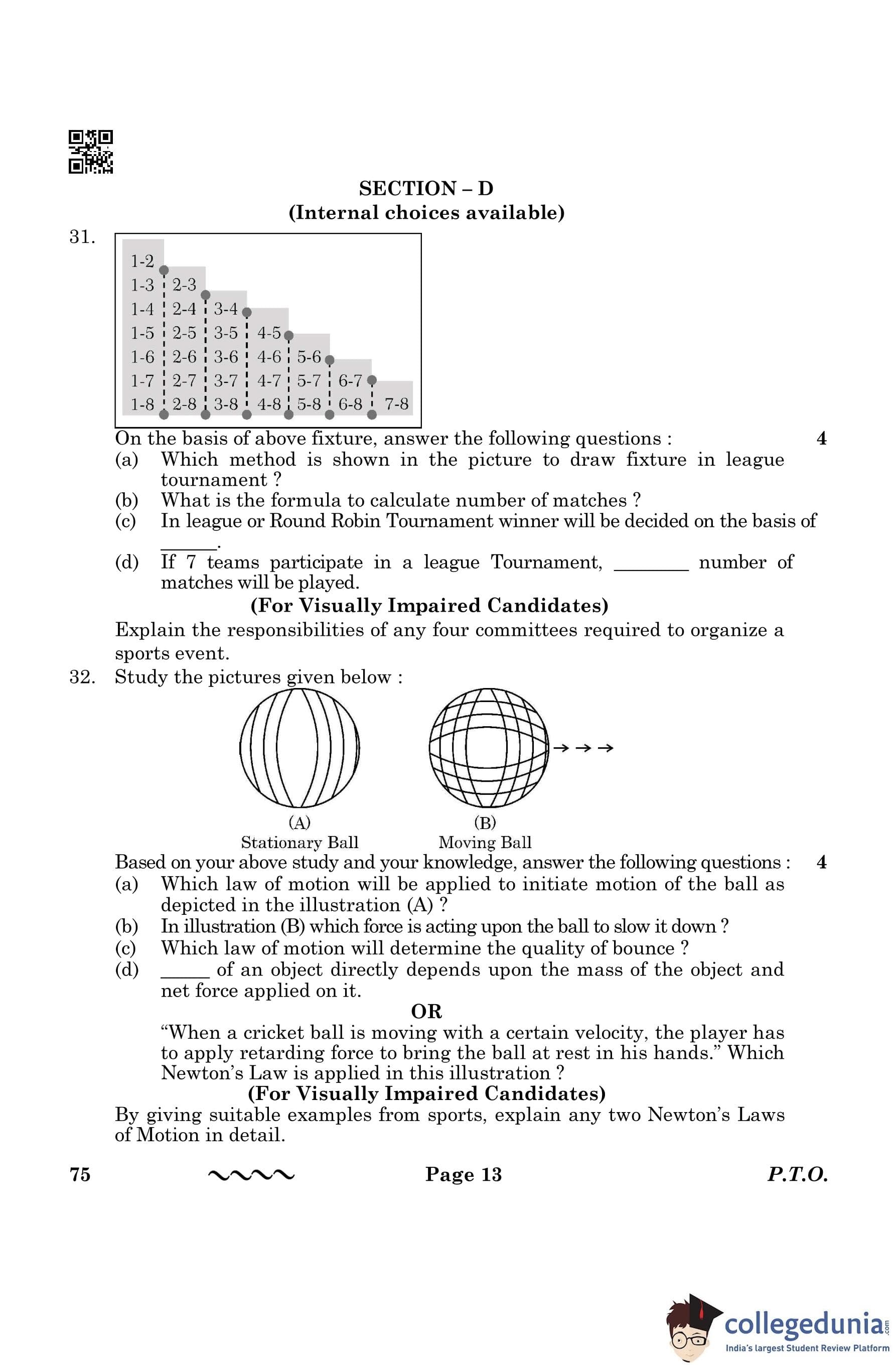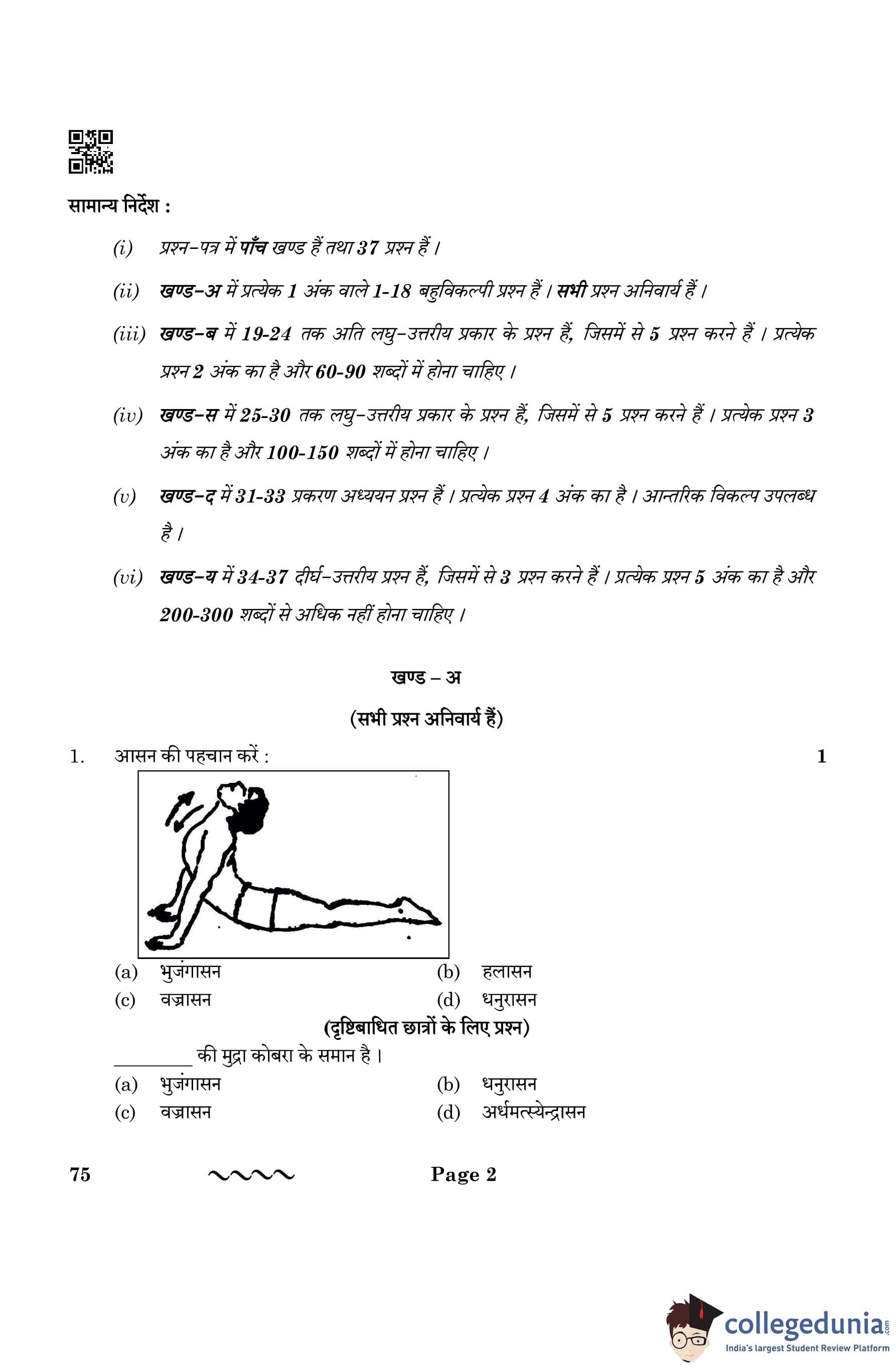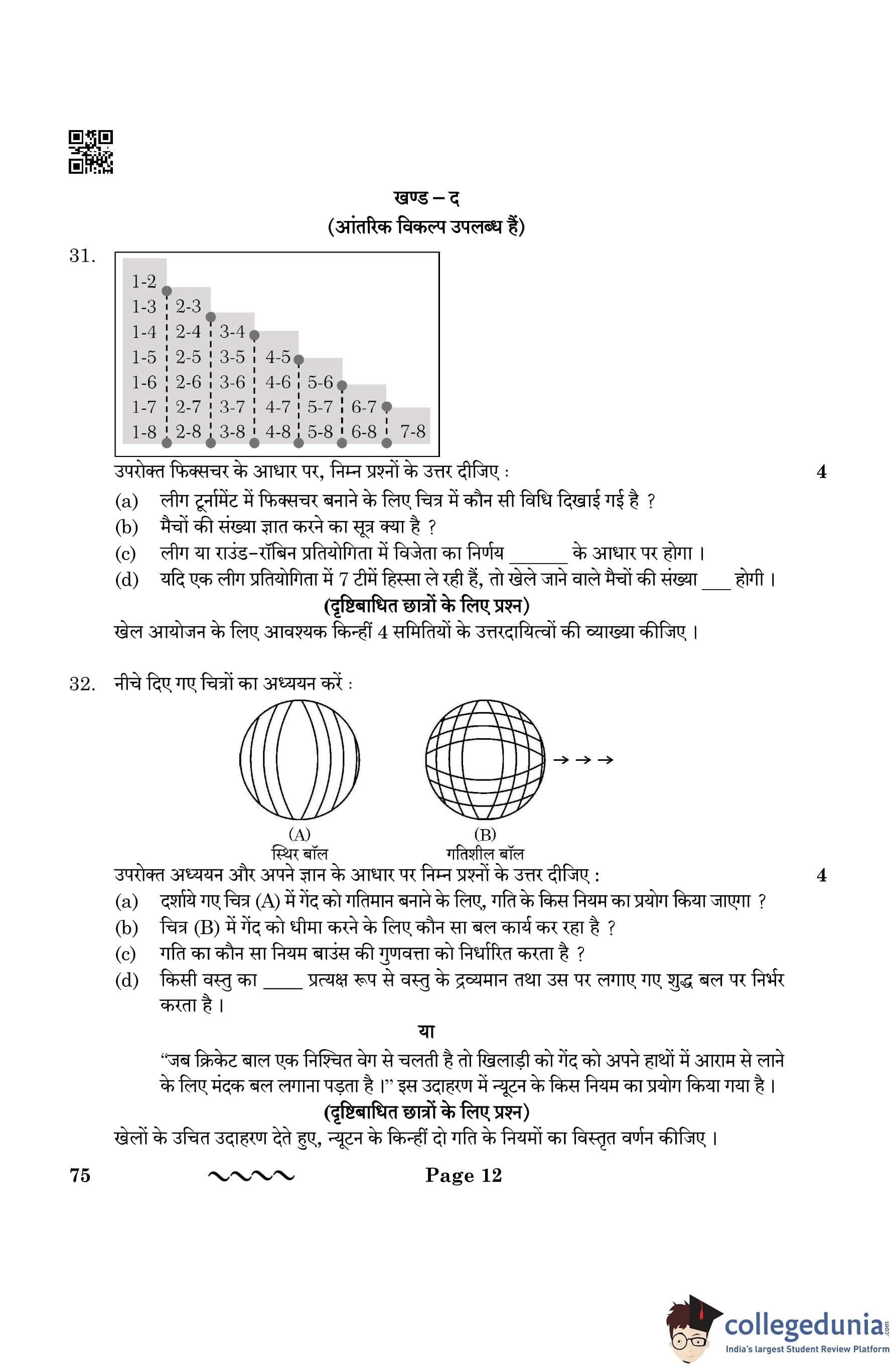 Latest- Check CBSE Class 12 Physical Education Question Paper 2026 Pdf