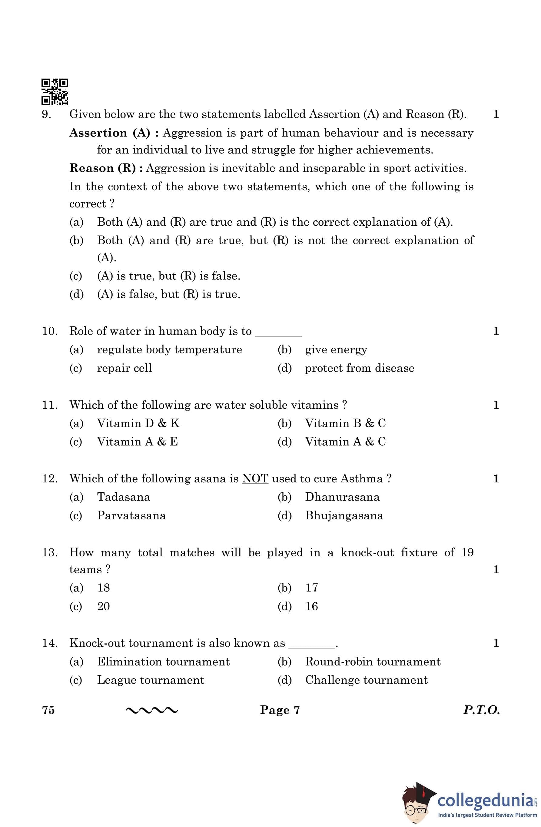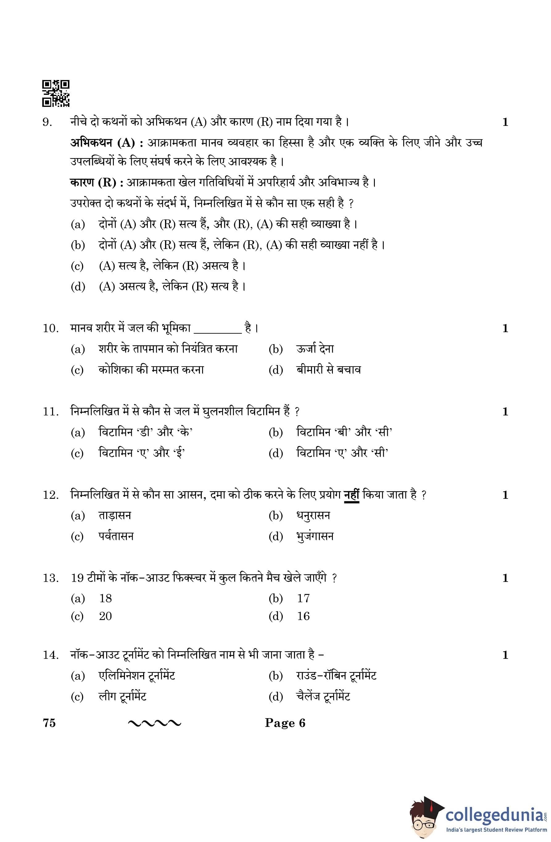 CBSE Class 12 Physical Education Question Paper 2023 with Answer Key (March 13)