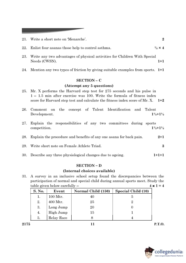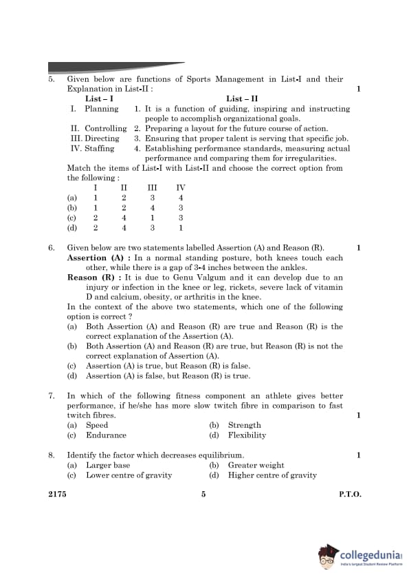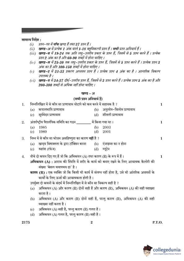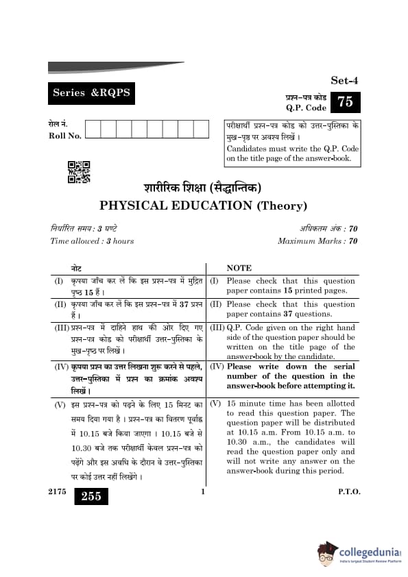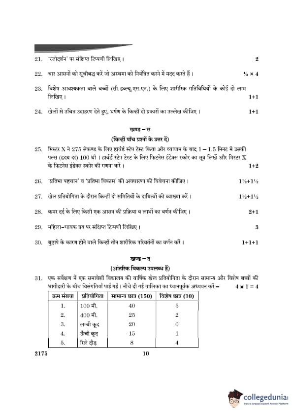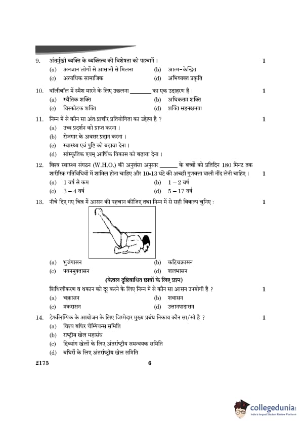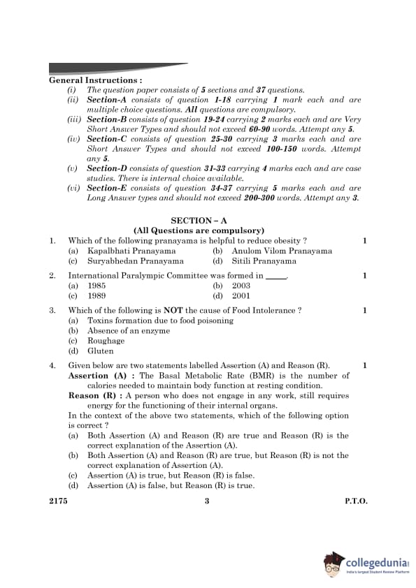 | CBSE Class 12 2024 Physical Education Question Paper with Answer Key | Check Solution |