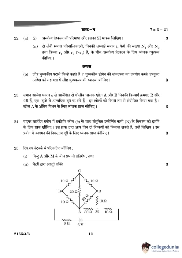 CBSE Class 12 Physics Question Paper 2024 (Set 3- 55/4/3) with Answer Key