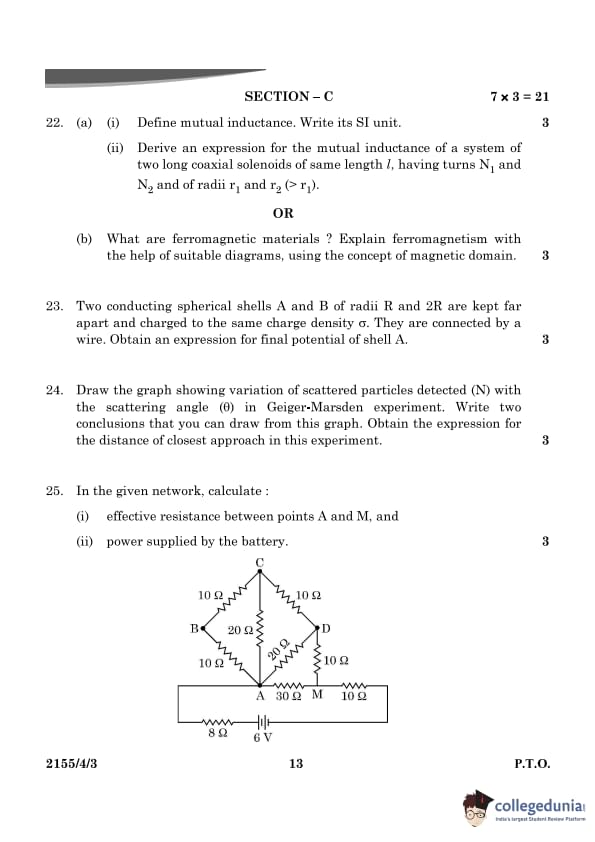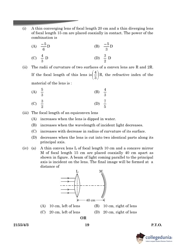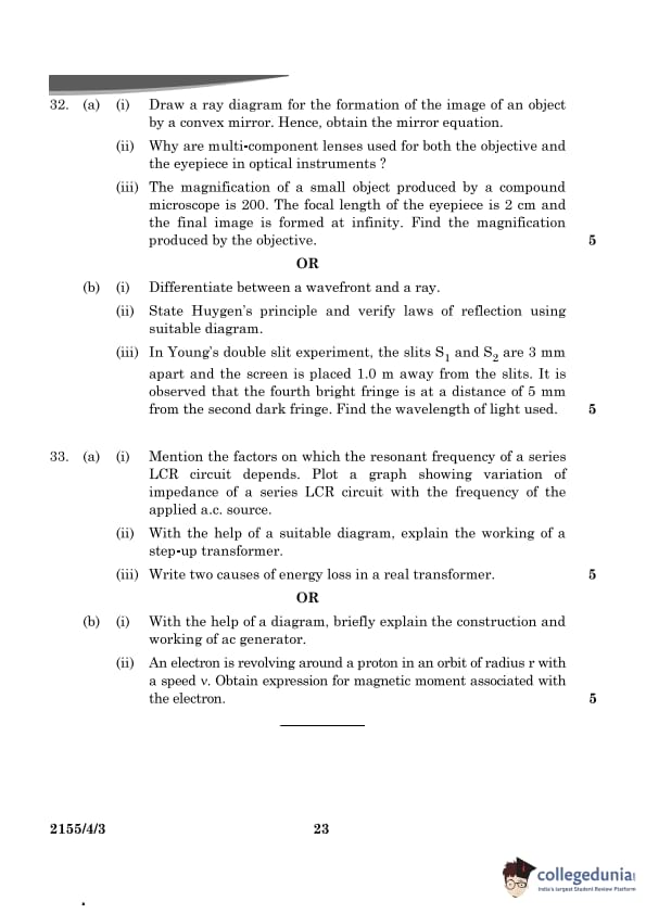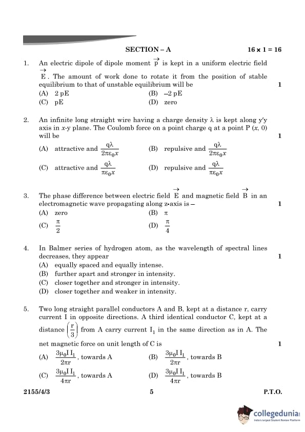 CBSE Class 12 Physics Question Paper 2024 PDF (Set 3- 55/4/3) is available for download here. CBSE conducted the Physics exam on March 4, 2024 from 10:30 AM to 1:30 PM. The total marks for the theory paper are 70. The question paper contains 20% MCQ-based questions, 40% competency-based questions, and 40% short and long answer type questions.