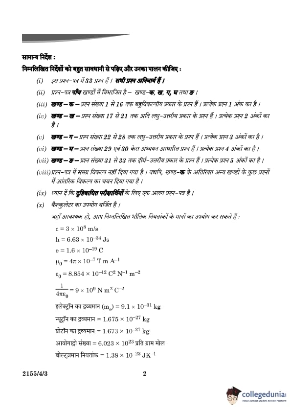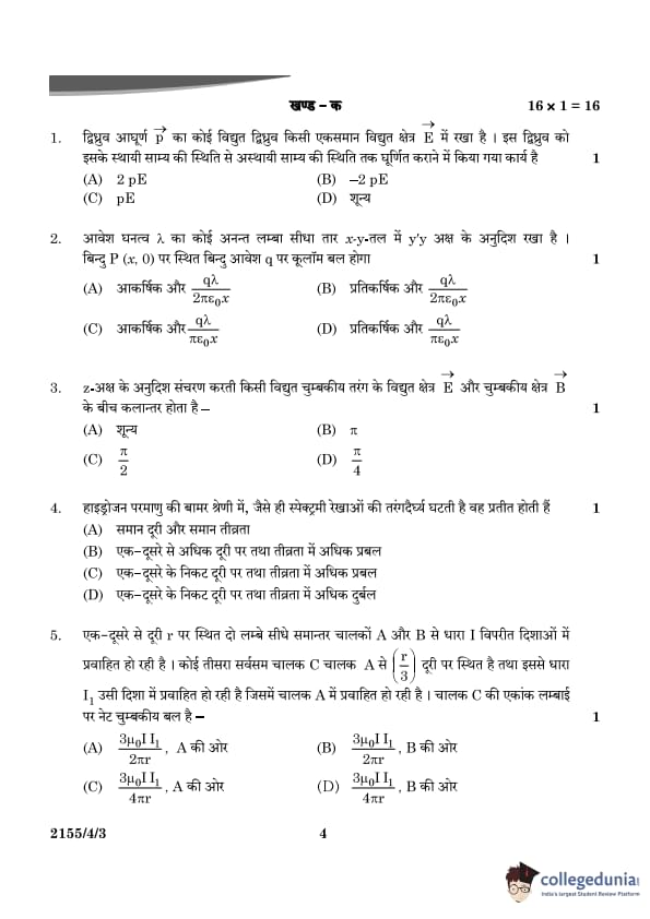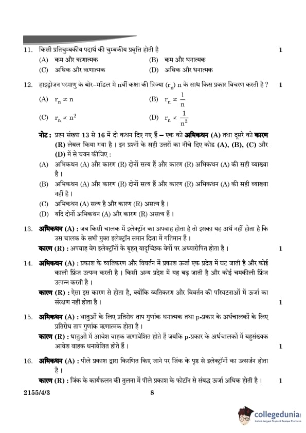 | CBSE Class 12 2024 Physics Question Paper with Answer Key | Check Solution |
