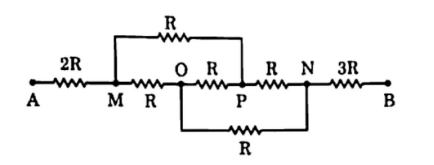 Total resistance: \[ R_{total} = 2R + \frac{R}{2} = \frac{5R}{2} \]