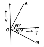 \[ \boxed{\frac{Q_1}{Q_2} = -3} \] Quick Tip: In V vs \( 1/r \) graph: Slope ∝ charge Positive slope → positive charge Negative slope → negative charge