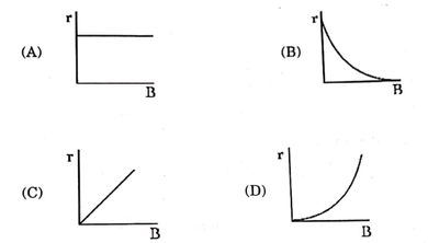A charged particle is moving in a uniform magnetic field \( \vec{B} \) with a constant speed \( v \) in a circular path of radius \( r \). Which of the following graphs represents the variation of radius of the circle, with the magnitude of magnetic field \( \vec{B} \)?