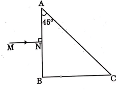 The figure shows three point charges kept at the vertices of triangle ABC. The net electric field, due to this system of charges, at the midpoint M of base BC will be: