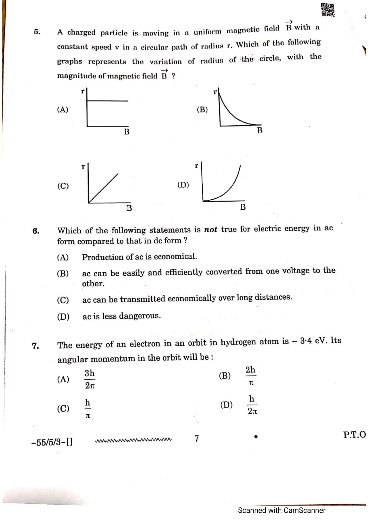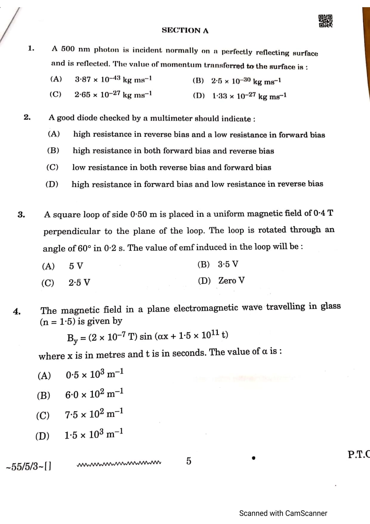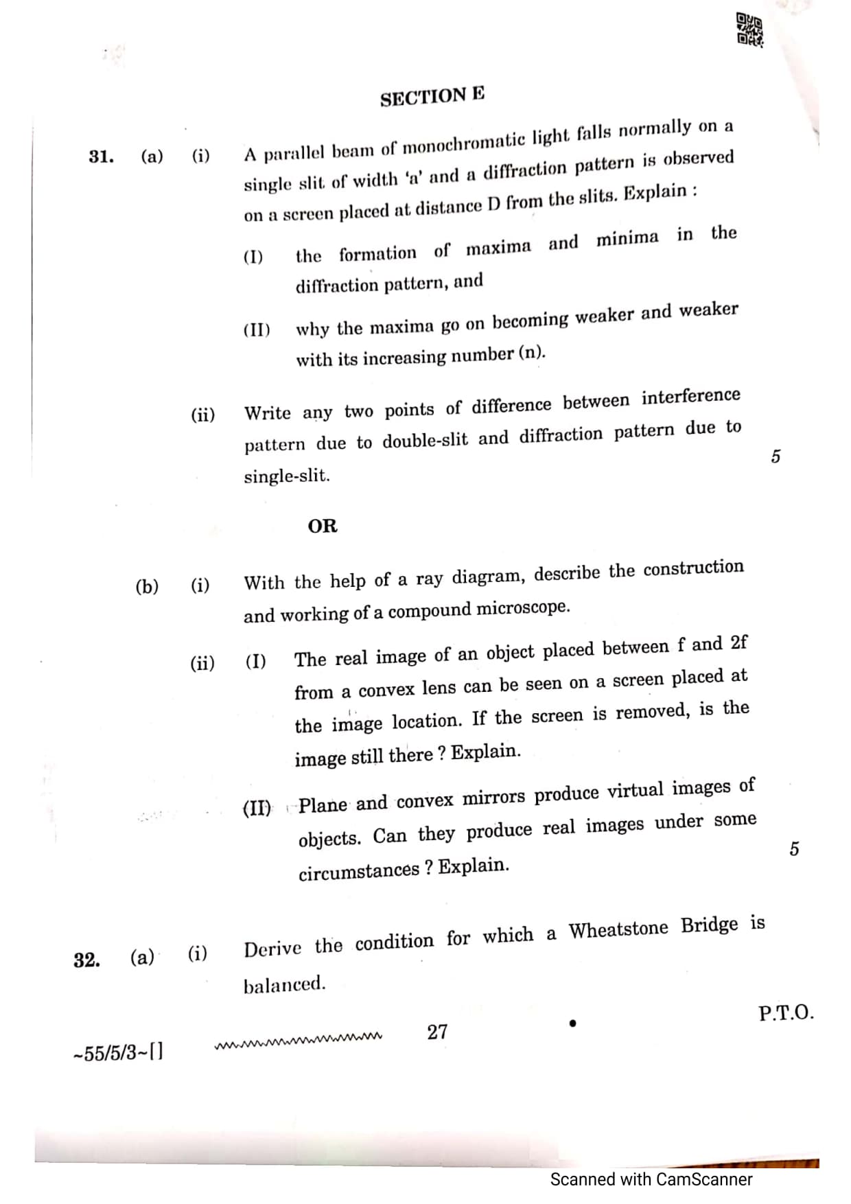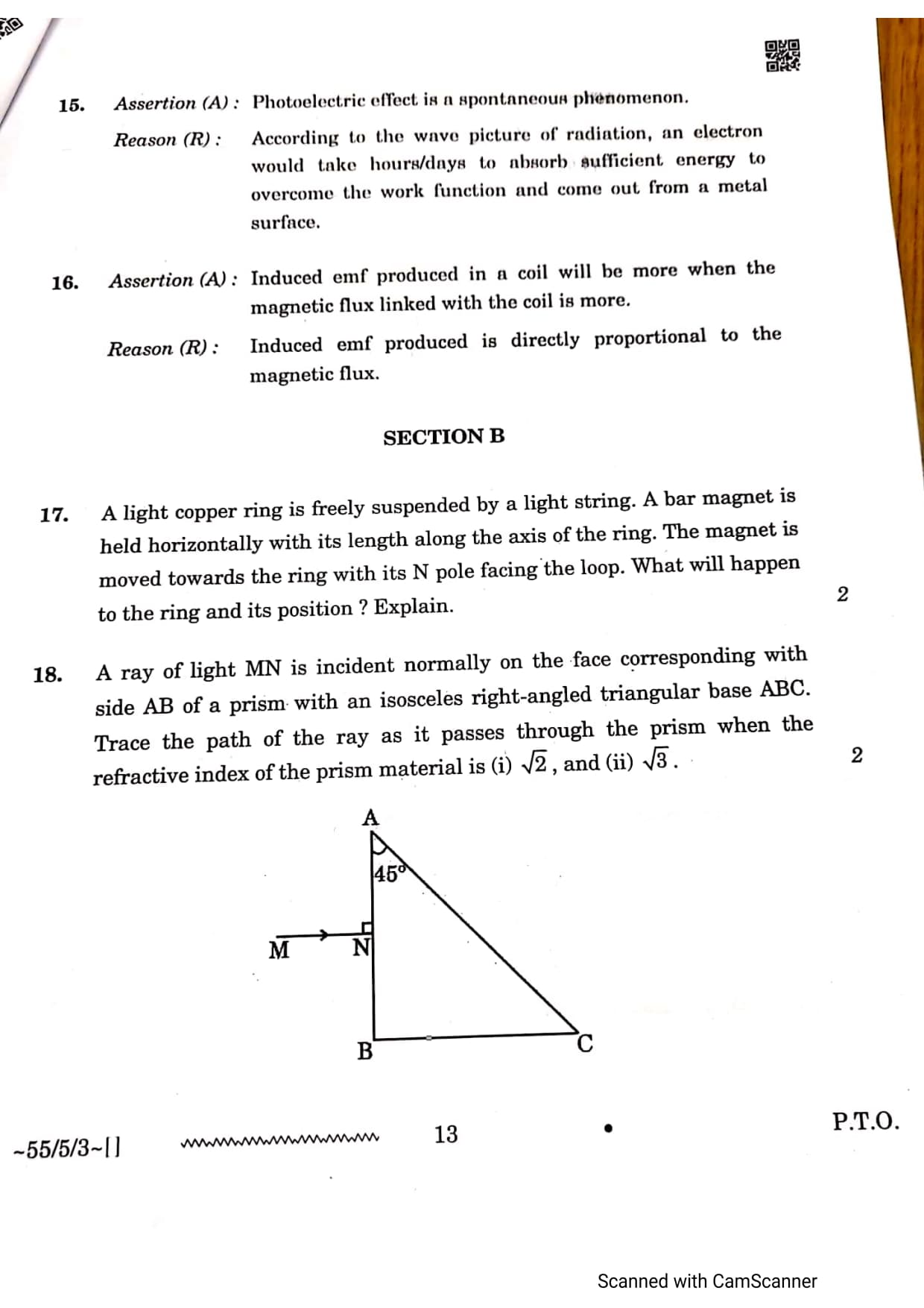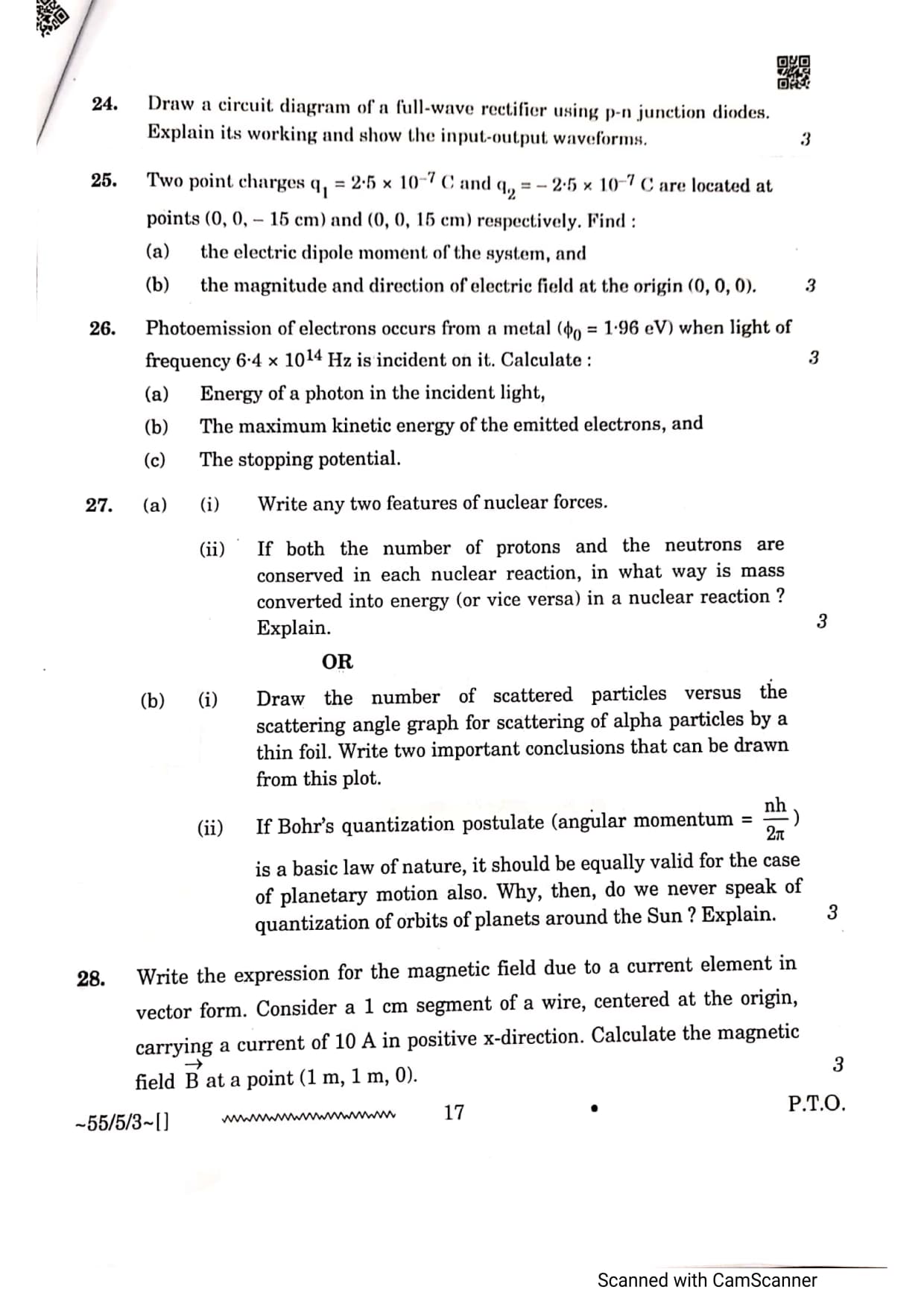 CBSE Class 12 Physics Question Paper 2026 Set 3 55-5-3