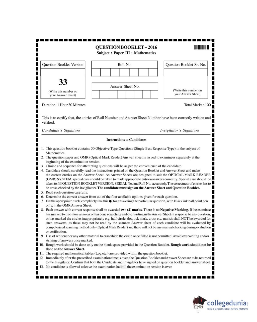| UUEE 2016 Mathematics Question Paper PDF | UUEE 2016 Mathematics Answer Key PDF |