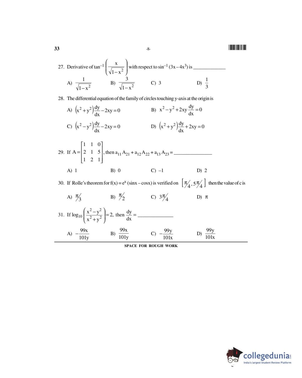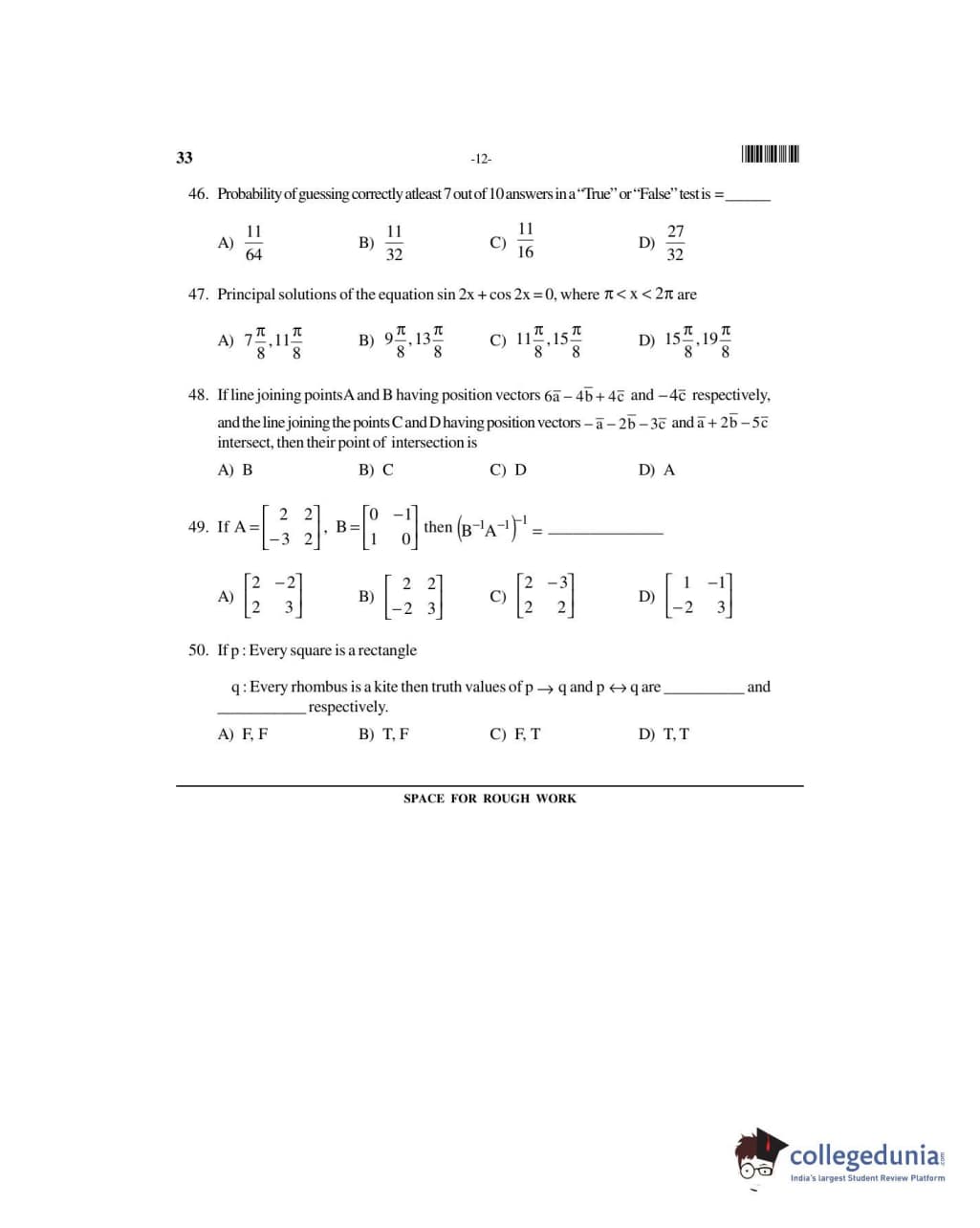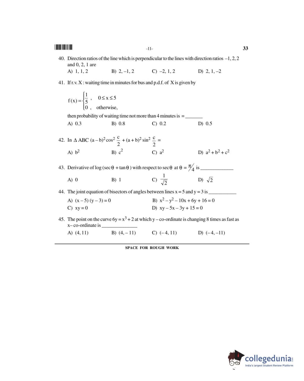 UUEE 2016 Mathematics Question paper with answer key pdf is available for download. The exam was successfully organized by Uttaranchal University. The question paper comprised a total of 50 questions.