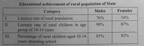 Category III gives the percentage of rural children aged 10--14 years attending school.