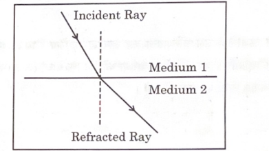 Study the figure in which the path of a ray of light going from Medium 1 to Medium 2 is shown: