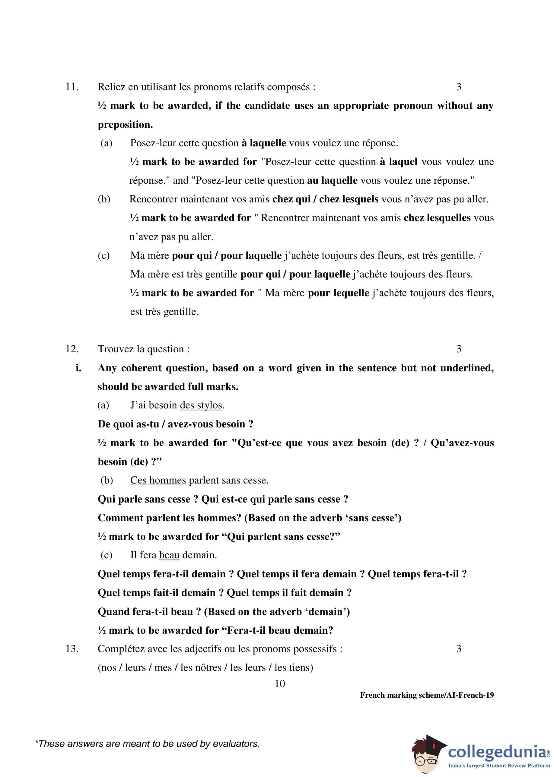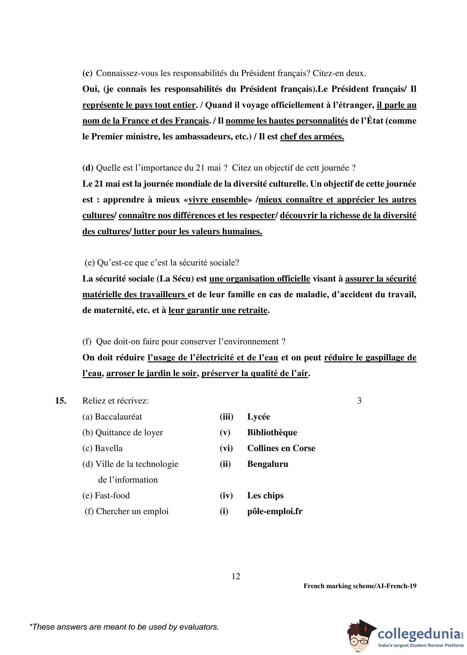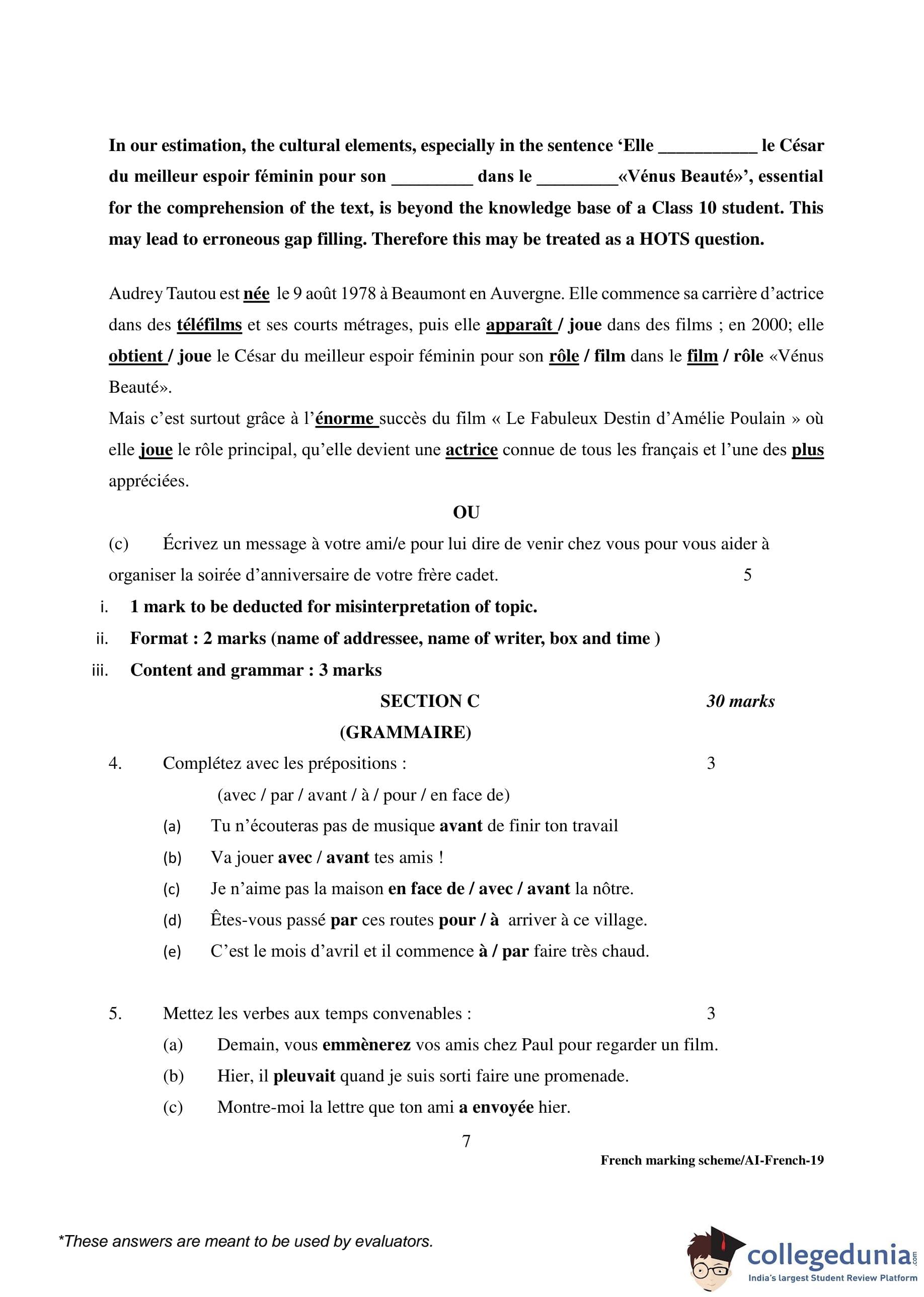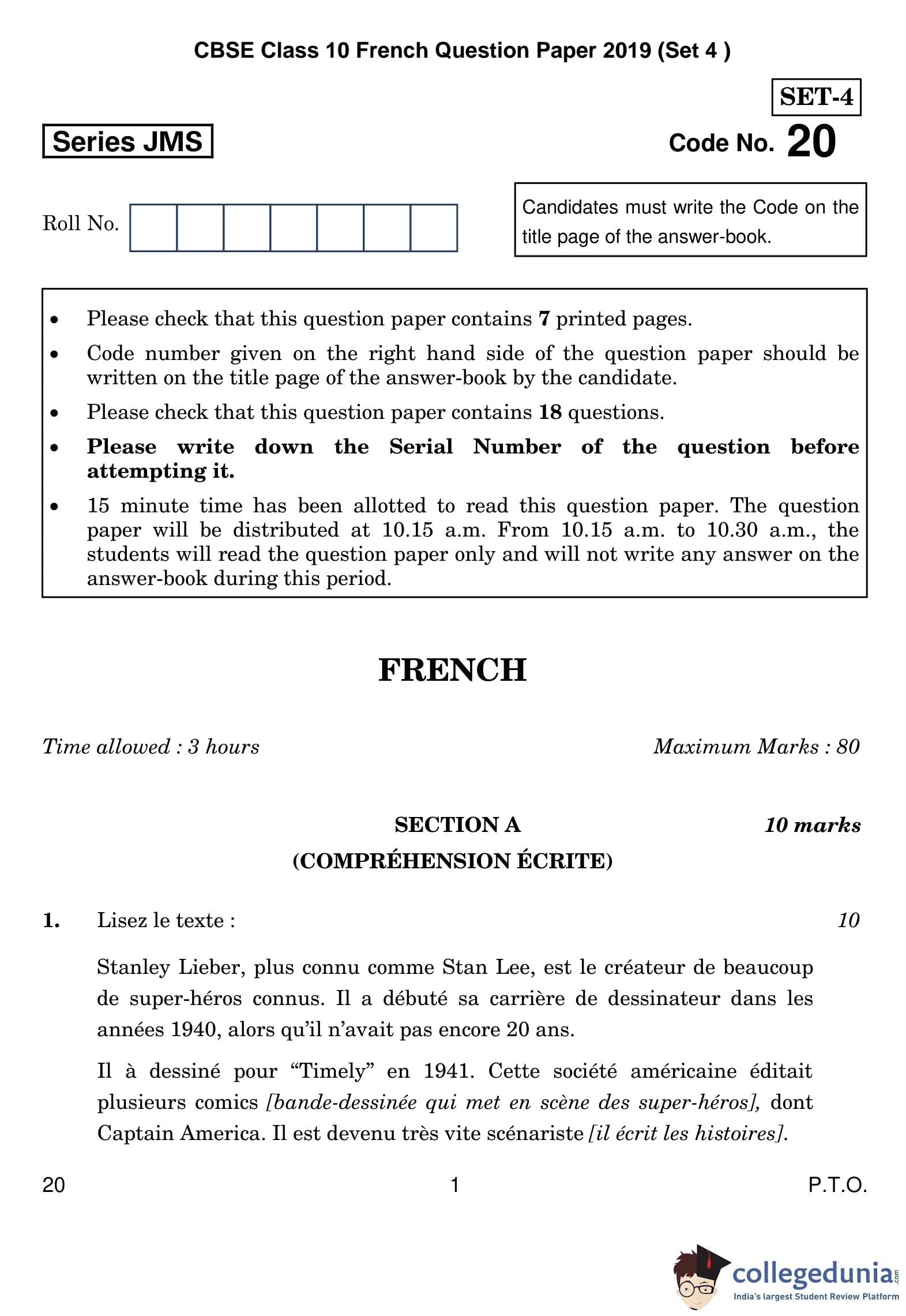 | CBSE Class 10 French Question Paper 2019 PDF | CBSE Class 10 French Answer Key 2019 PDF | Detailed Solutions |