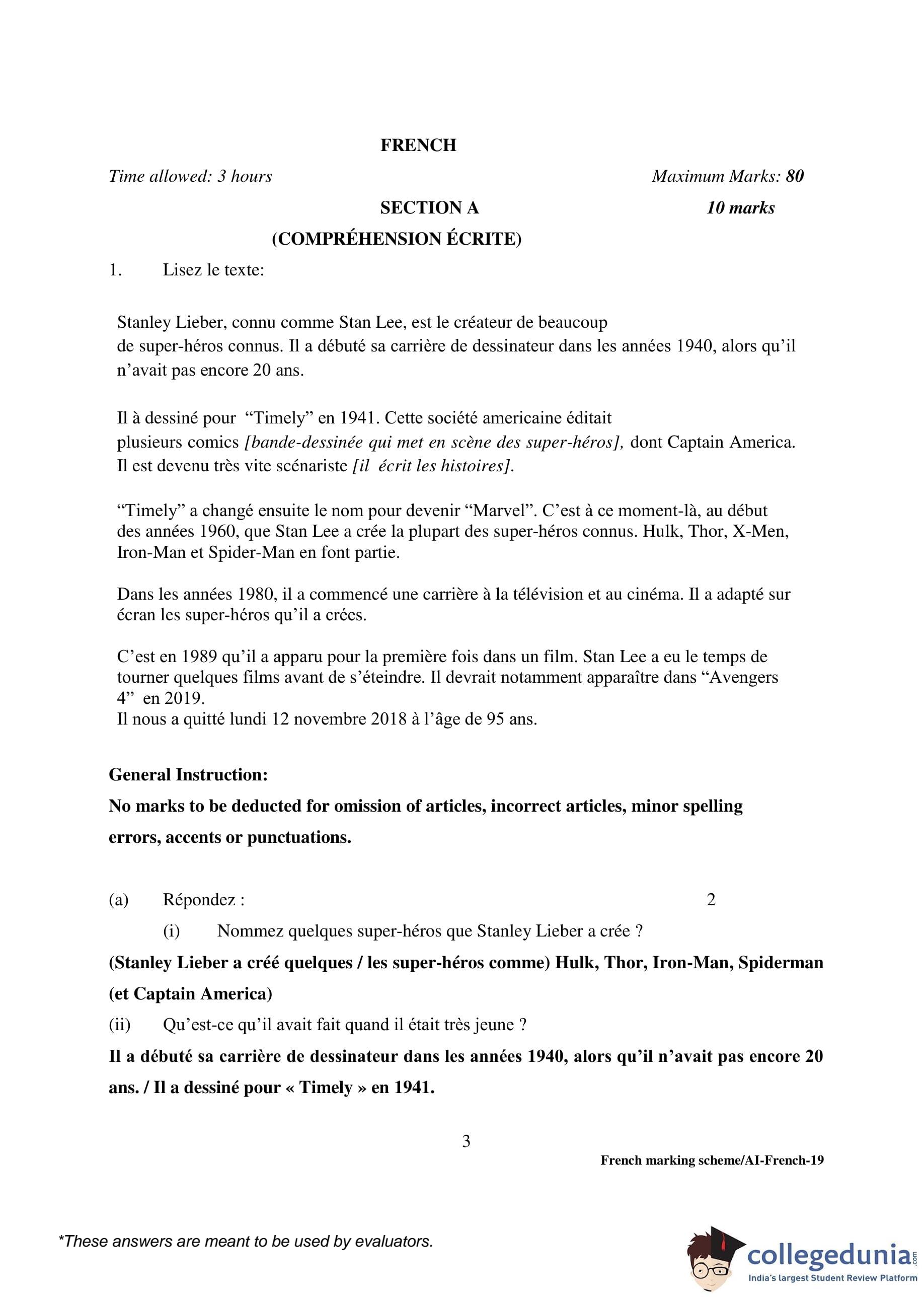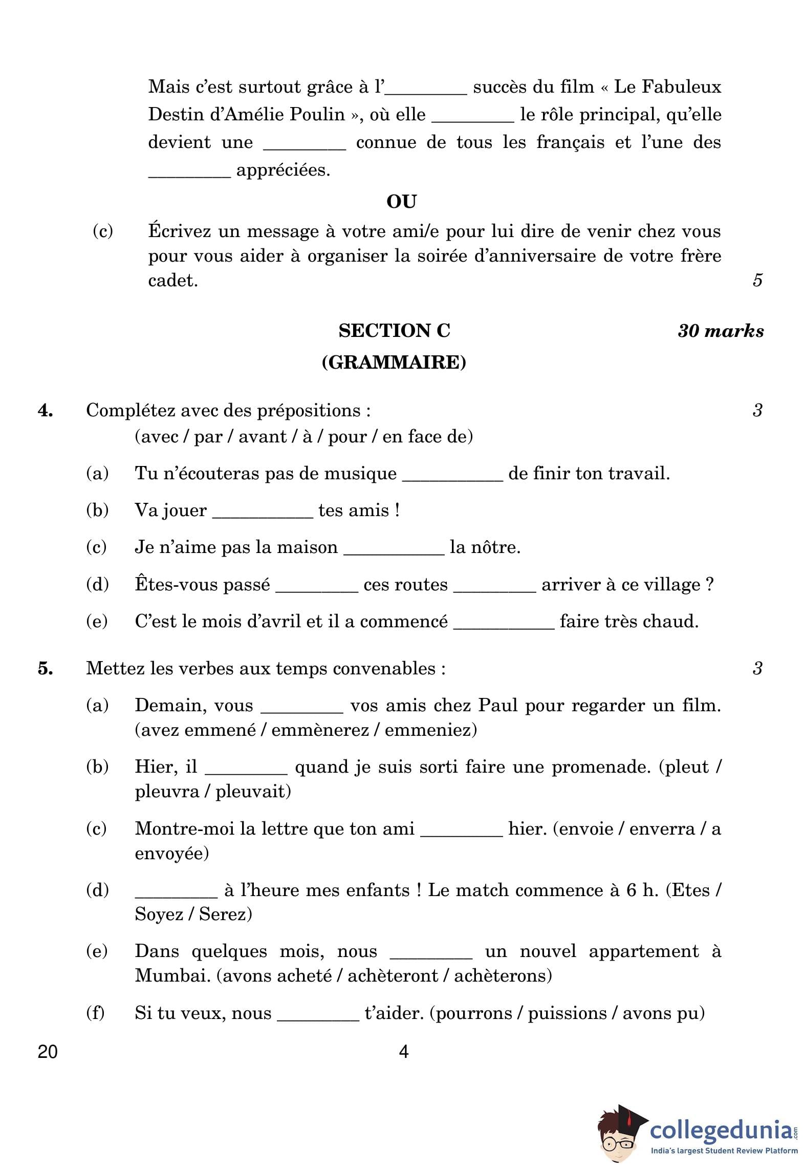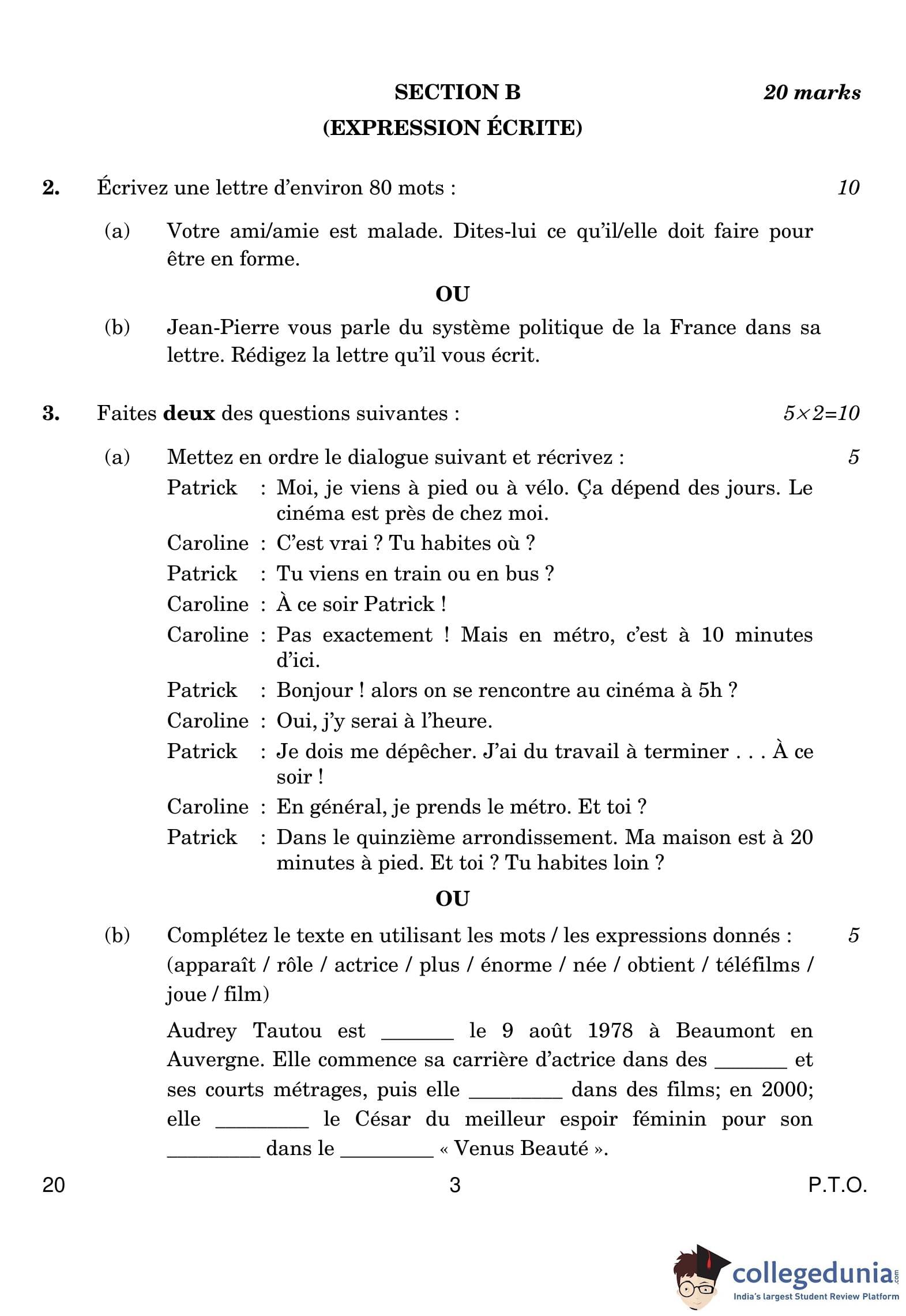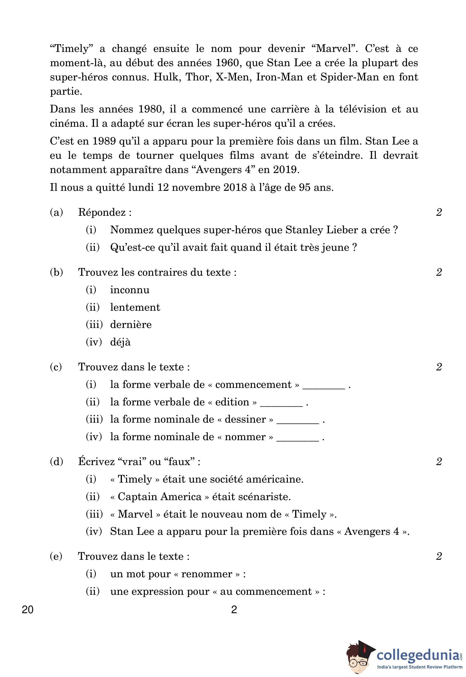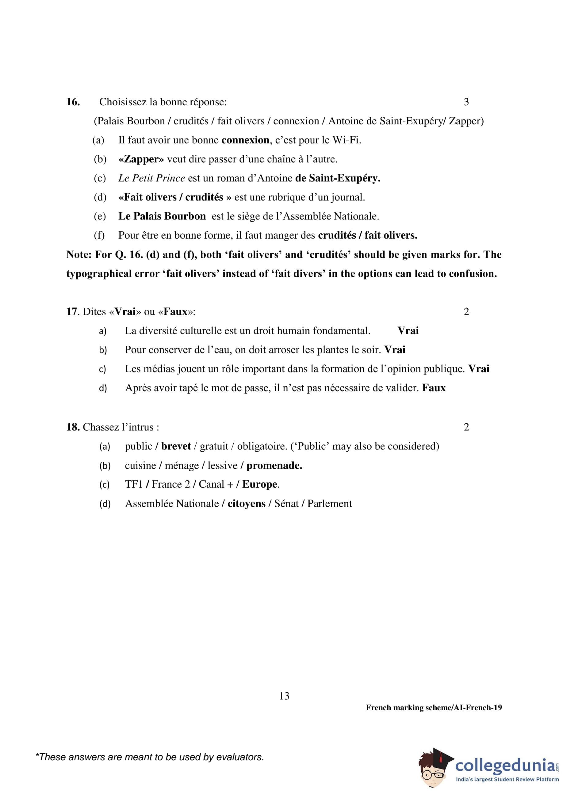 | CBSE Class 10 French Question Paper 2019 PDF | CBSE Class 10 French Answer Key 2019 PDF | Detailed Solutions |