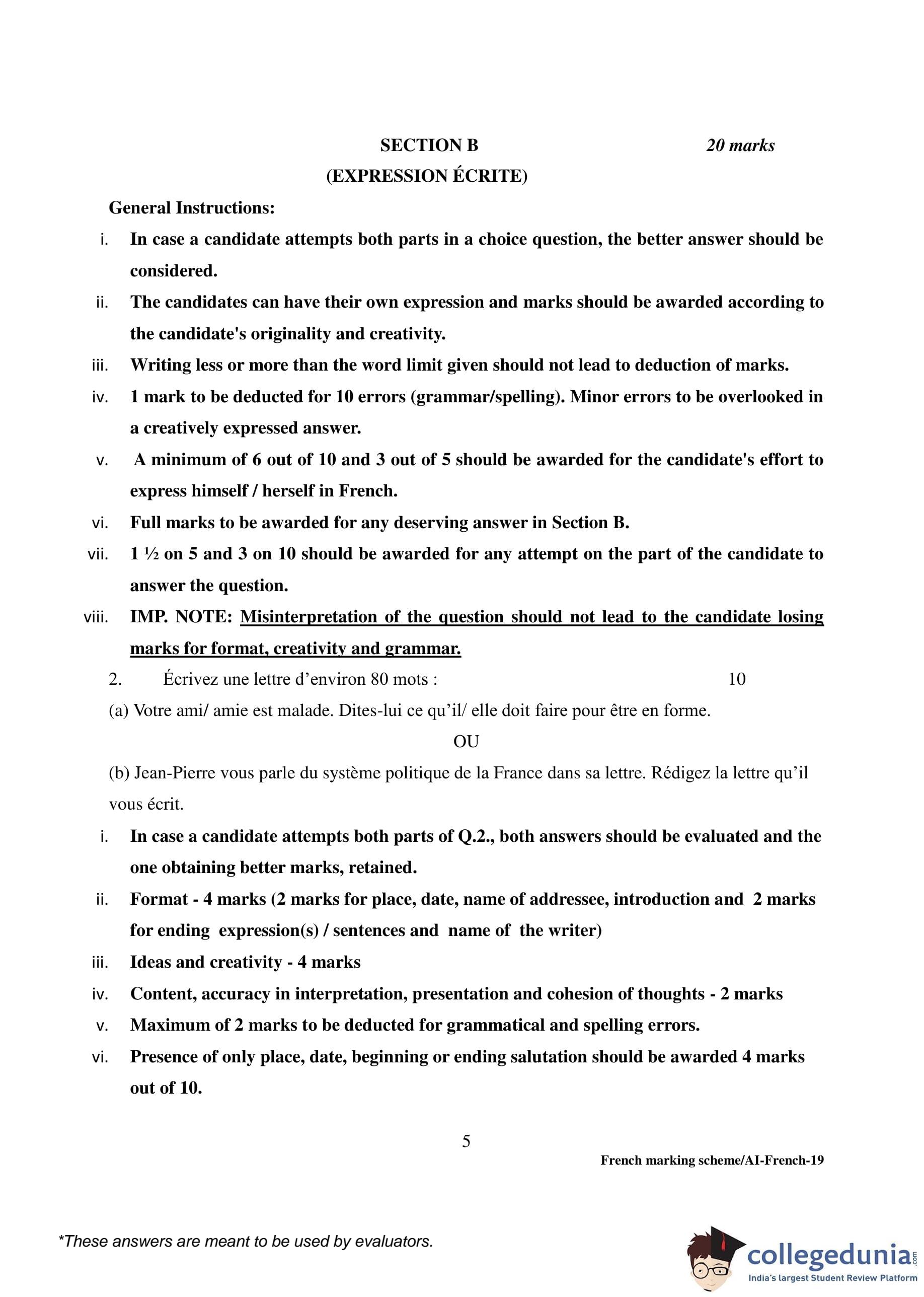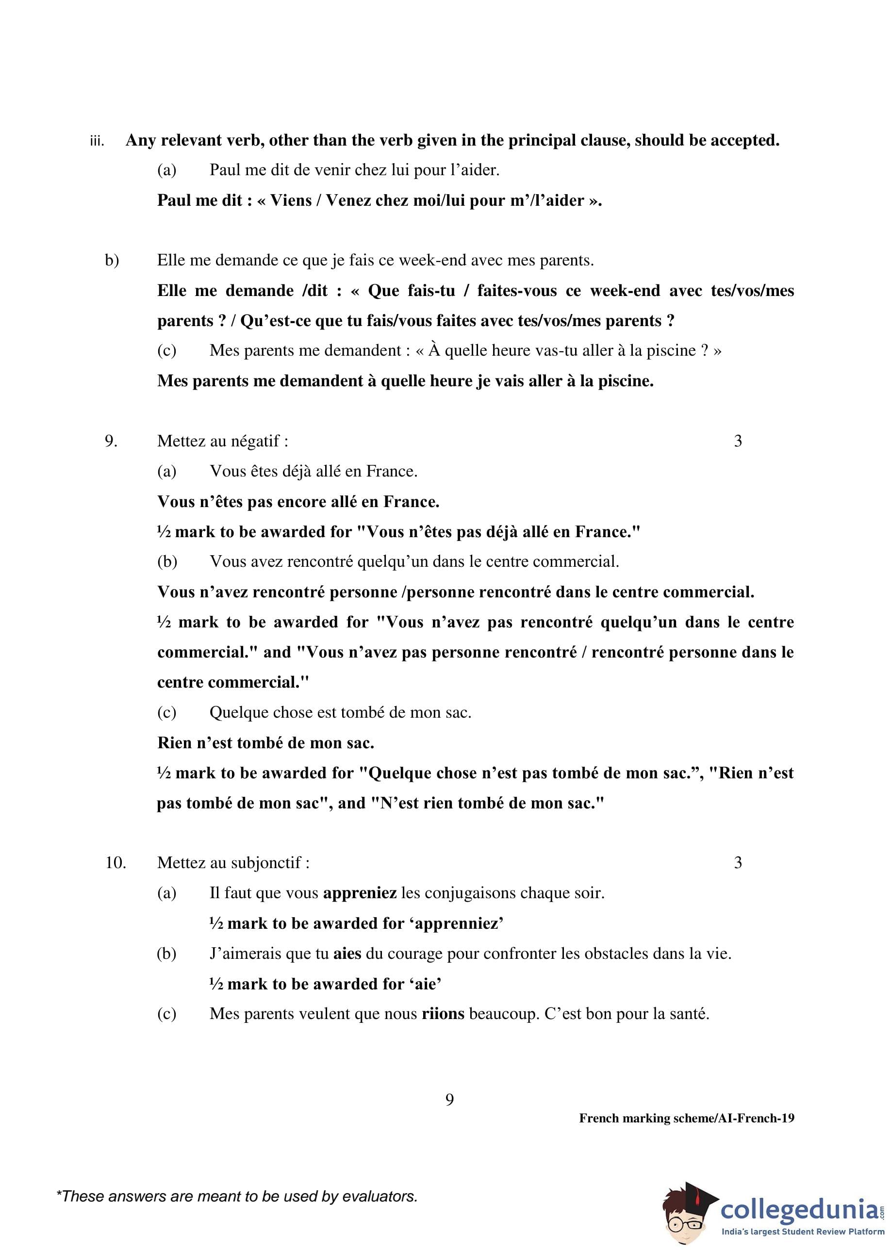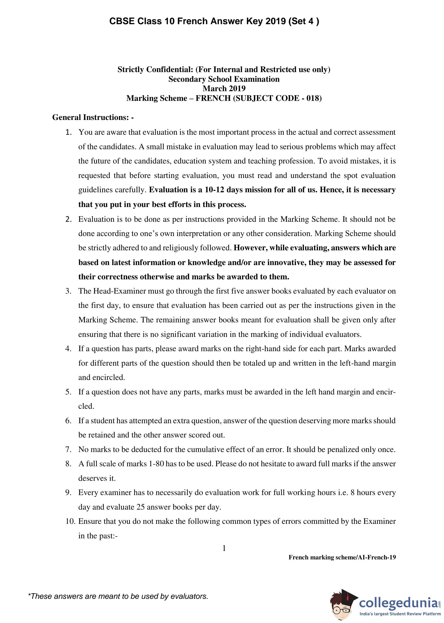 CBSE Class 10 French Question Paper 2019 with Answer Key (March 9)