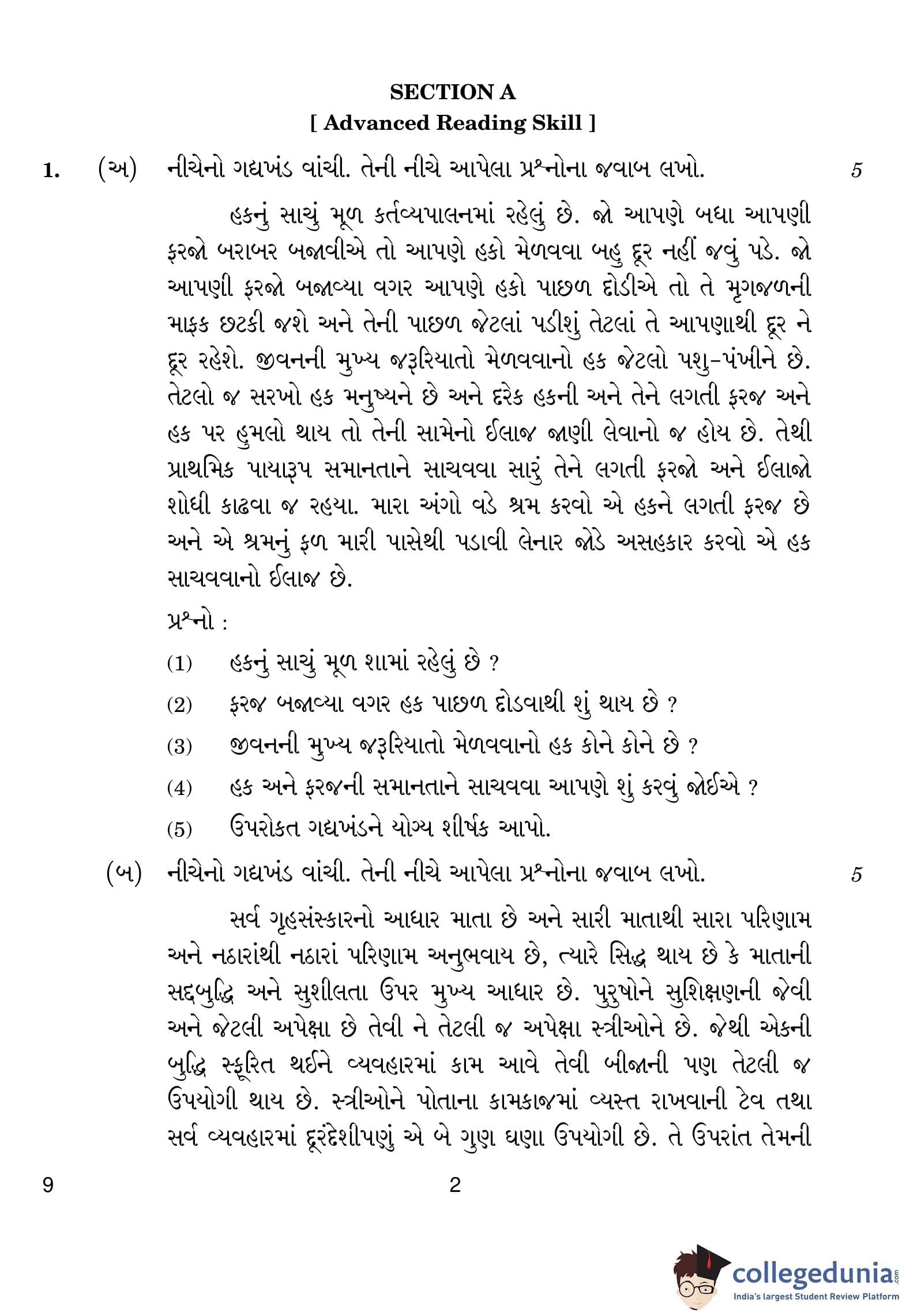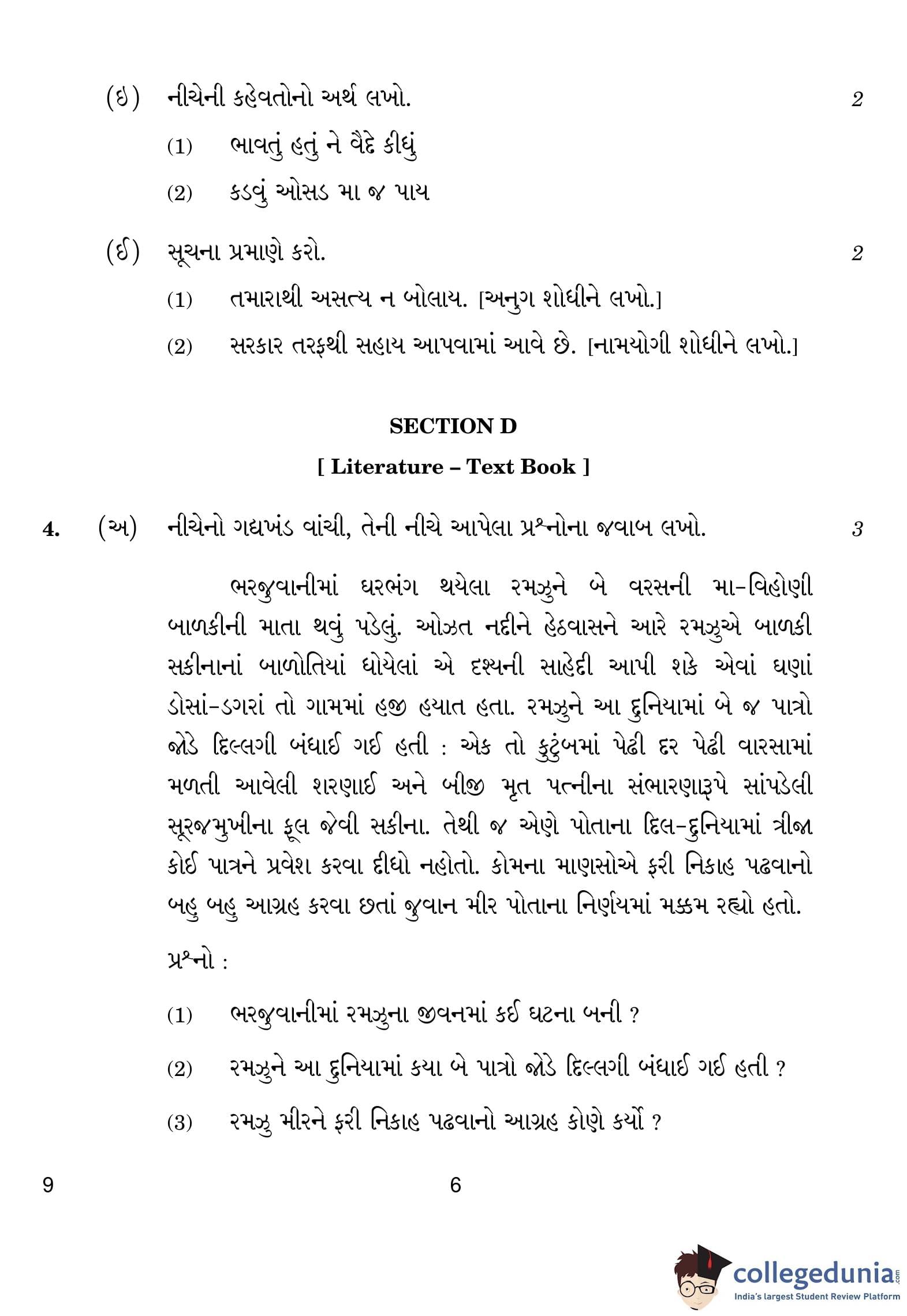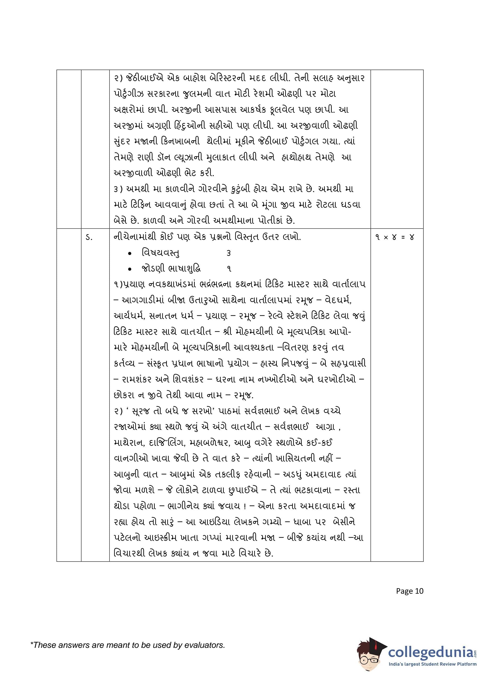 CBSE Class 10 Gujarati Question Paper 2019 with Answer Key (March 5)
