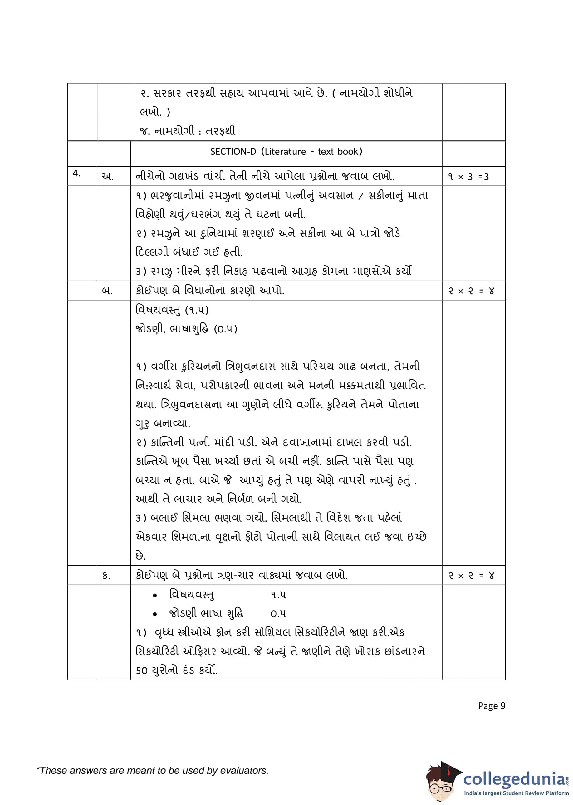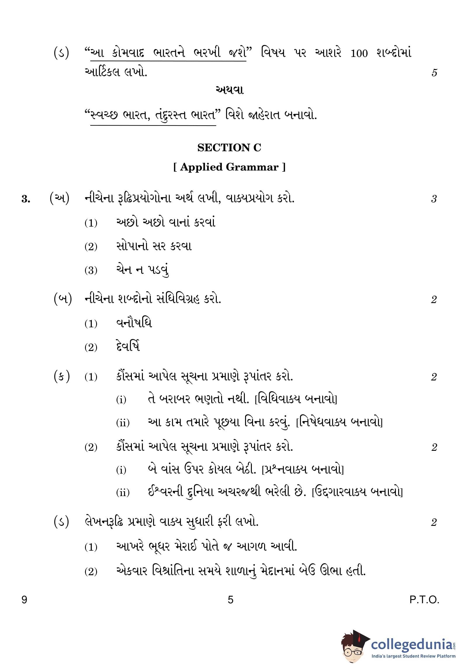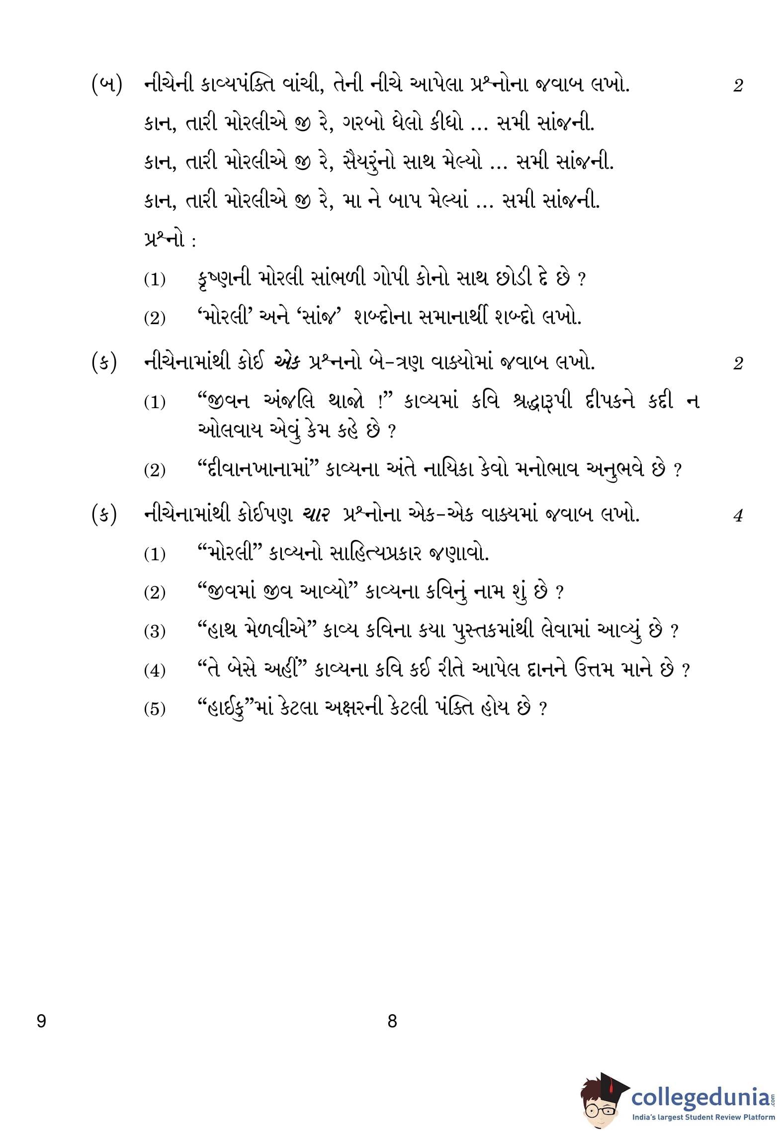 CBSE Class 10 Gujarati Question Paper 2019 with Answer Key (March 5)