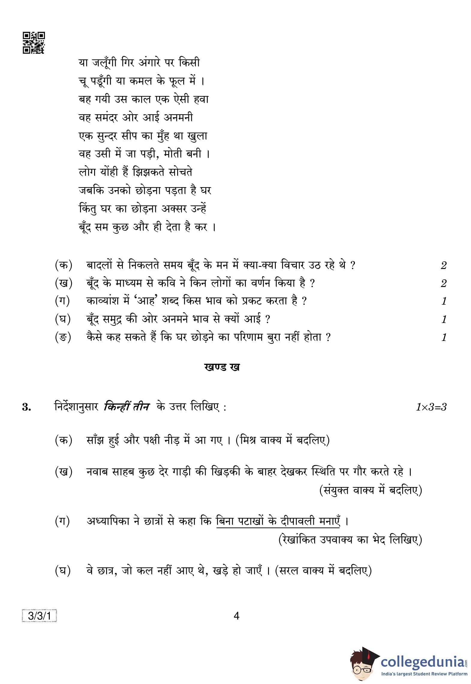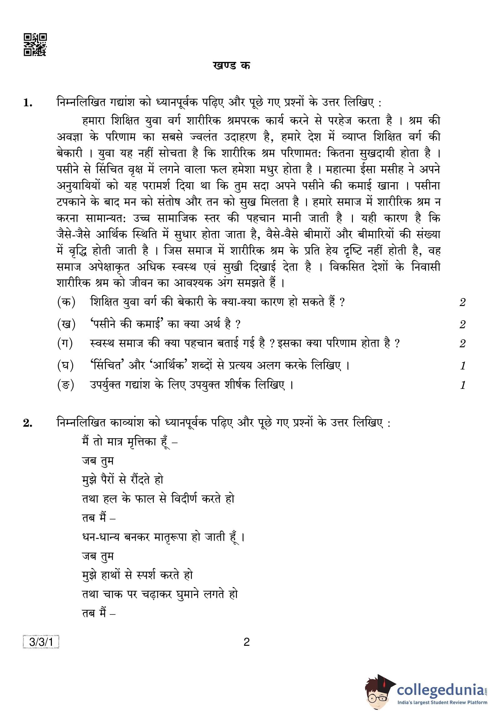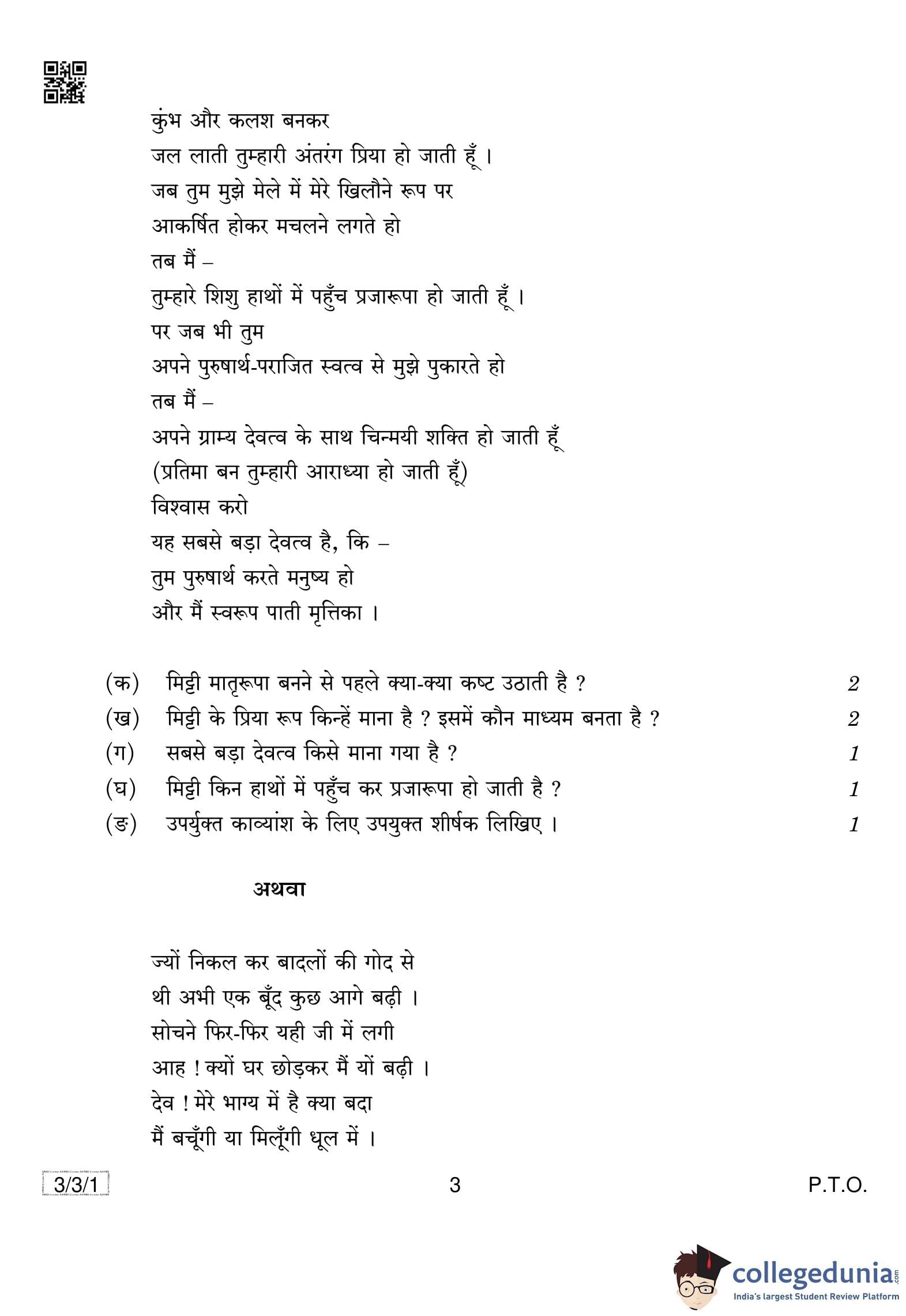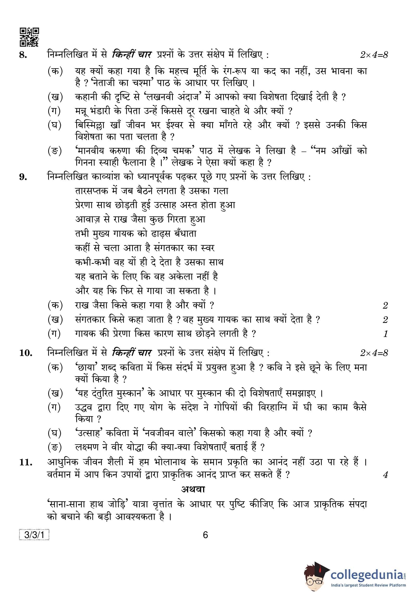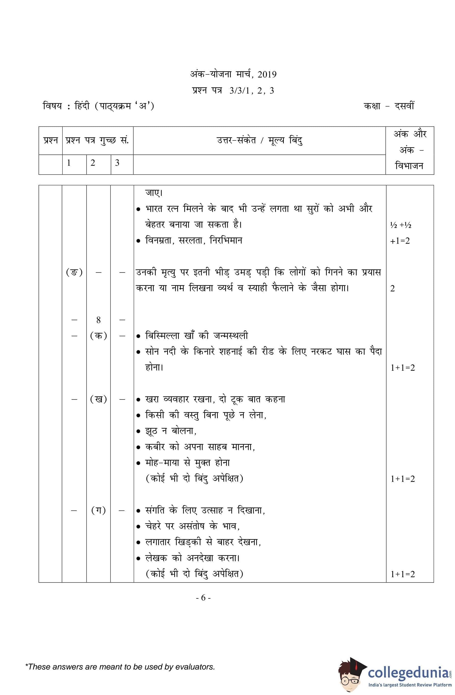 CBSE Class 10 Hindi A Set 1 - 3/3/1 Question Paper 2019 with Answer Key (March 19)