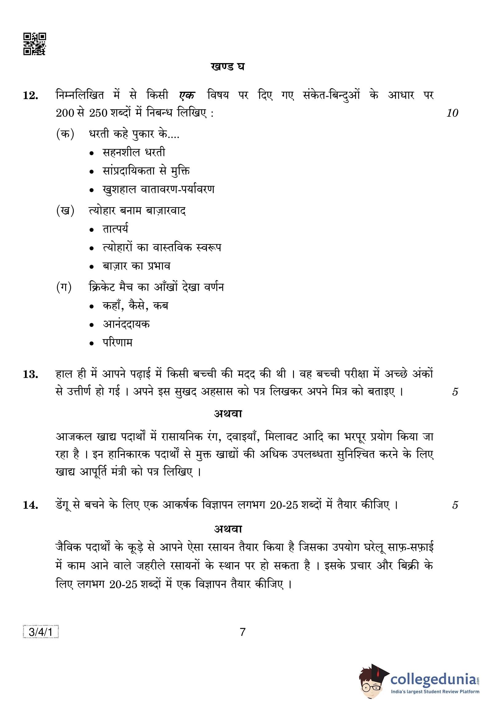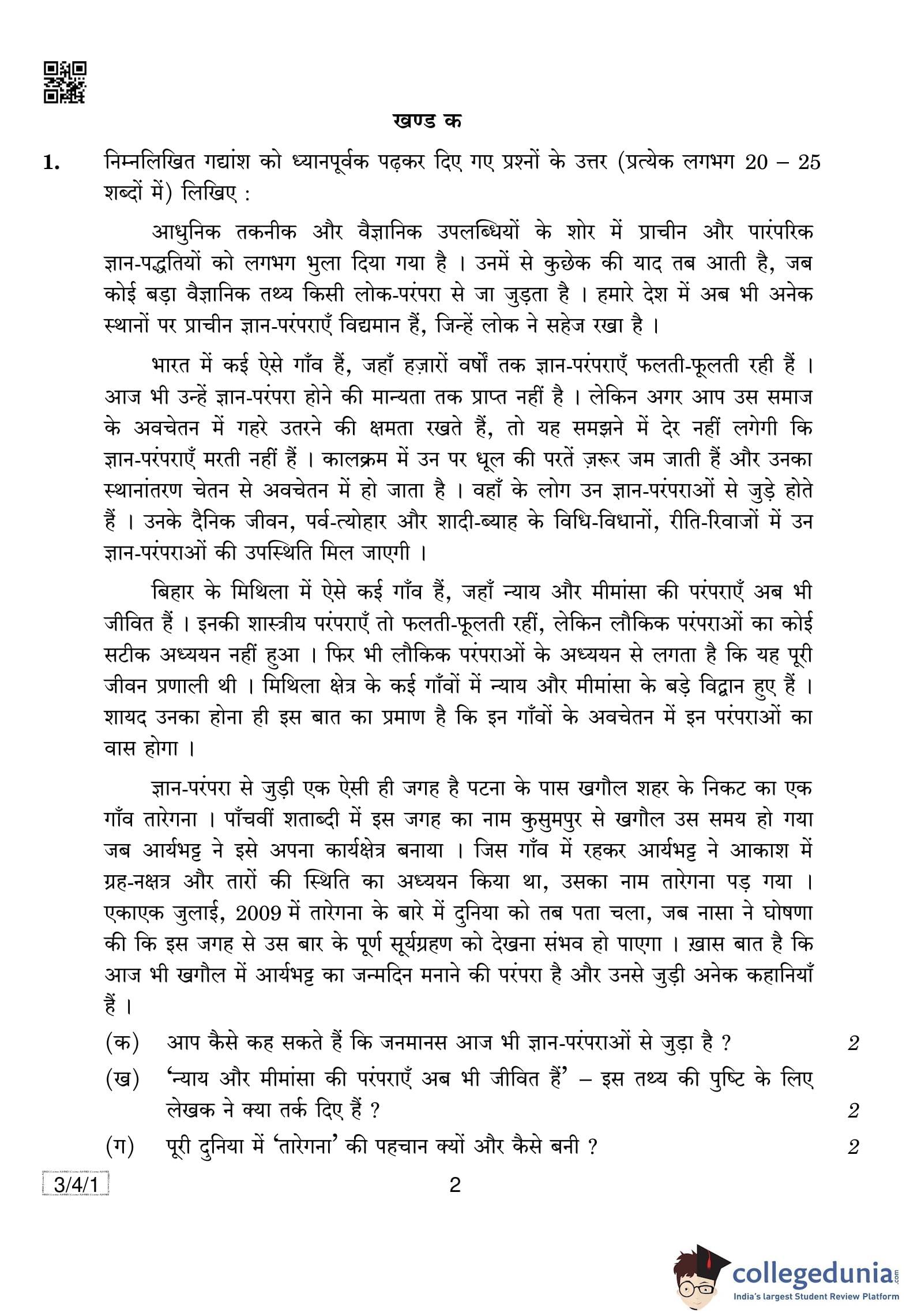 CBSE Class 10 Hindi A Question Paper 2019 with Answer Key Set 1 - 3/4/1 is available for download. The exam was conducted by the Central Board of Secondary Education on March 19, 2019 in the Morning Session 10:30 AM to 1:30 PM. The medium of paper was Hindi. The question paper comprised a total of 14 questions divided among 4 sections.