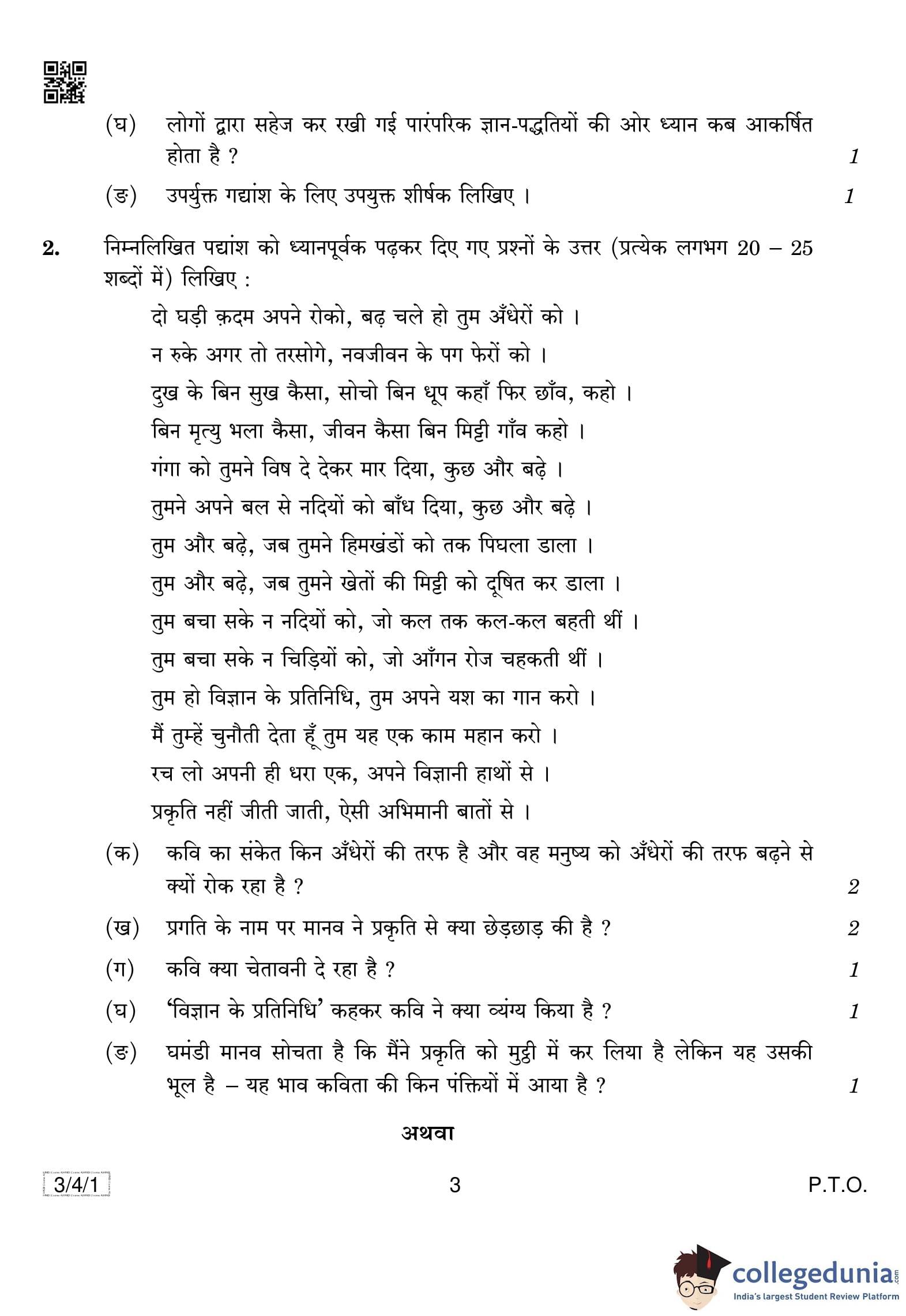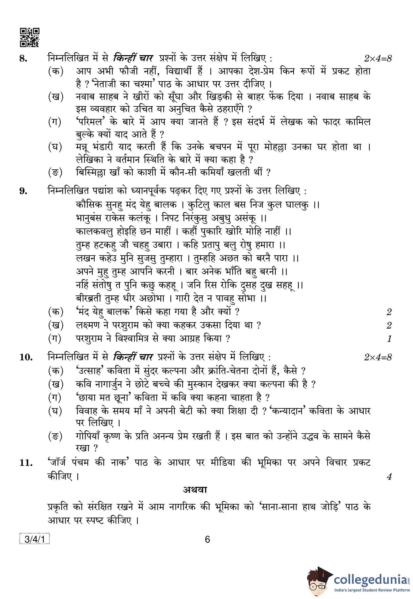 CBSE Class 10 Hindi A Set 1 - 3/4/1 Question Paper 2019 with Answer Key (March 19)