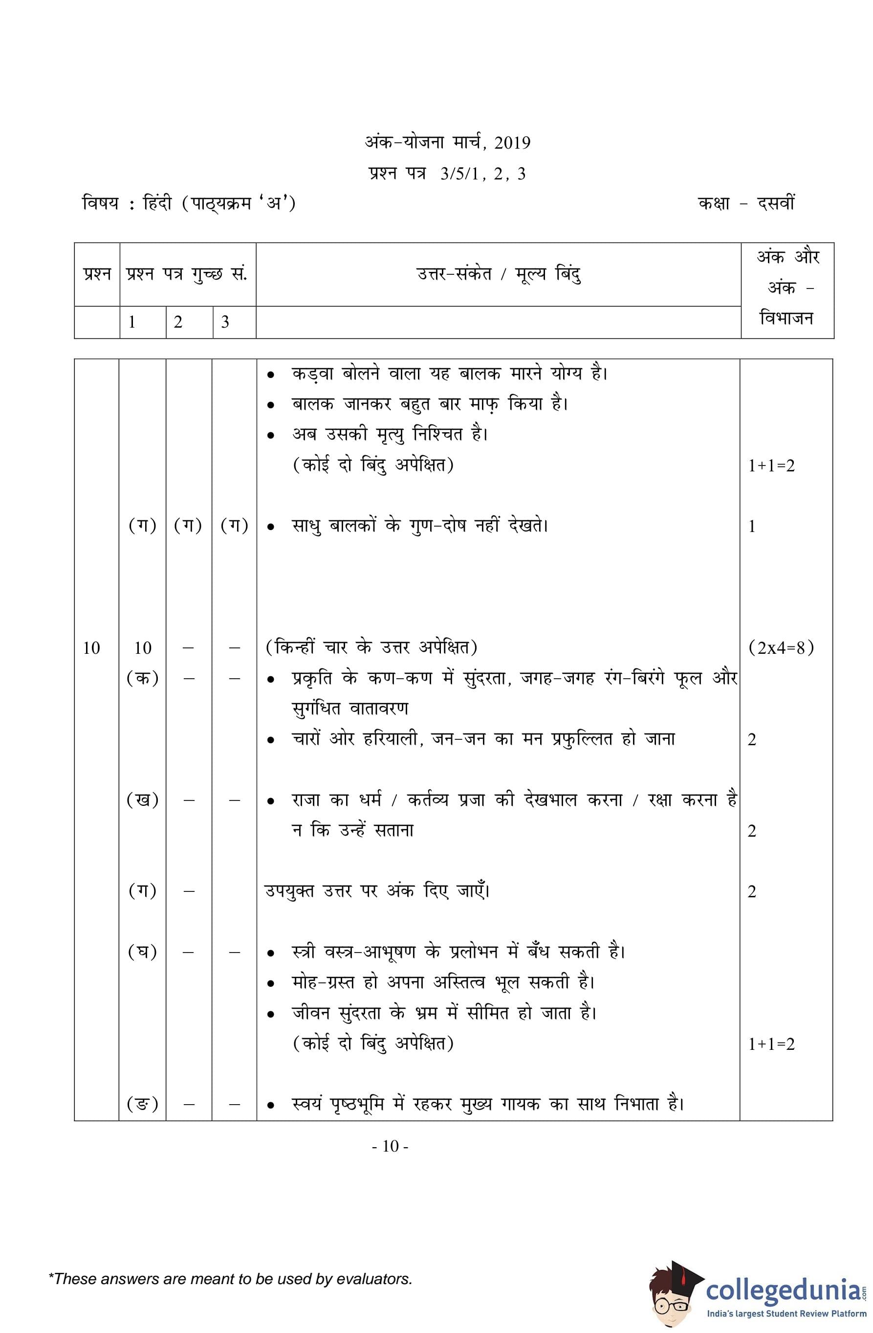 | CBSE Class 10 Hindi A Question Paper 2019 PDF | CBSE Class 10 Hindi A Answer Key 2019 PDF | Detailed Solutions |