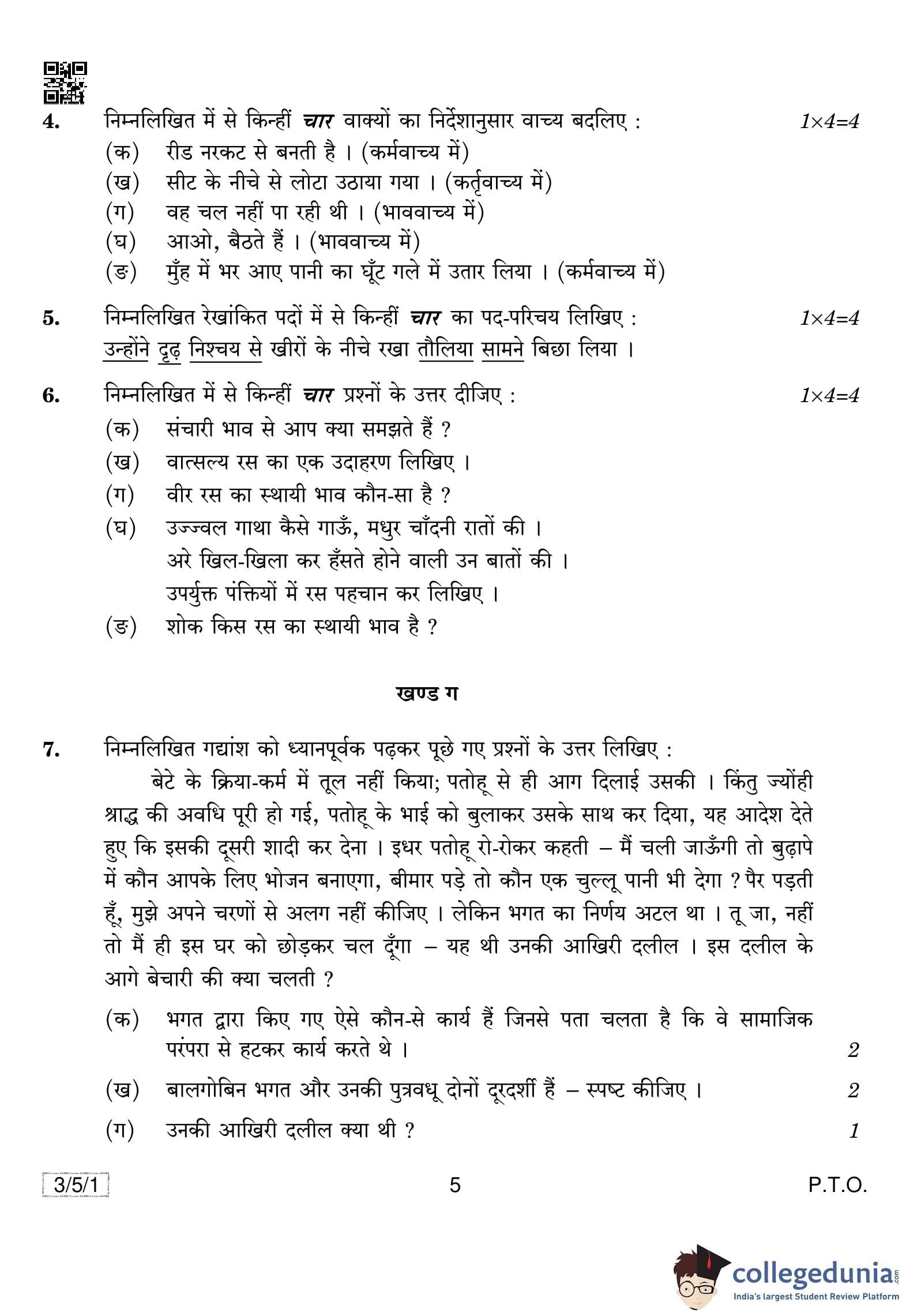 CBSE Class 10 Hindi A Question Paper 2019 with Answer Key Set 1 - 3/5/1 is available for download. The exam was conducted by the Central Board of Secondary Education on March 19, 2019 in the Morning Session 10:30 AM to 1:30 PM. The medium of paper was Hindi. The question paper comprised a total of 14 questions divided among 4 sections.