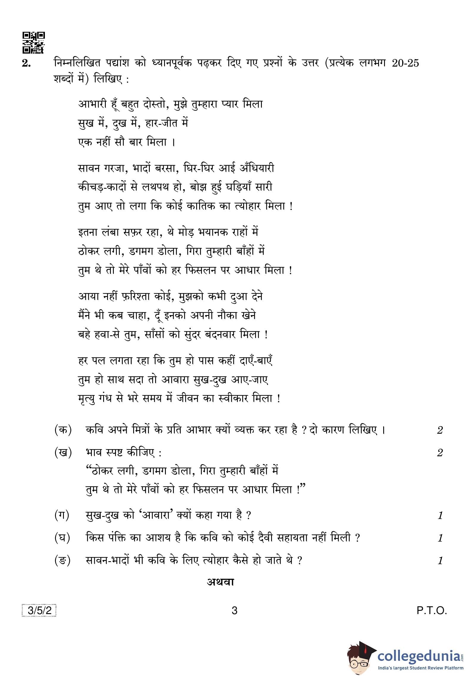 CBSE Class 10 Hindi A Set 2 - 3/5/2 Question Paper 2019 with Answer Key (March 19)