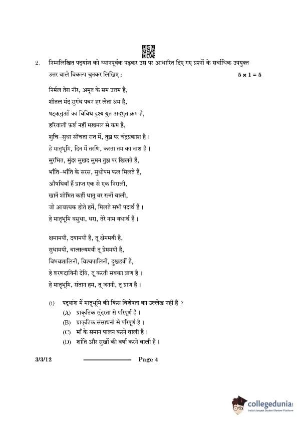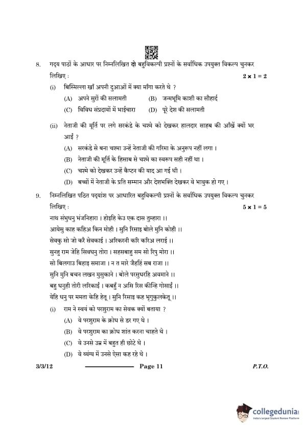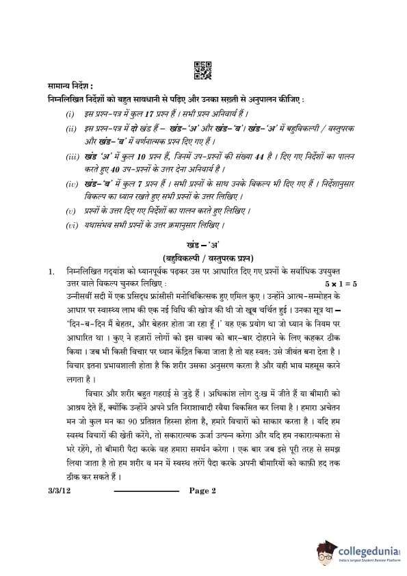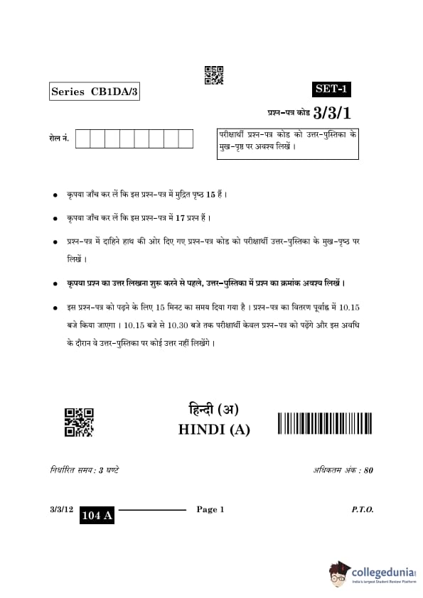 CBSE Class 10 Hindi A Question Paper 2024 PDF (Set 1- 3/3/1) is available for download here. CBSE conducted the Hindi A exam on February 21, 2024 from 10:30 AM to 1:30 PM. The total marks for the theory paper are 80. The question paper contains 20% MCQ-based questions, 40% competency-based questions, and 40% short and long answer type questions.