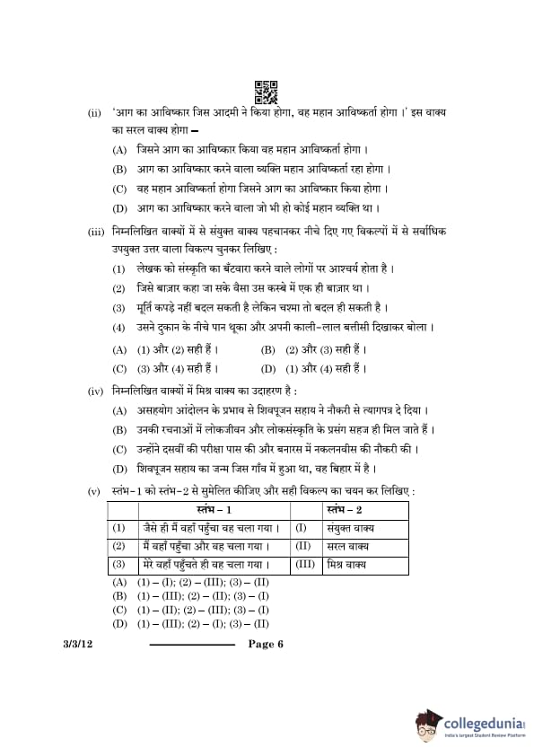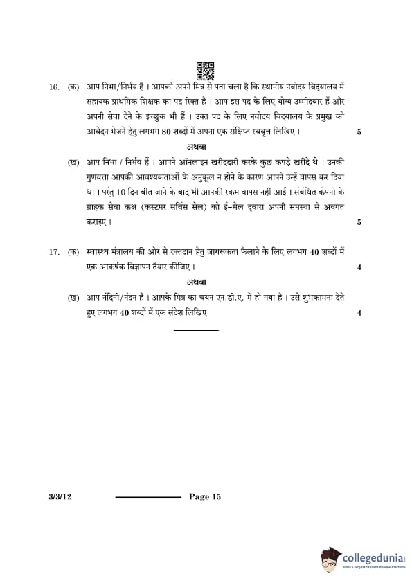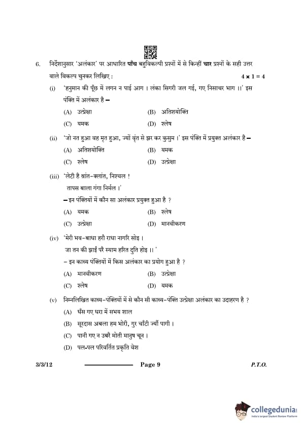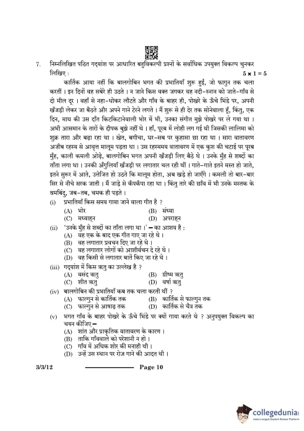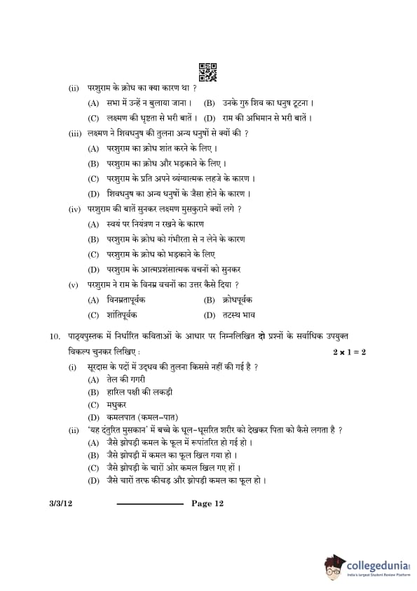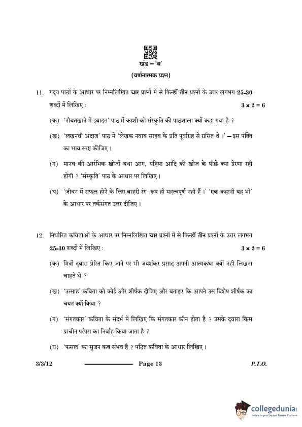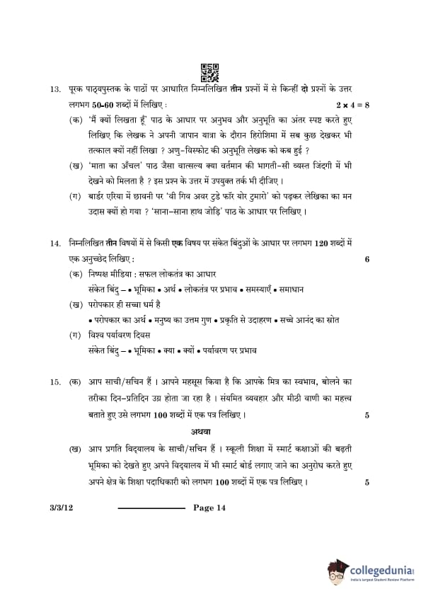 CBSE Class 10 Hindi A Question Paper 2024 (Set 1- 3/3/1) with Answer Key
