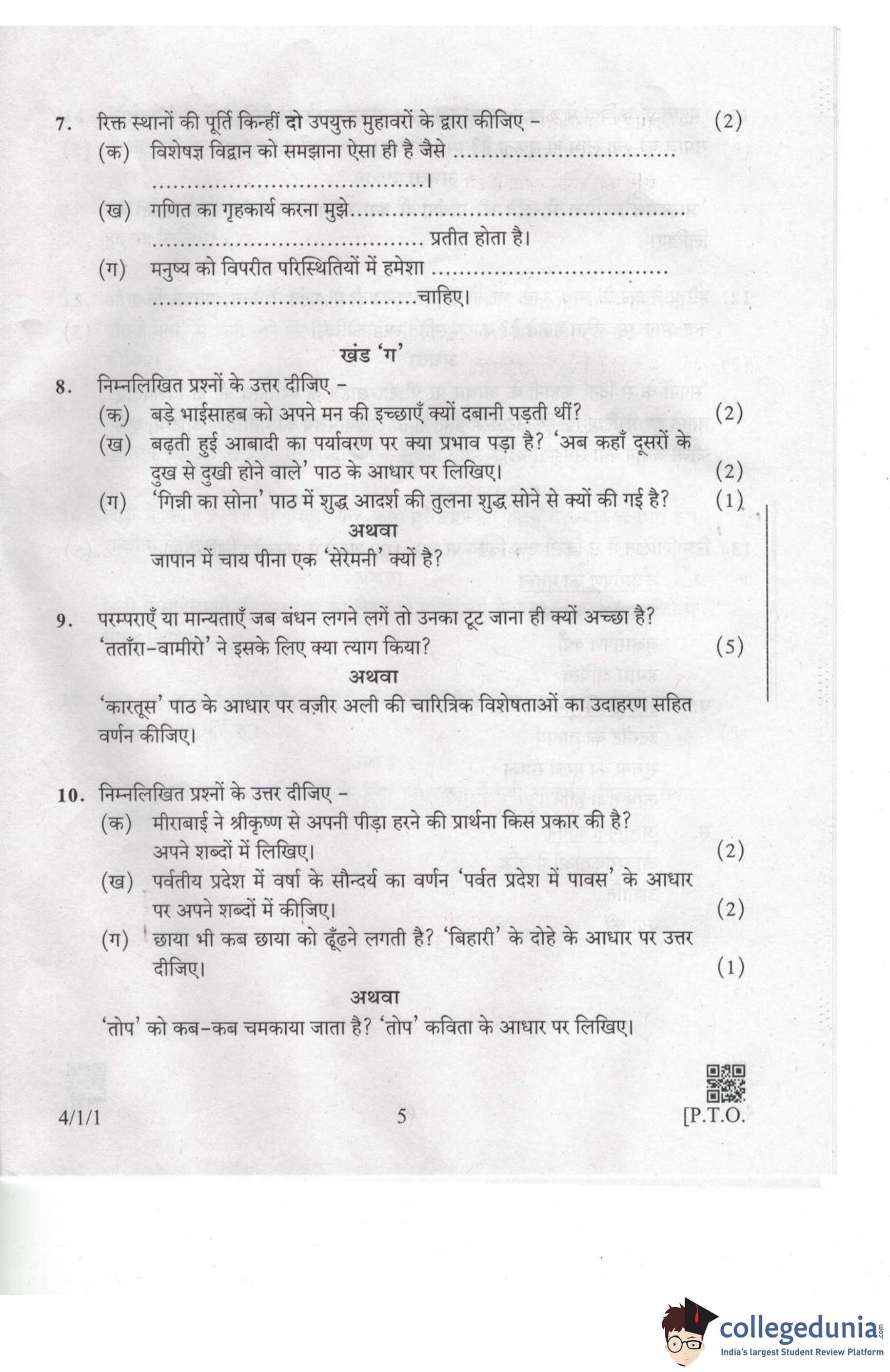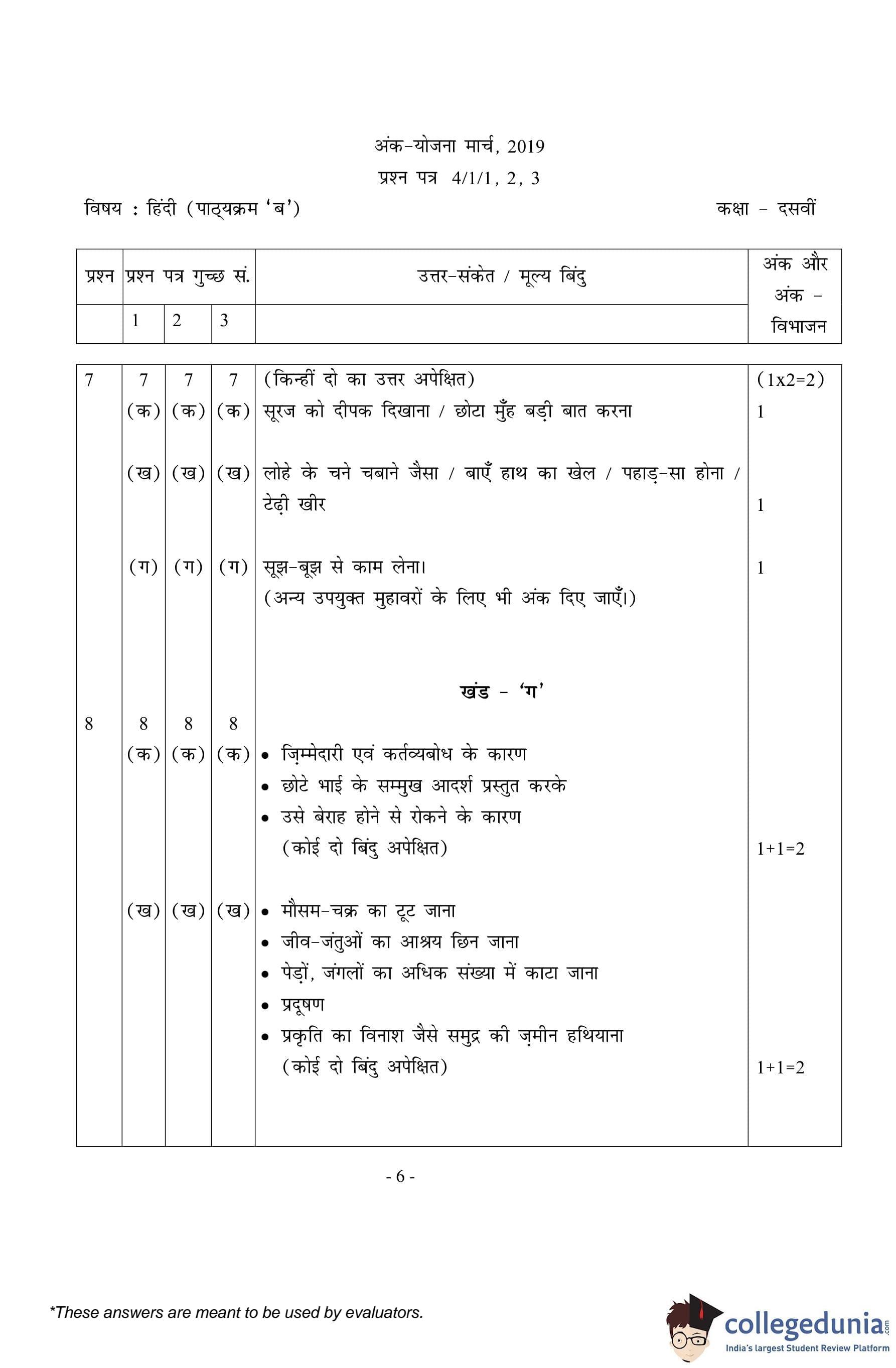 | CBSE Class 10 Hindi B Question Paper 2019 PDF | CBSE Class 10 Hindi B Answer Key 2019 PDF | Detailed Solutions |