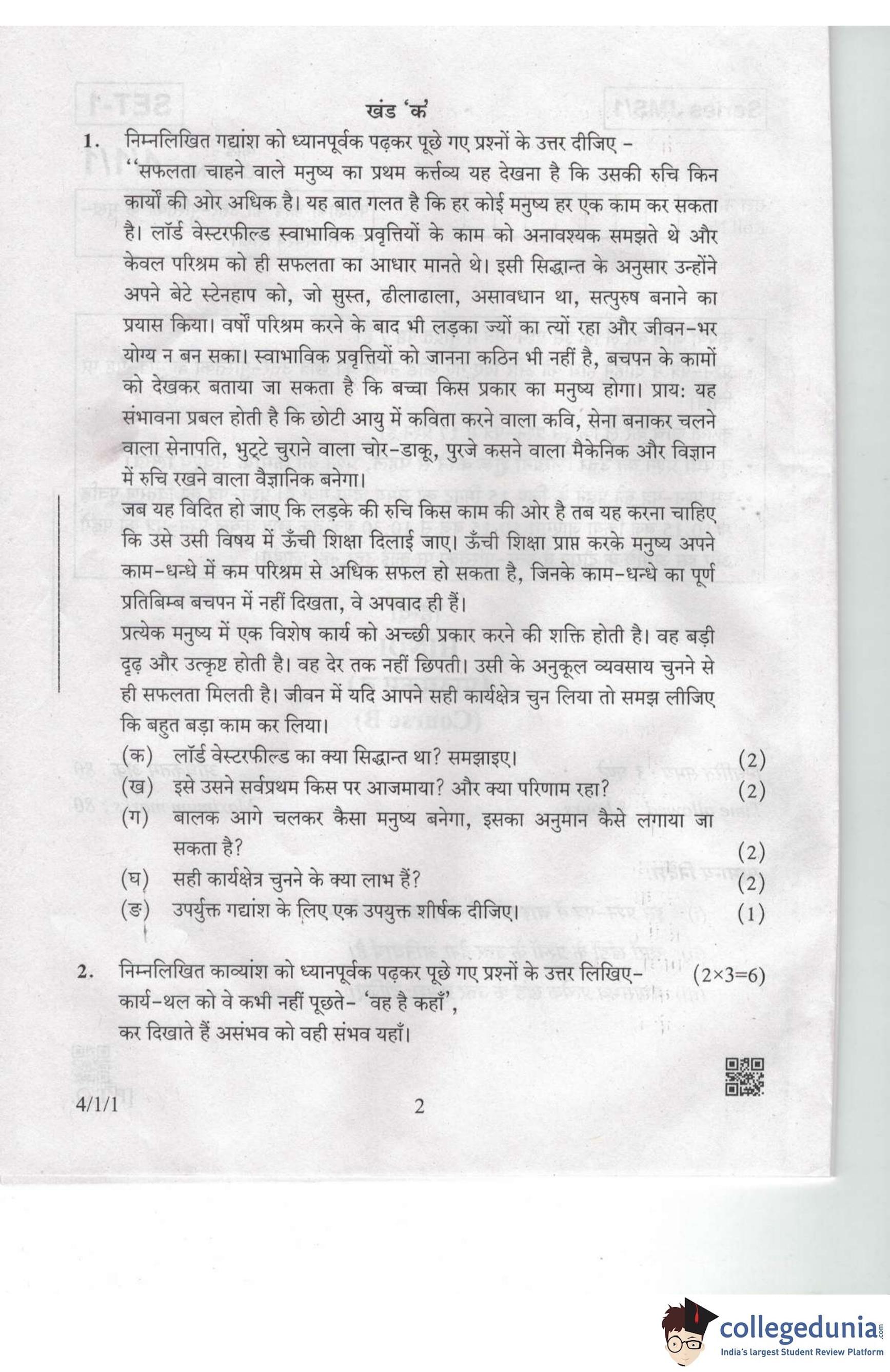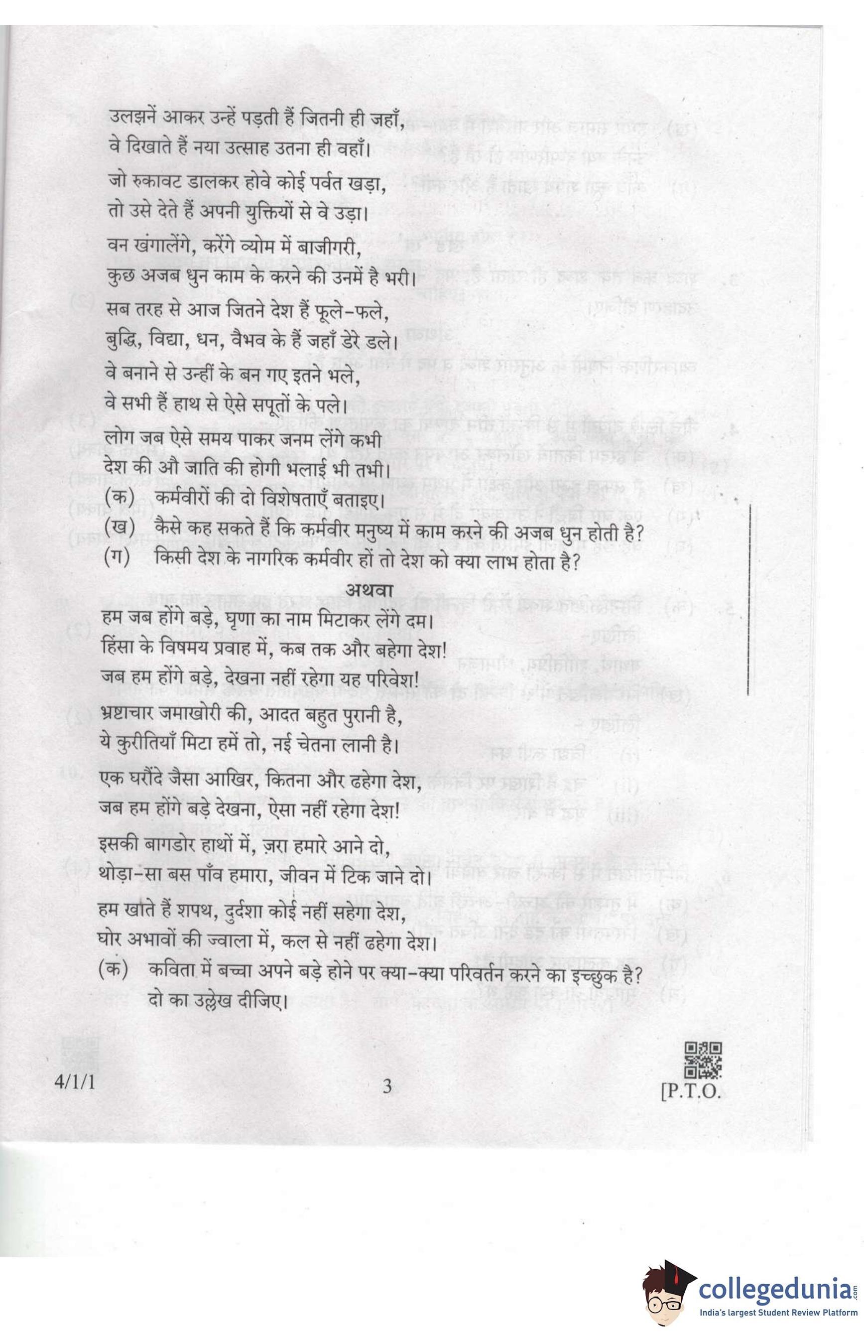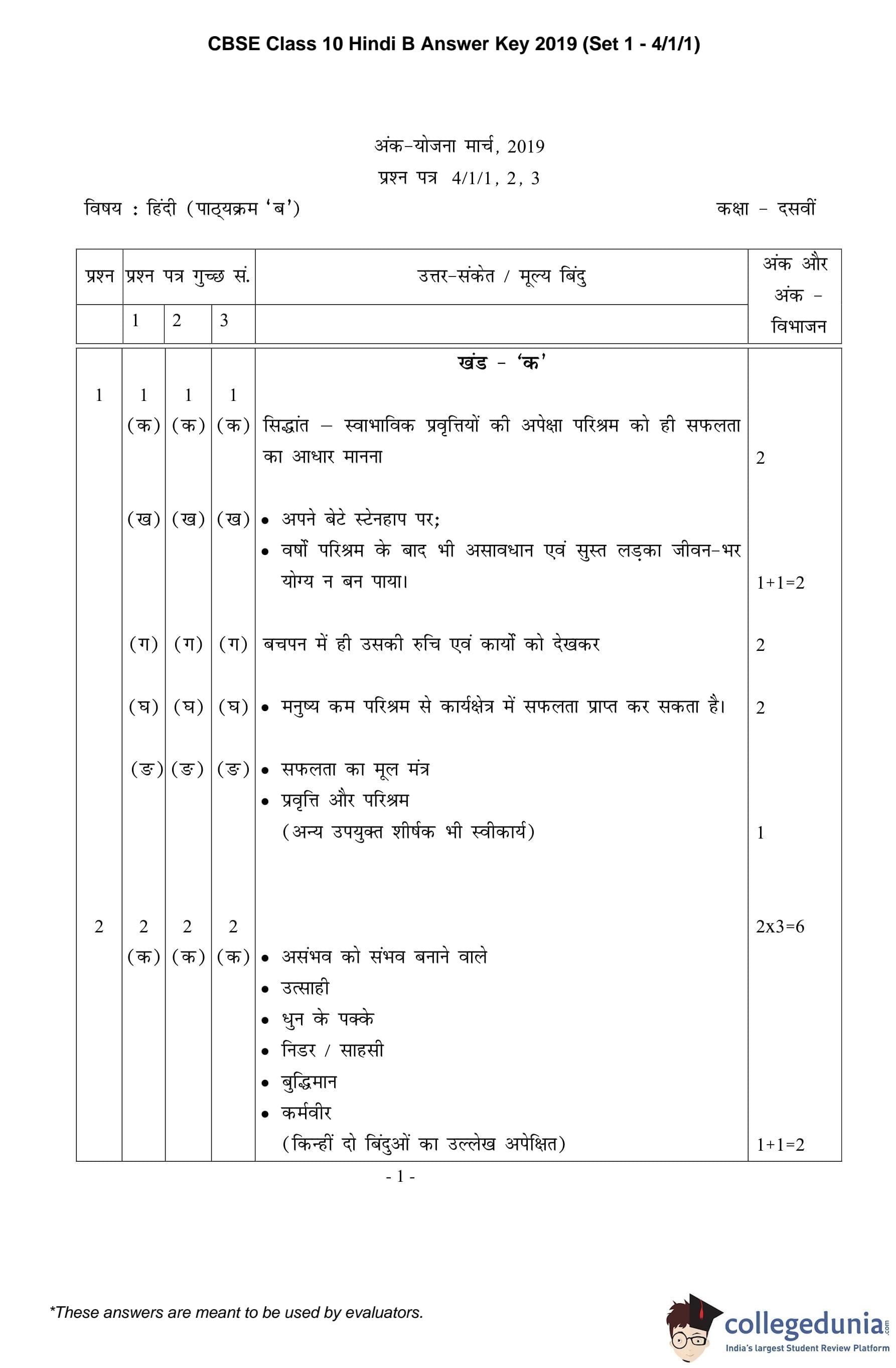 CBSE Class 10 Hindi B Set 1 - 4/1/1 Question Paper 2019 with Answer Key (March 19)