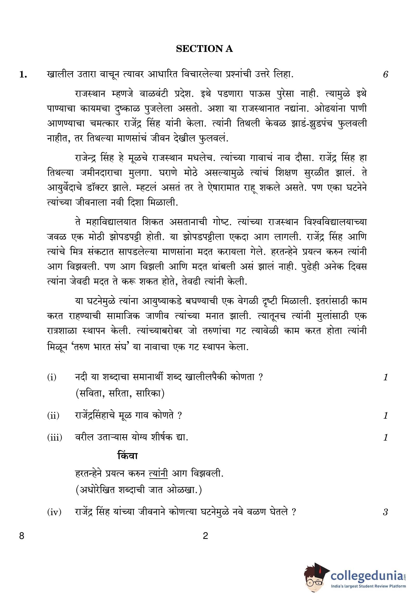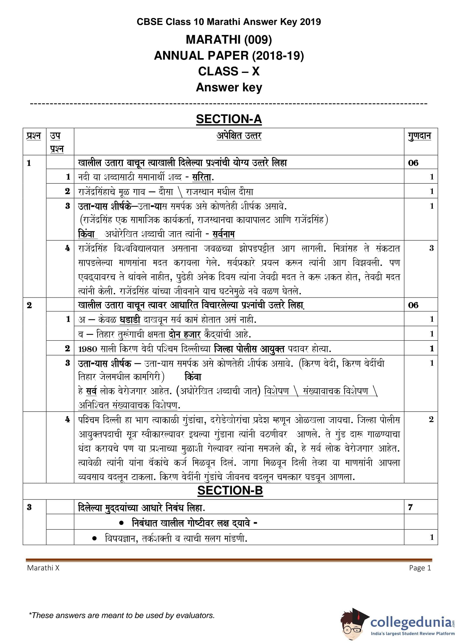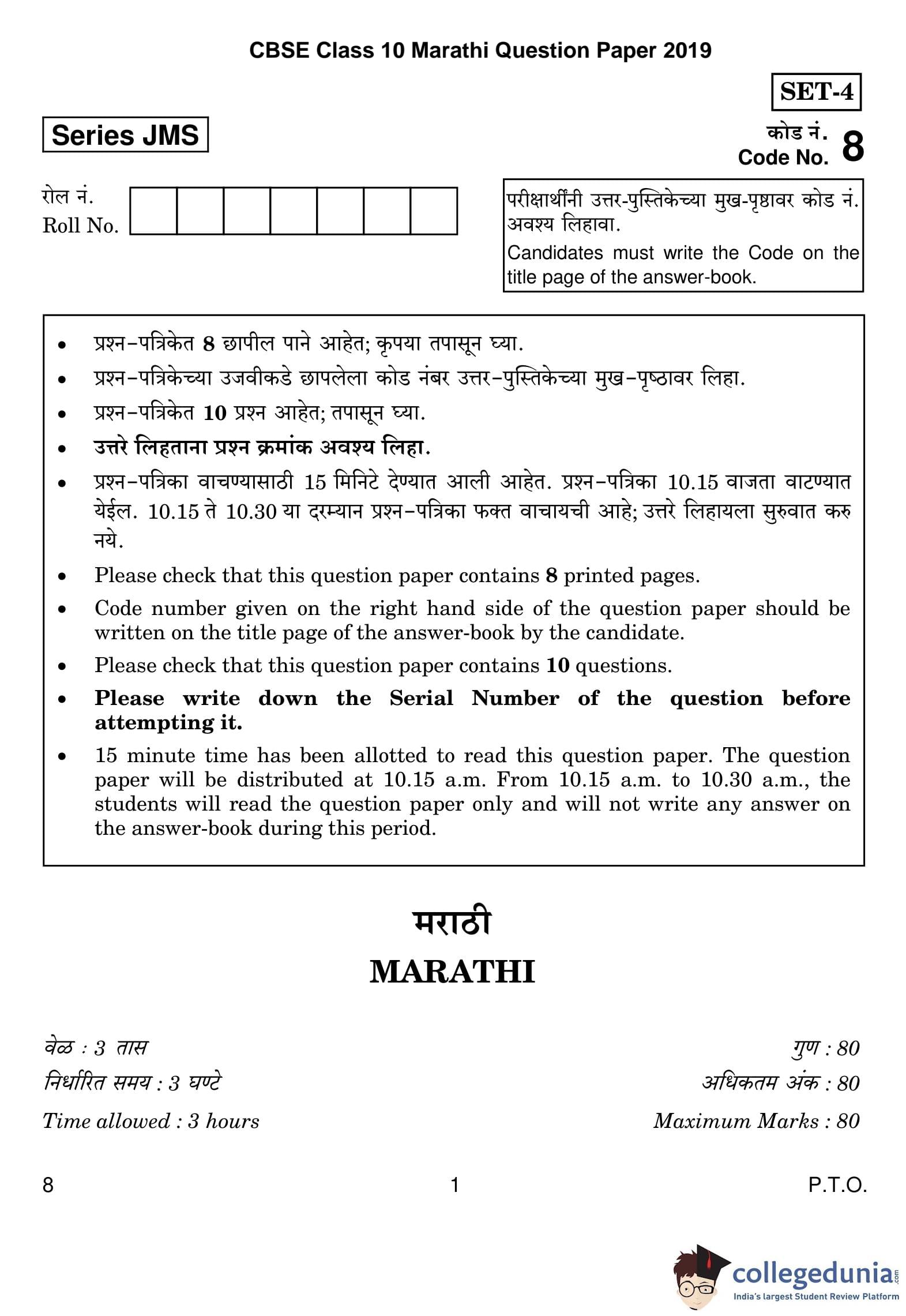 | CBSE Class 10 Marathi Question Paper 2019 PDF | CBSE Class 10 Marathi Answer Key 2019 PDF | Detailed Solutions |