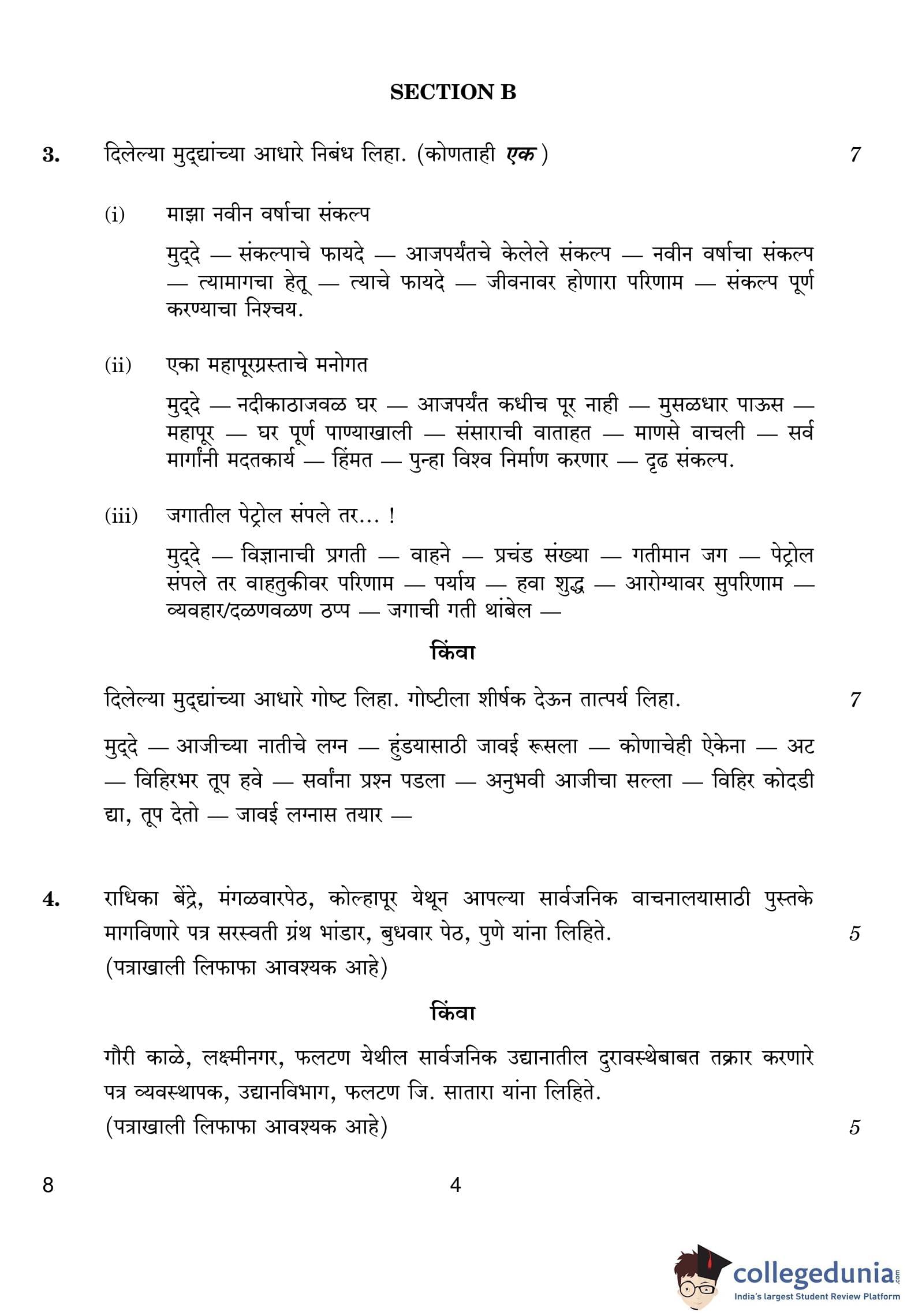 CBSE Class 10 Marathi Question Paper 2019 with Answer Key Set 4 is available for download. The exam was conducted by the Central Board of Secondary Education on March 5, 2019 in the Morning Session 10:30 AM to 1:30 PM. The medium of paper was Marathi. The question paper comprised a total of 10 questions divided among 4 sections.