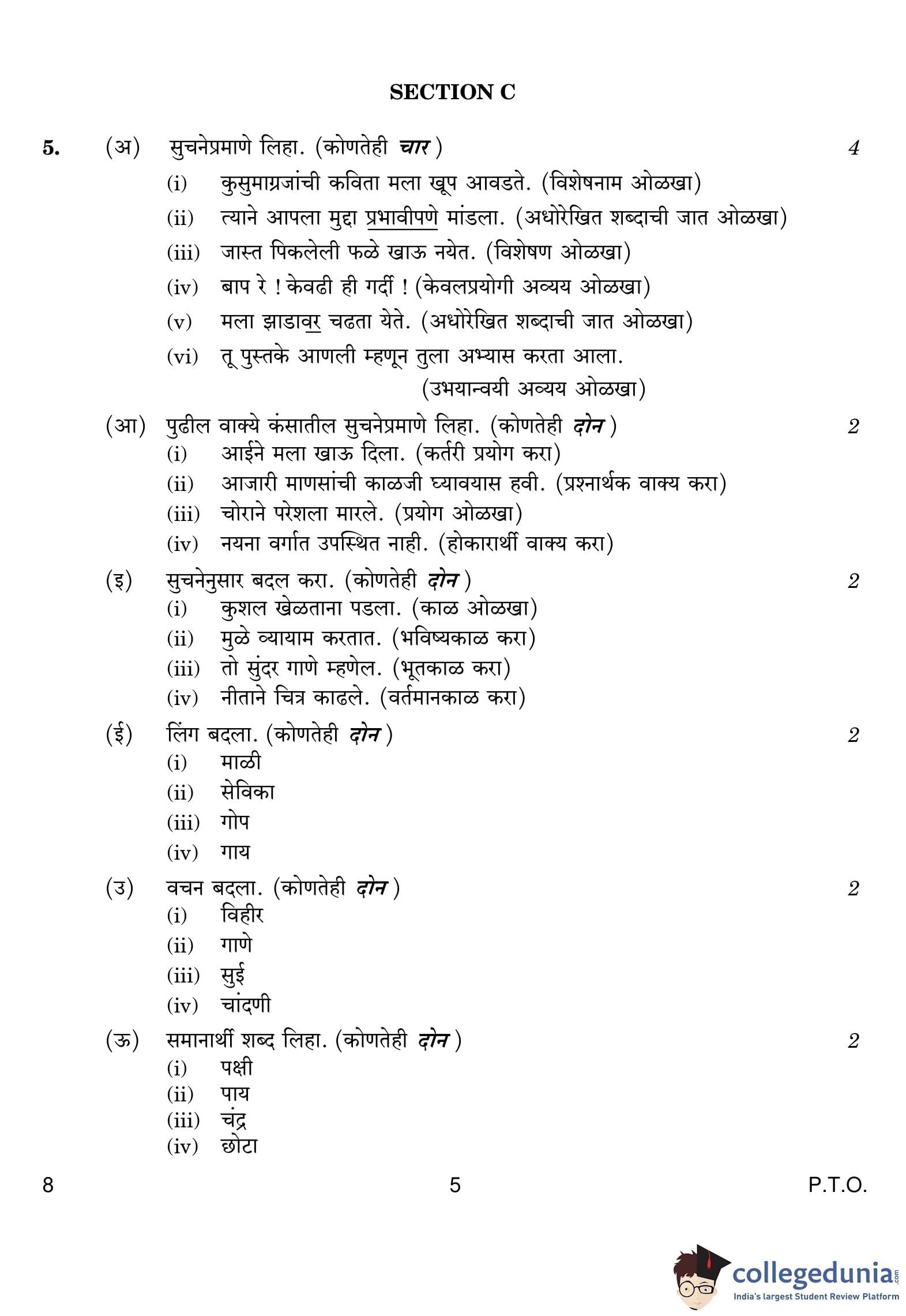 CBSE Class 10 Marathi Question Paper 2019 with Answer Key (March 5)