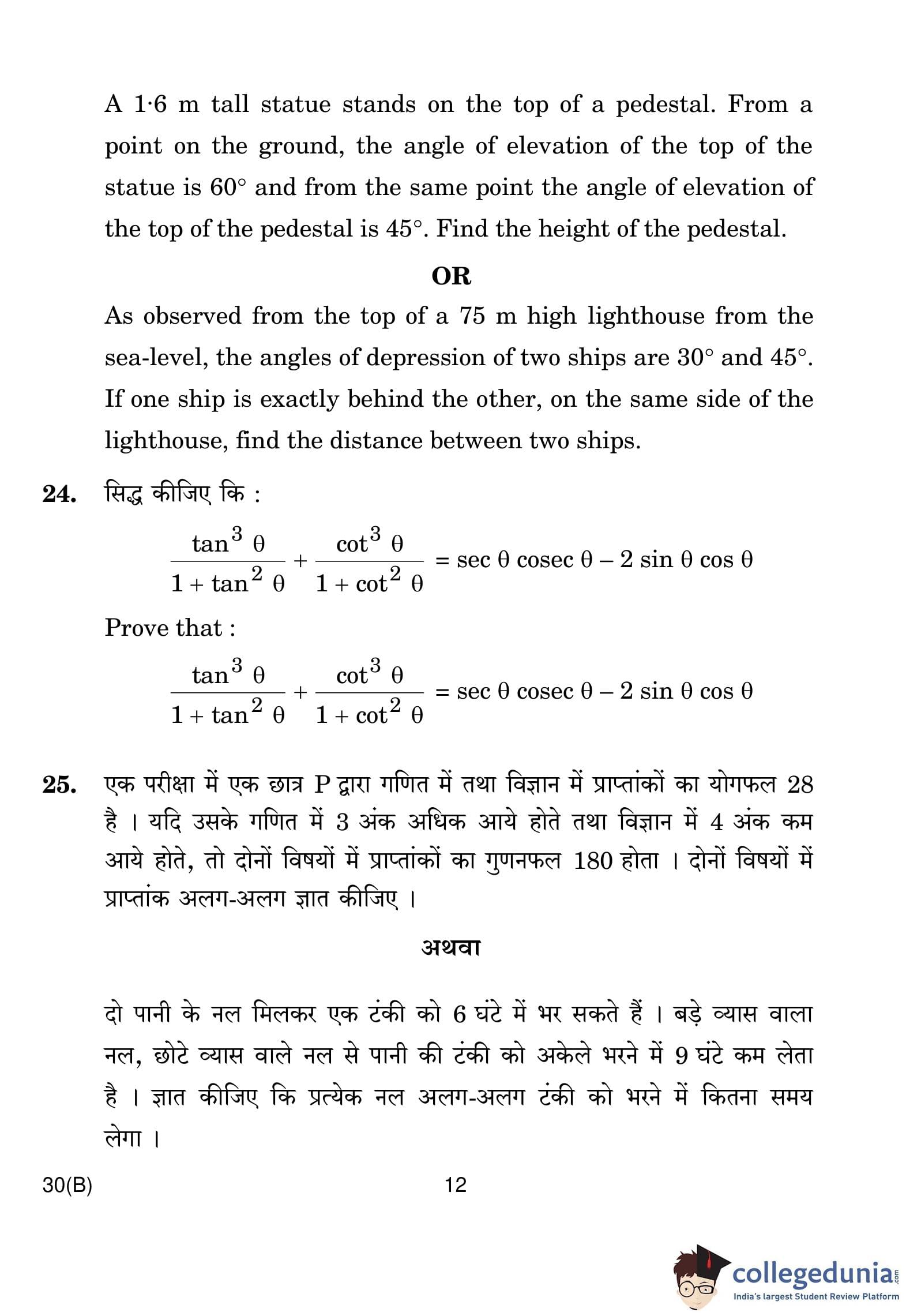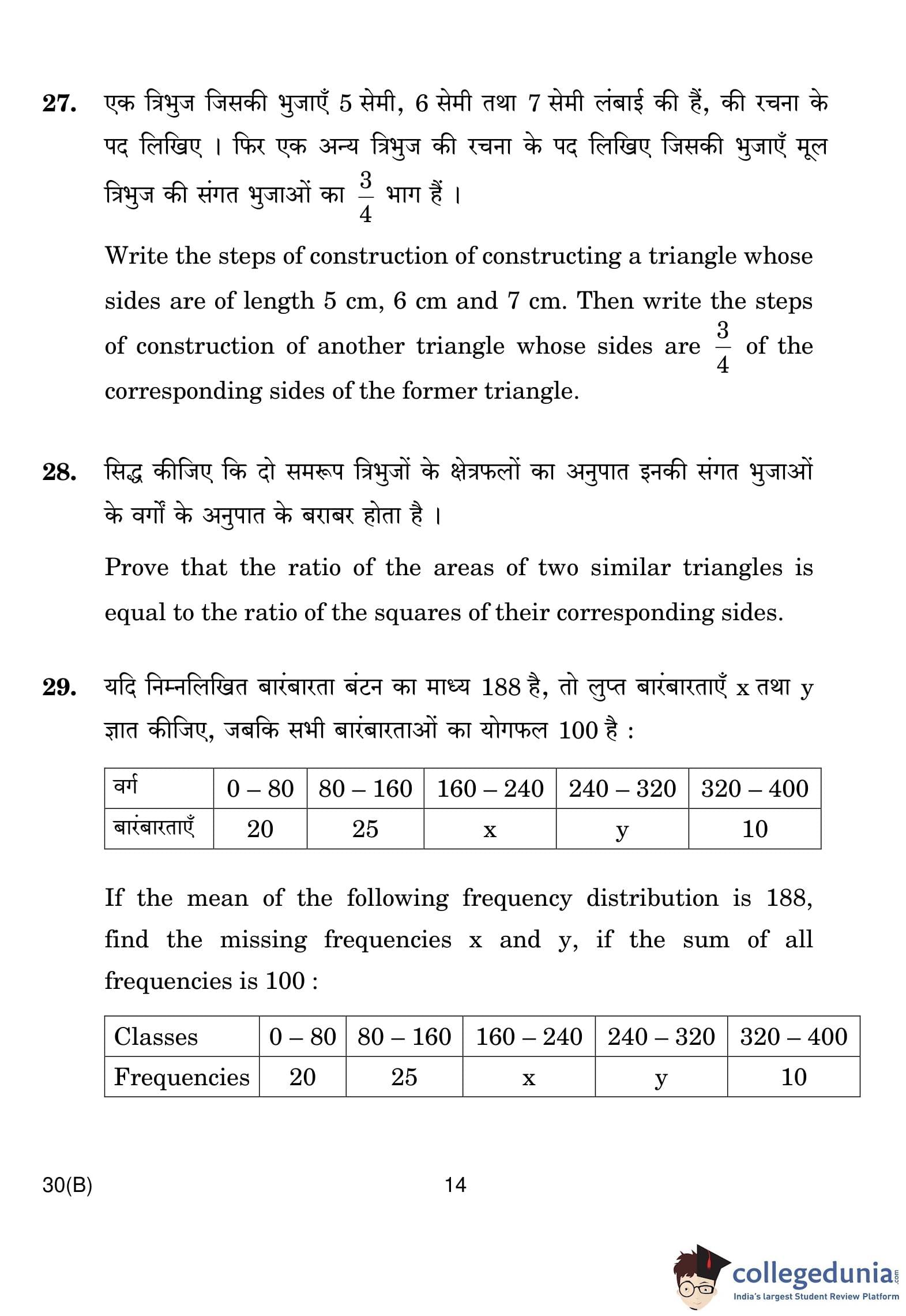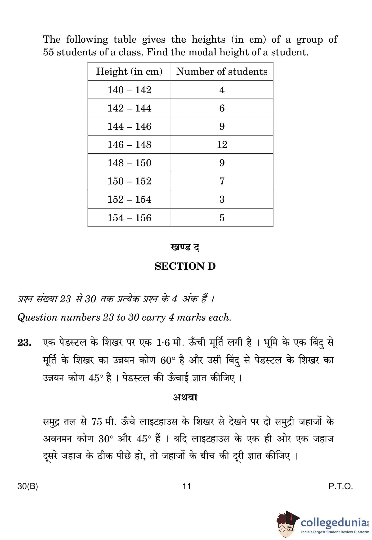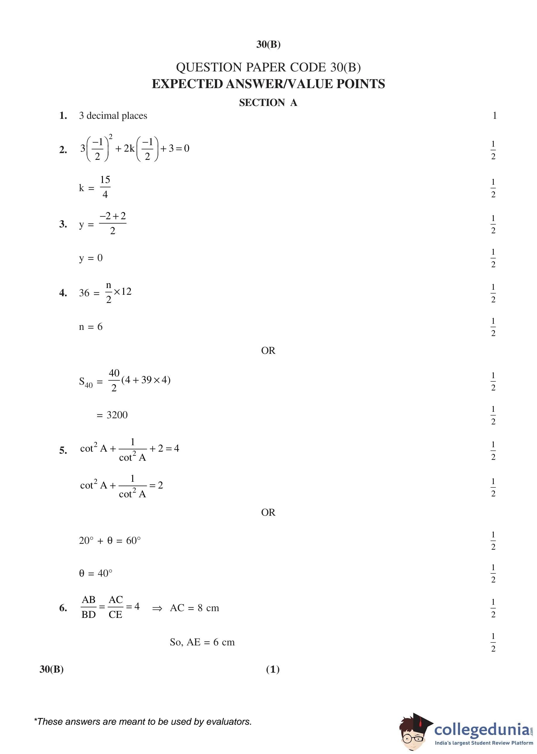 CBSE Class 10 Mathematics (For Blind) Question Paper 2019 with Answer Key Set 4 - 30(B) is available for download. The exam was conducted by the Central Board of Secondary Education on March 7, 2019 in the Morning Session 10:30 AM to 1:30 PM. The medium of paper was English and Hindi. The question paper comprised a total of 30 questions divided among 4 sections.