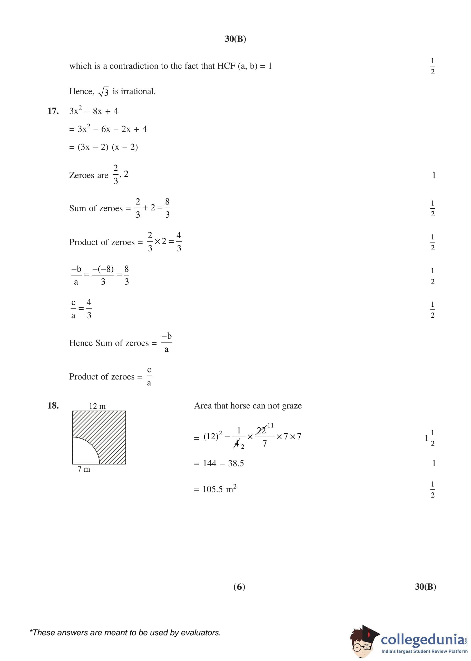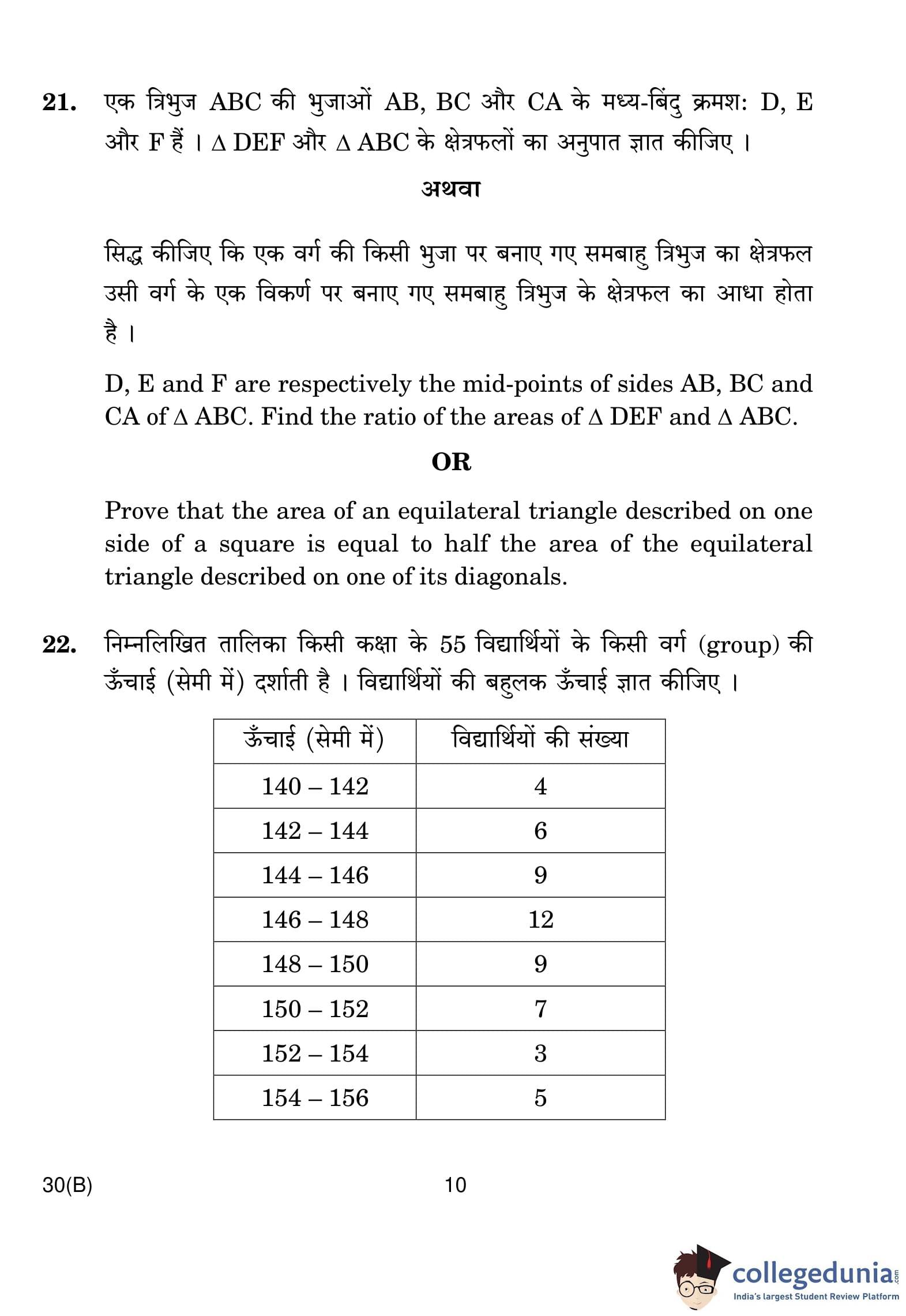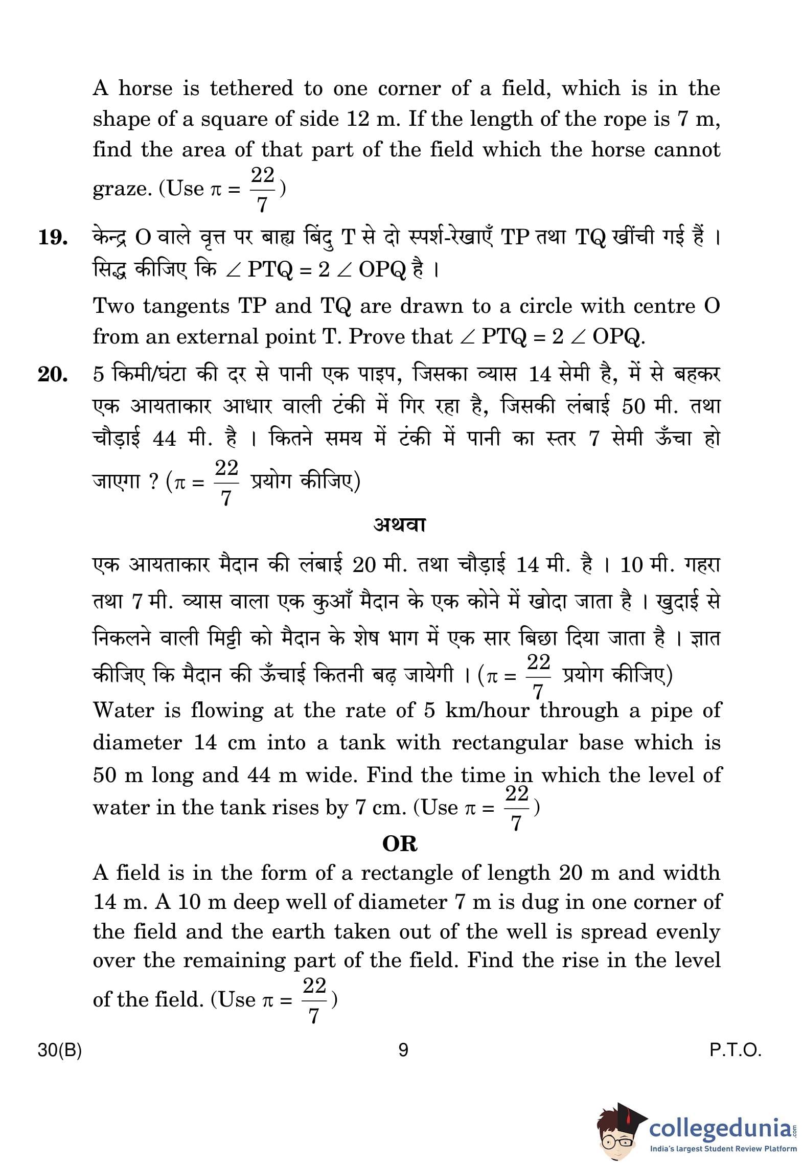 CBSE Class 10 Mathematics (For Blind) Question Paper 2019 with Answer Key (March 7)