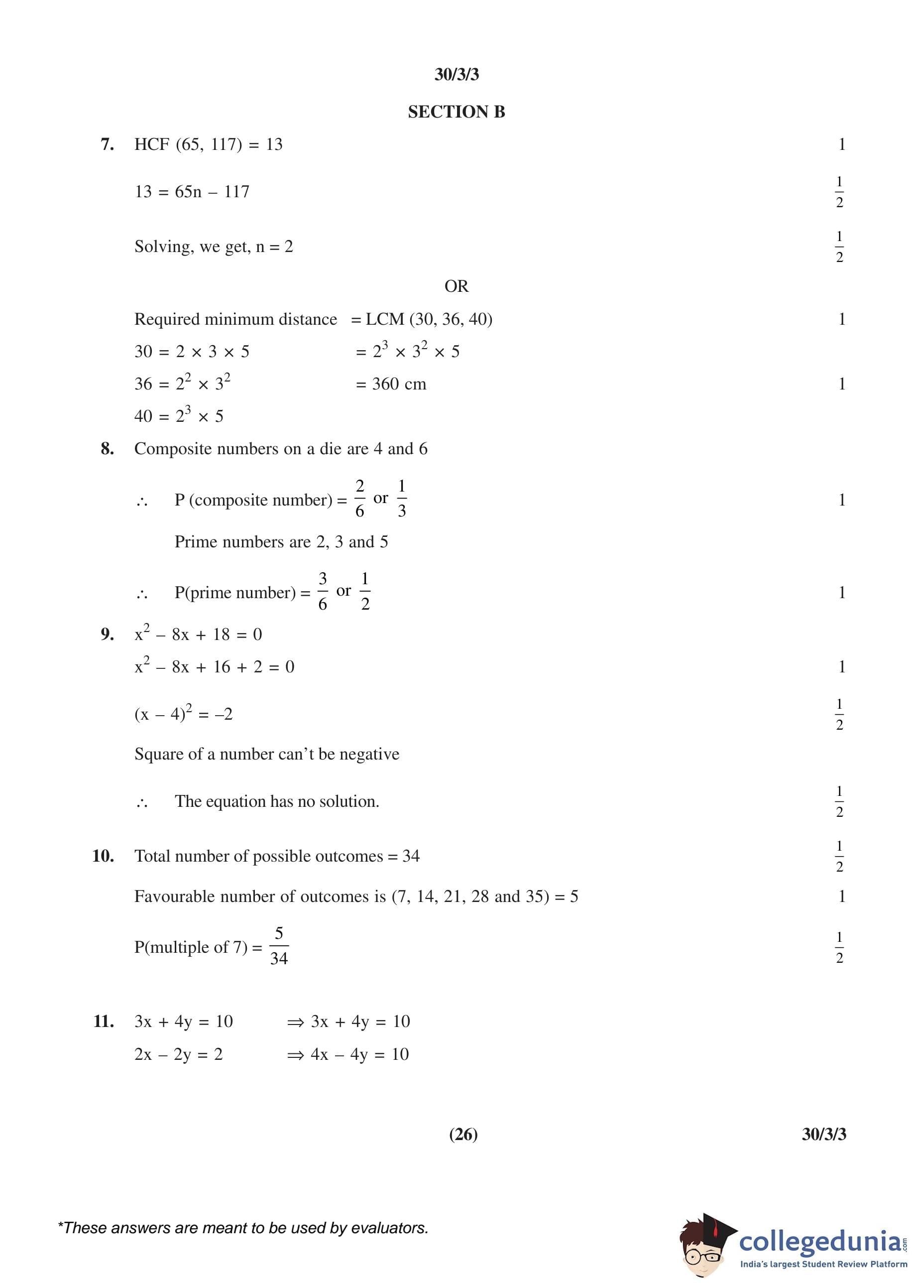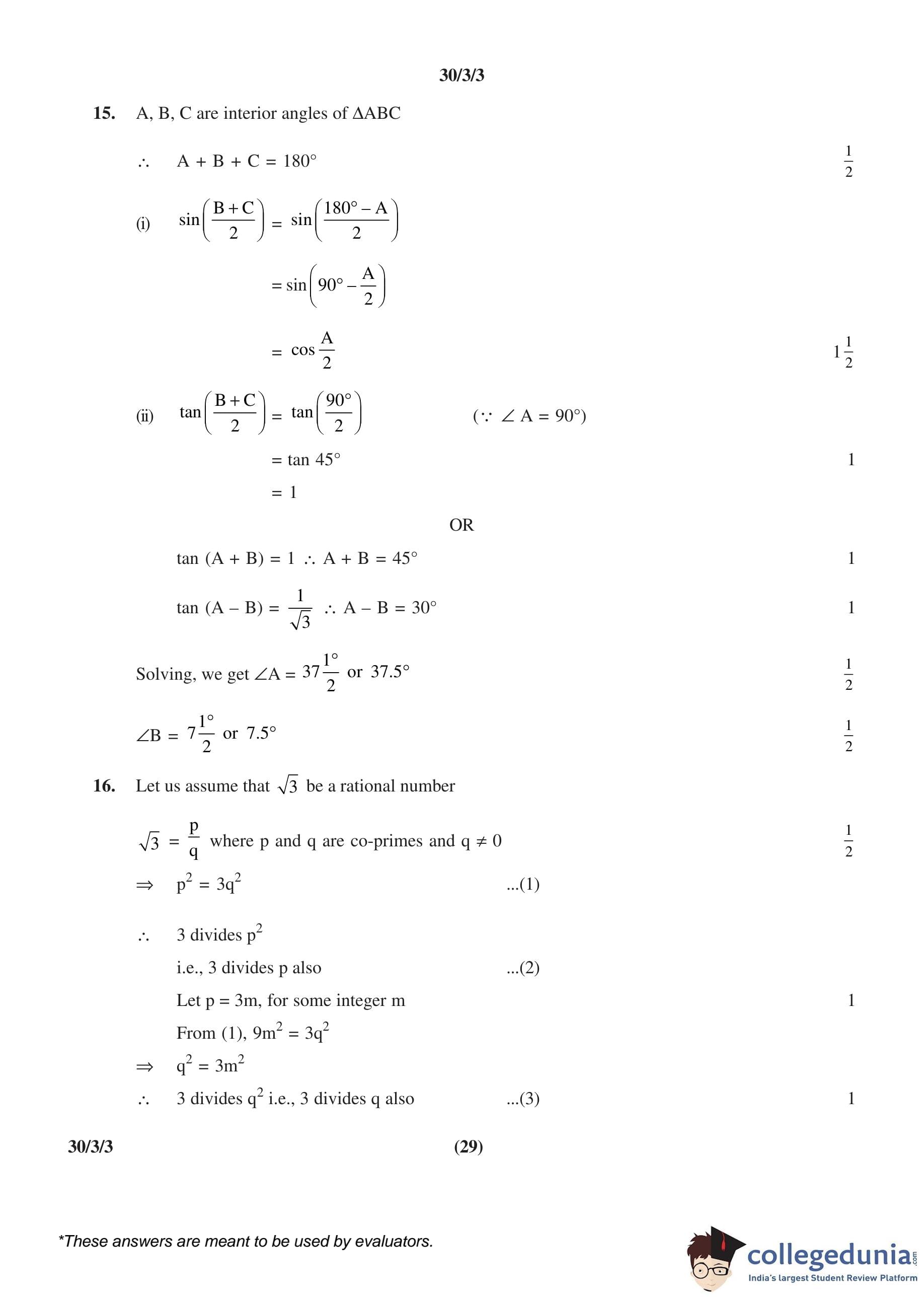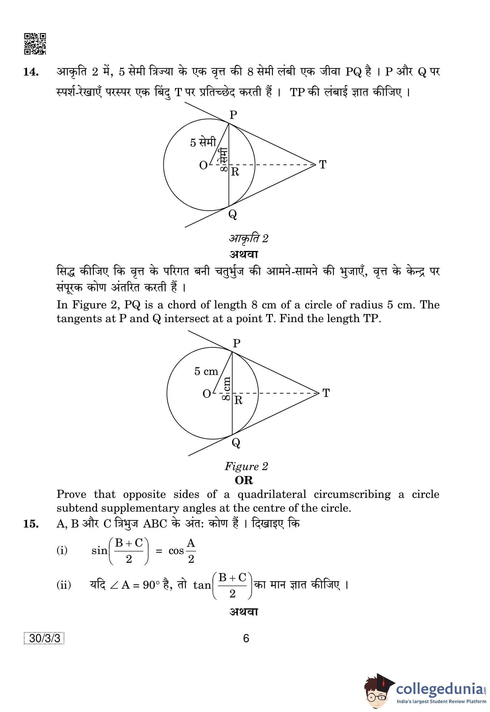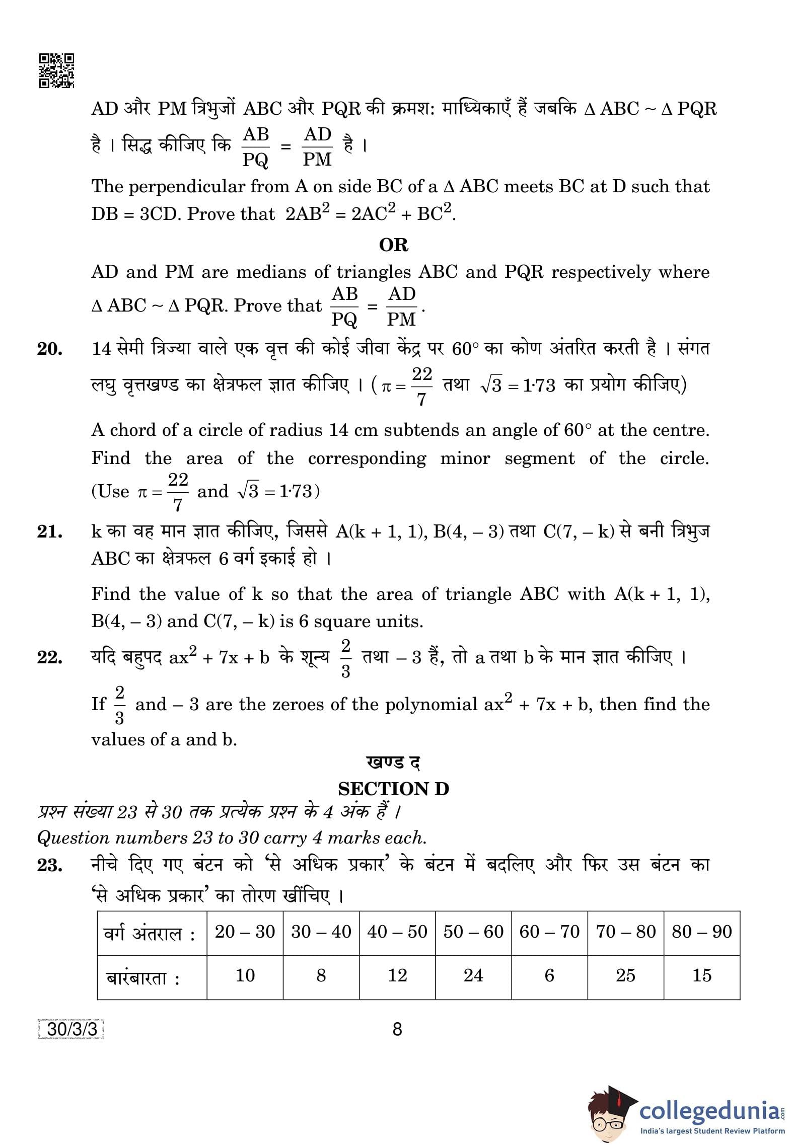 CBSE Class 10 Mathematics Question Paper 2019 with Answer Key Set 3 - 30/3/3 is available for download. The exam was conducted by the Central Board of Secondary Education on March 7, 2019 in the Morning Session 10:30 AM to 1:30 PM. The medium of paper was English and Hindi. The question paper comprised a total of 30 questions divided among 4 sections.