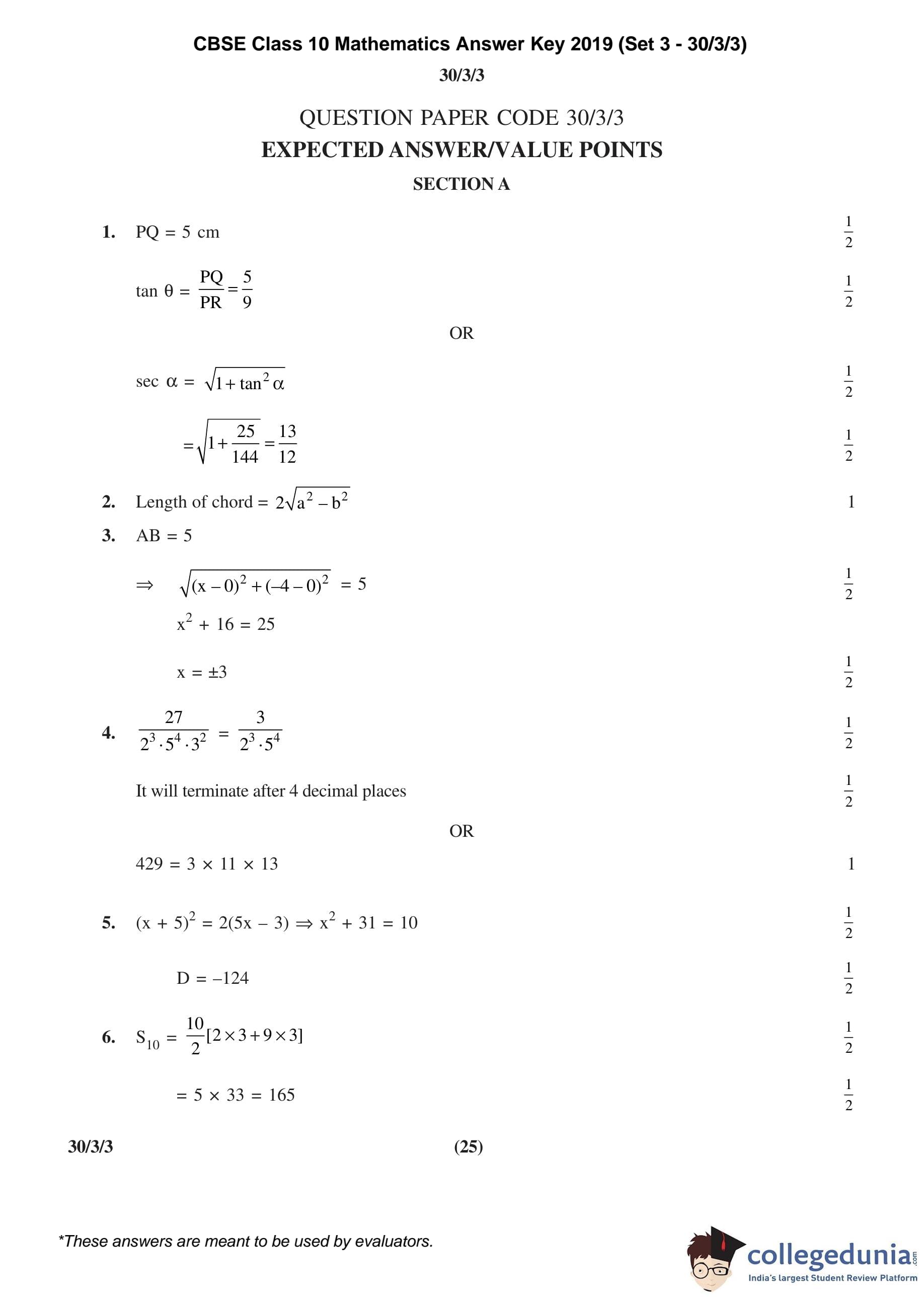 | CBSE Class 10 Mathematics Question Paper 2019 PDF | CBSE Class 10 Mathematics Answer Key 2019 PDF | Detailed Solutions |