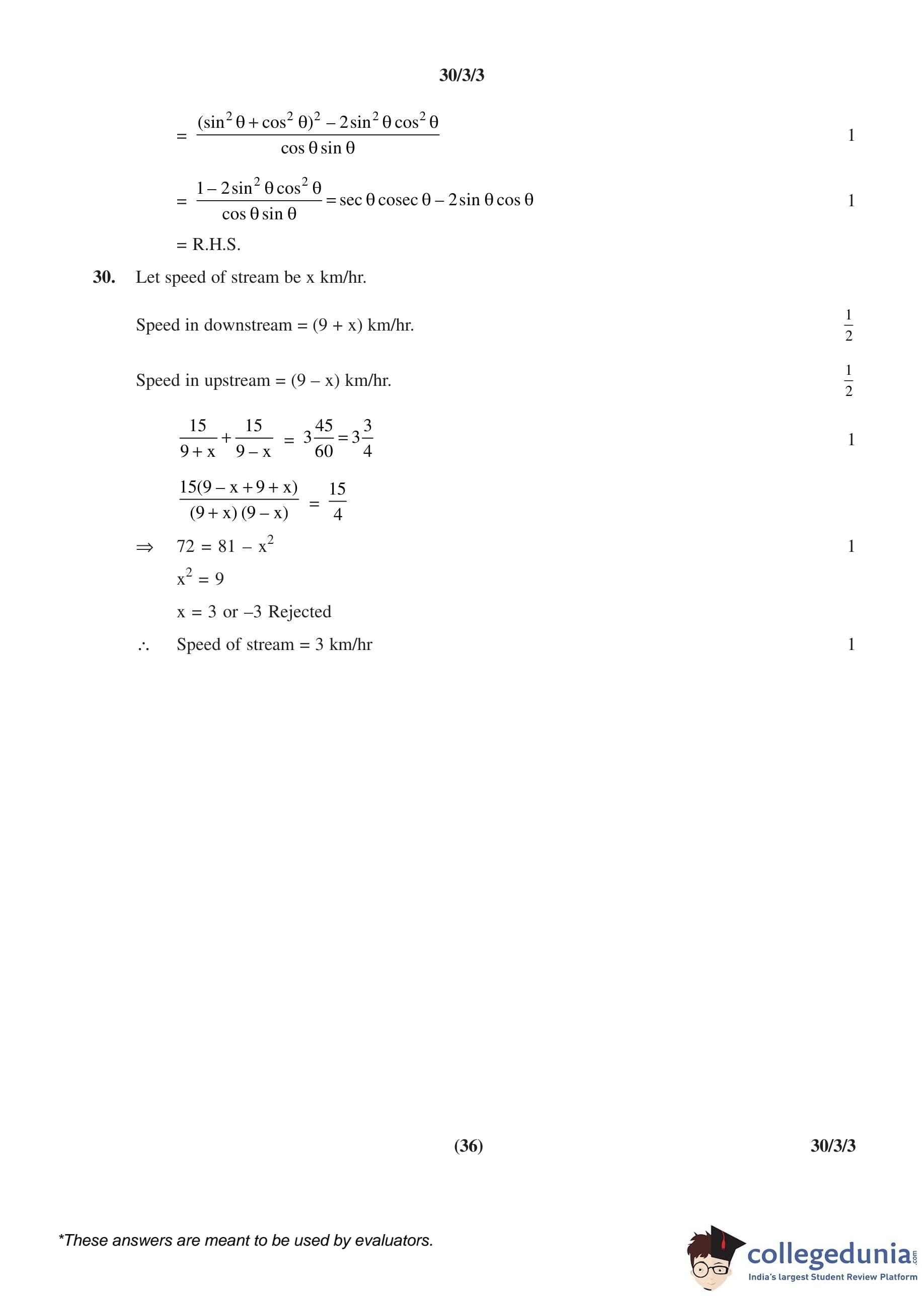 CBSE Class 10 Mathematics Set 3 - 30/3/3 Question Paper 2019 with Answer Key (March 7)
